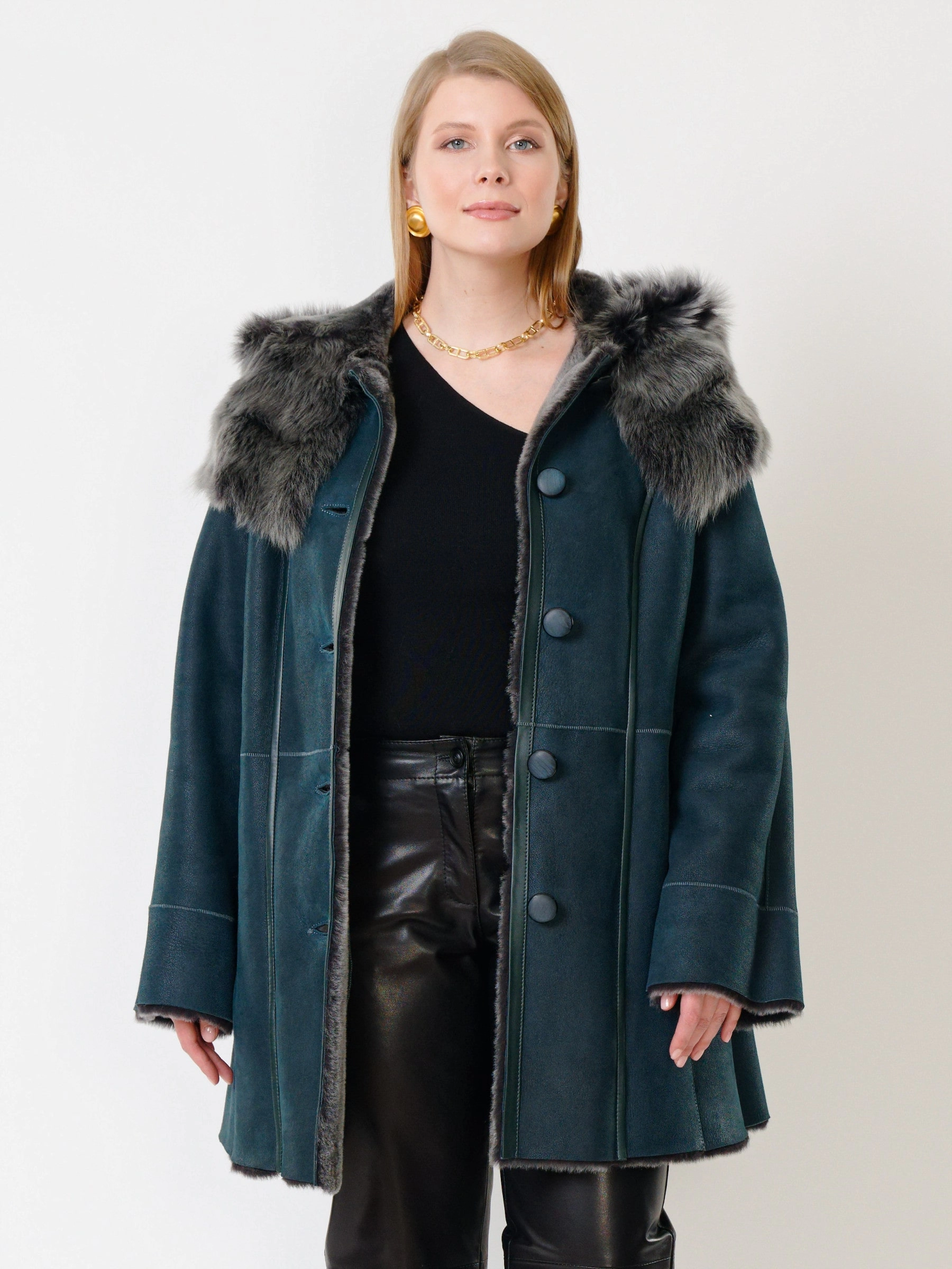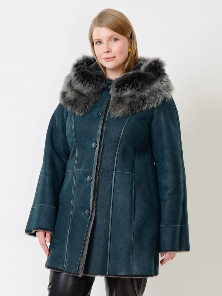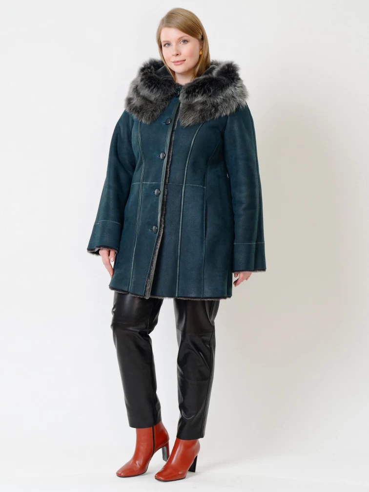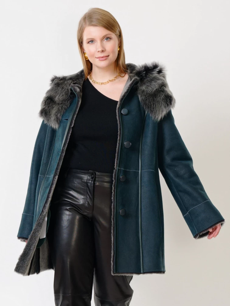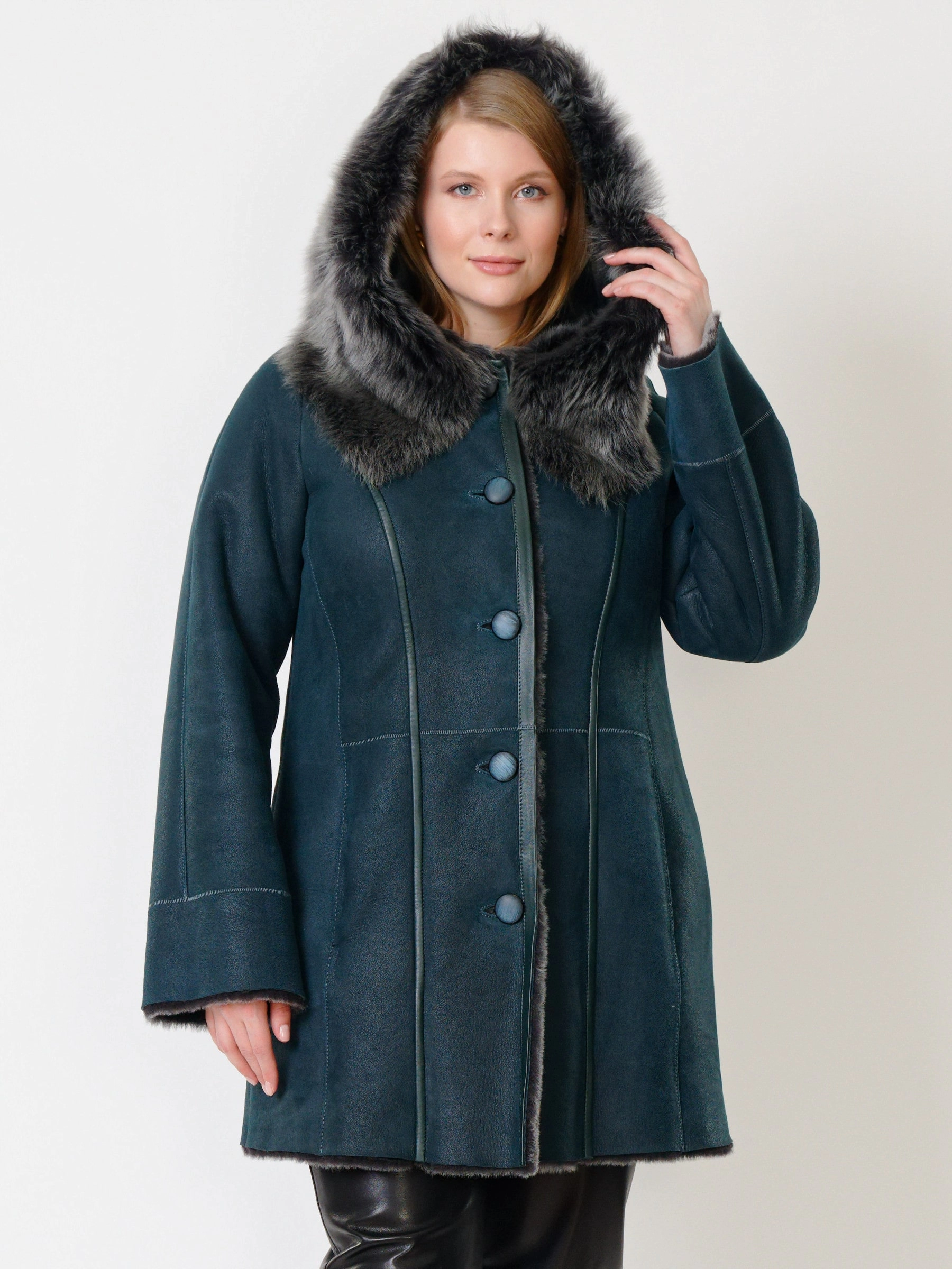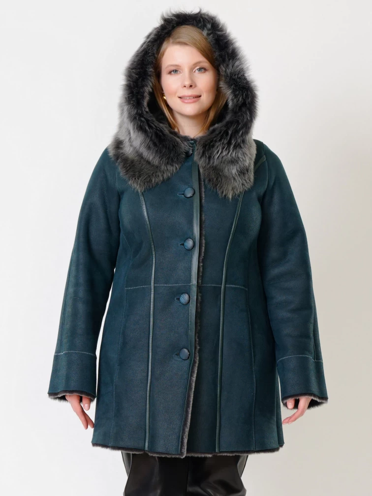 Товар женская дубленка с капюшоном из тосканы 270, синяя, размер 60, артикул 62021 выполнен из овчина "мерино" с застежкой пуговицы. Рассчитан на сезон: осень-зима. Длина изделия 83 см, силуэт прямой.