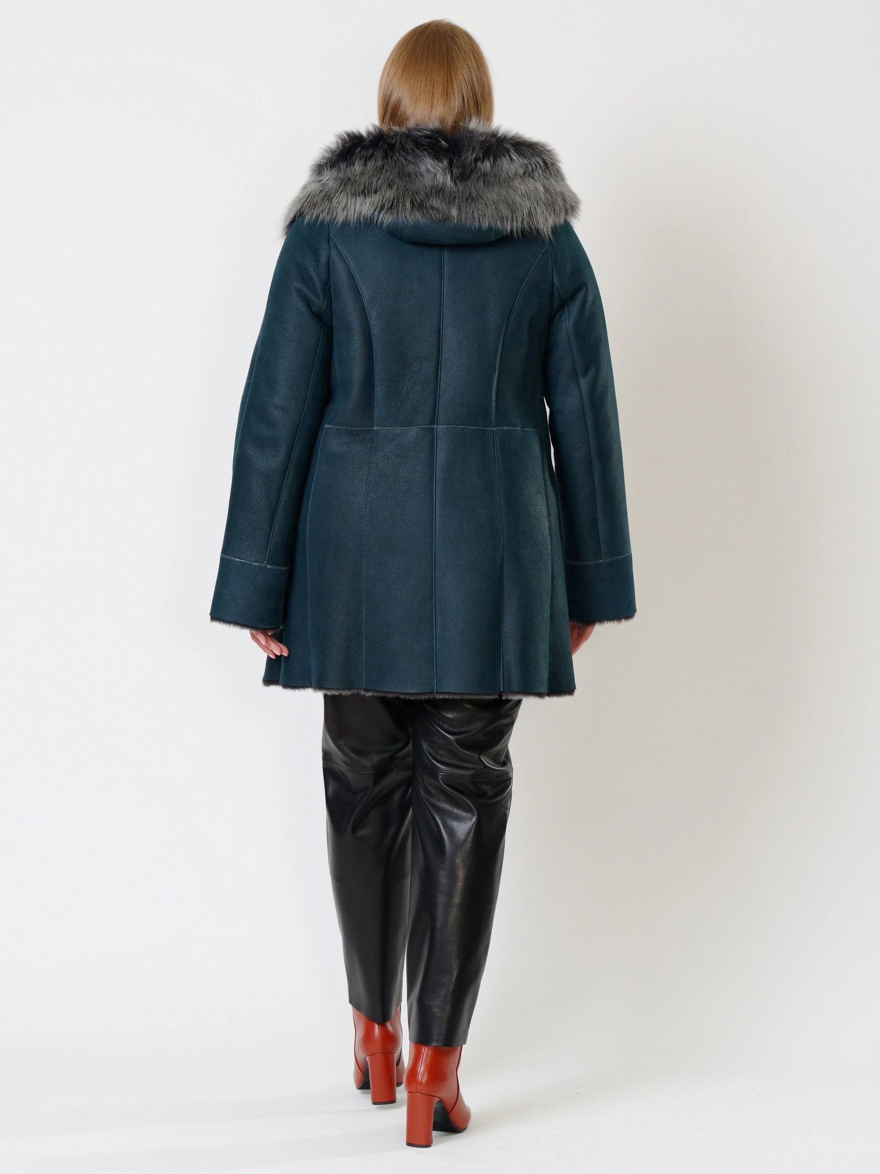 Женская дубленка с капюшоном из тосканы 270, синяя, размер 60, артикул 62021