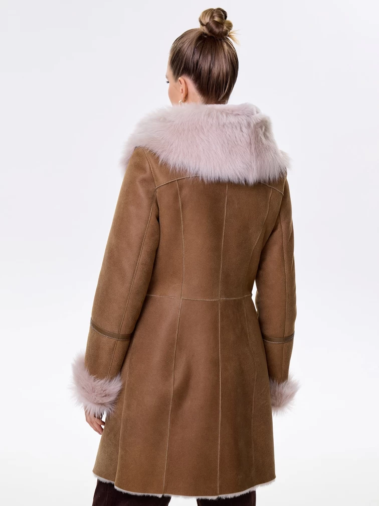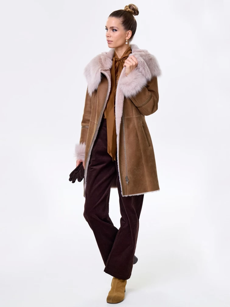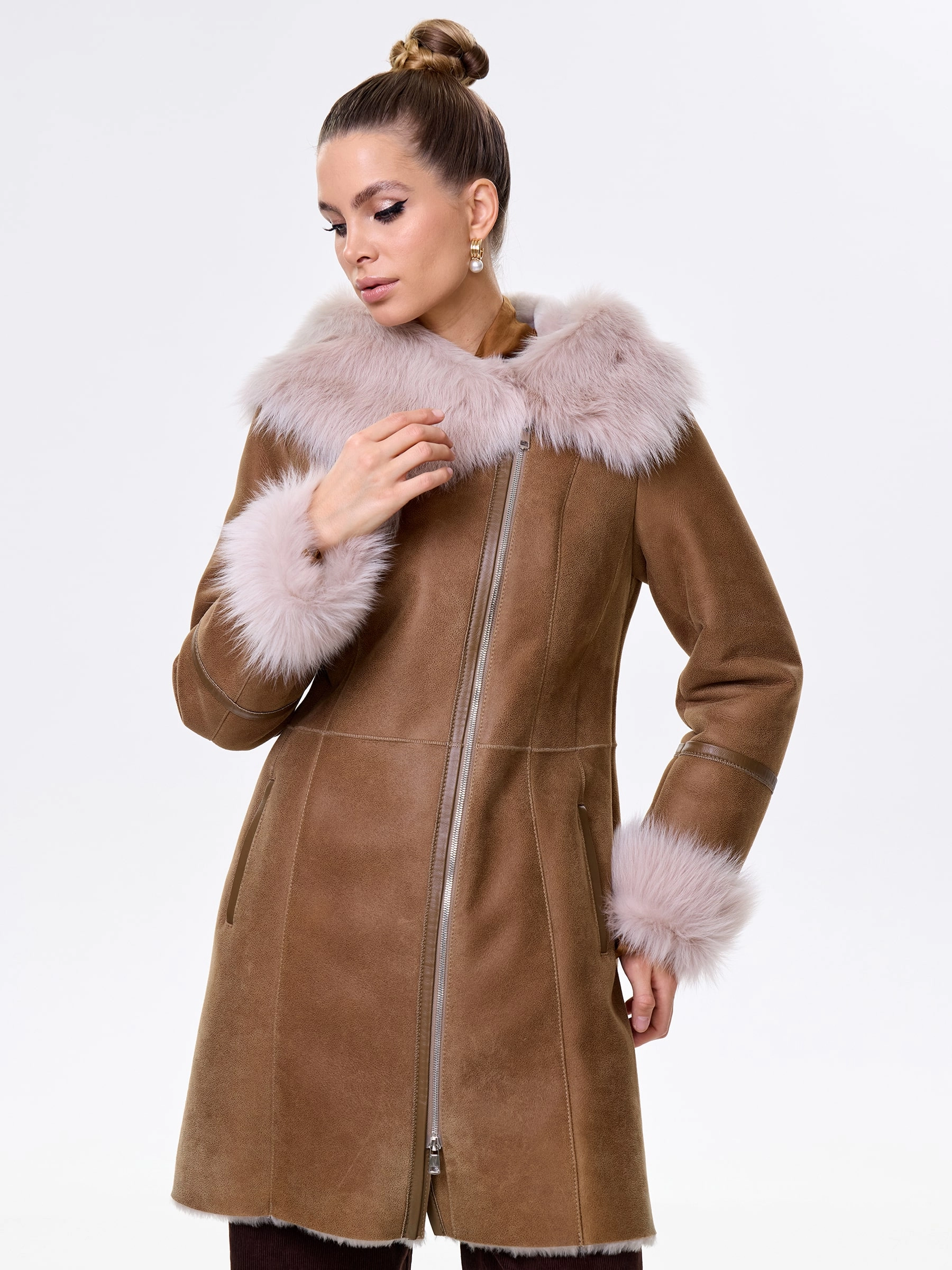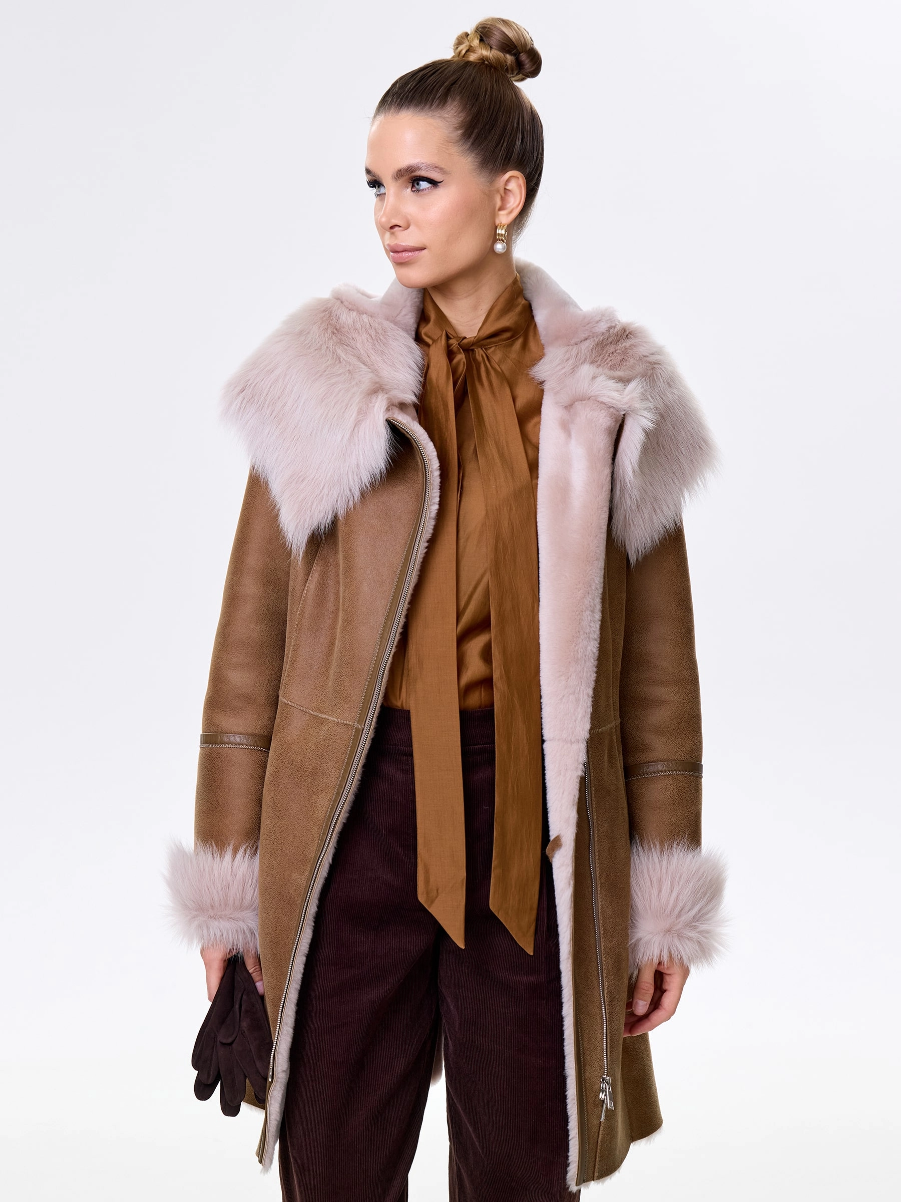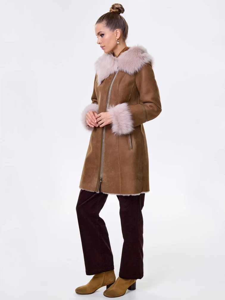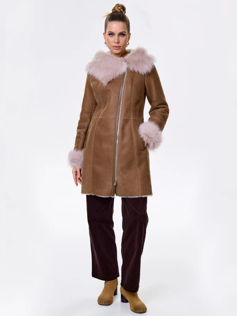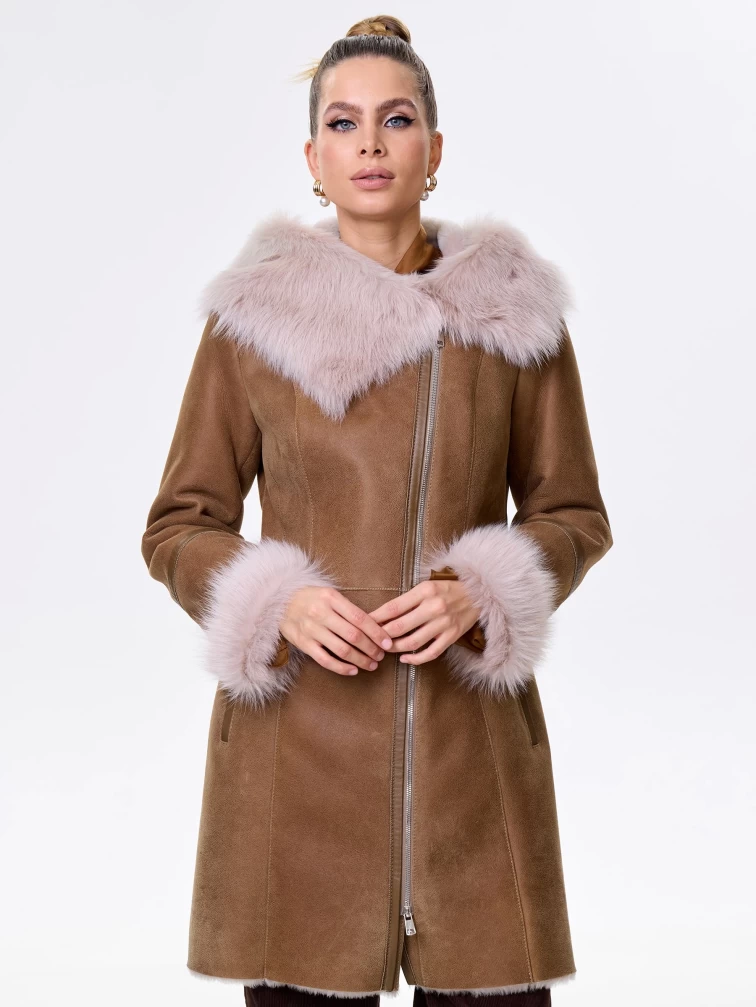 Элегантная длинная женская дубленка-косуха на молнии из натуральной овчины «мерино» длиной 90 см. Модель с несъемным капюшоном и манжетами, отделанными роскошной тосканской овчиной. Она обладает практичным полуприлегающим силуэтом и втачными рукавами. Этот повседневный must-have согреет в холода и дополнит как образ с джинсами и кедами, так и утонченные ансамбли с кожаными брюками или юбками. Он обеспечивает непрерывный комфорт и стиль.