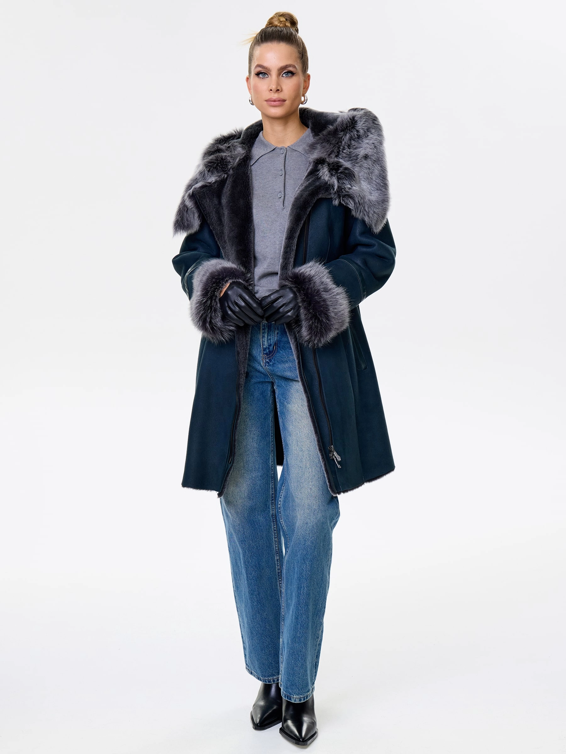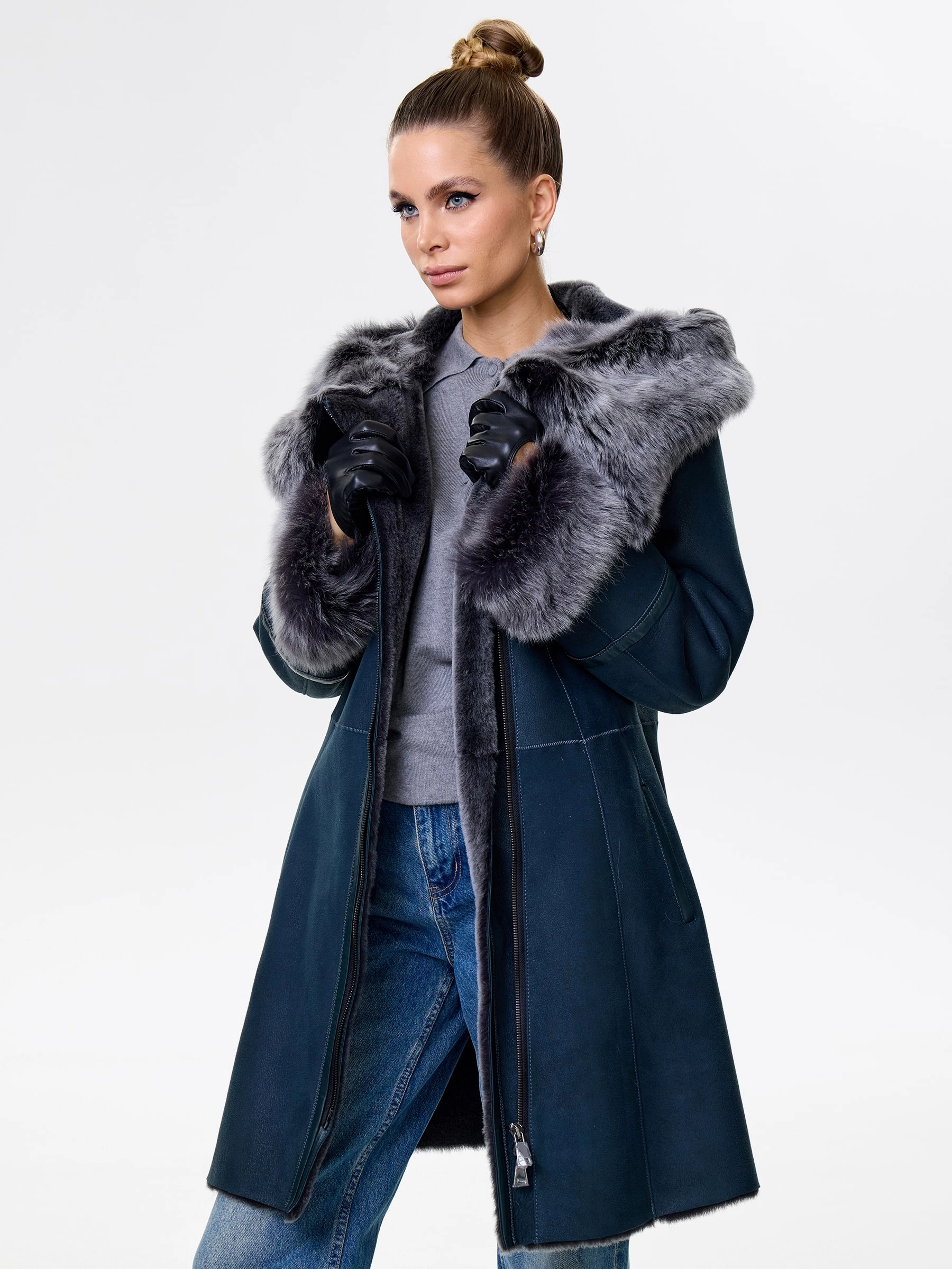 Элегантная длинная женская дубленка-косуха на молнии из натуральной овчины «мерино» длиной 90 см. Модель с несъемным капюшоном и манжетами, отделанными роскошной тосканской овчиной. Она обладает практичным полуприлегающим силуэтом и втачными рукавами. Этот повседневный must-have согреет в холода и дополнит как образ с джинсами и кедами, так и утонченные ансамбли с кожаными брюками или юбками. Он обеспечивает непрерывный комфорт и стиль.