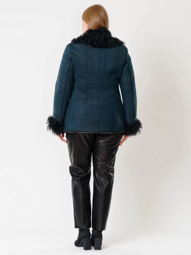 Короткая женская дубленка с овчиной тиградо 289, синяя, размер 42, артикул 62032