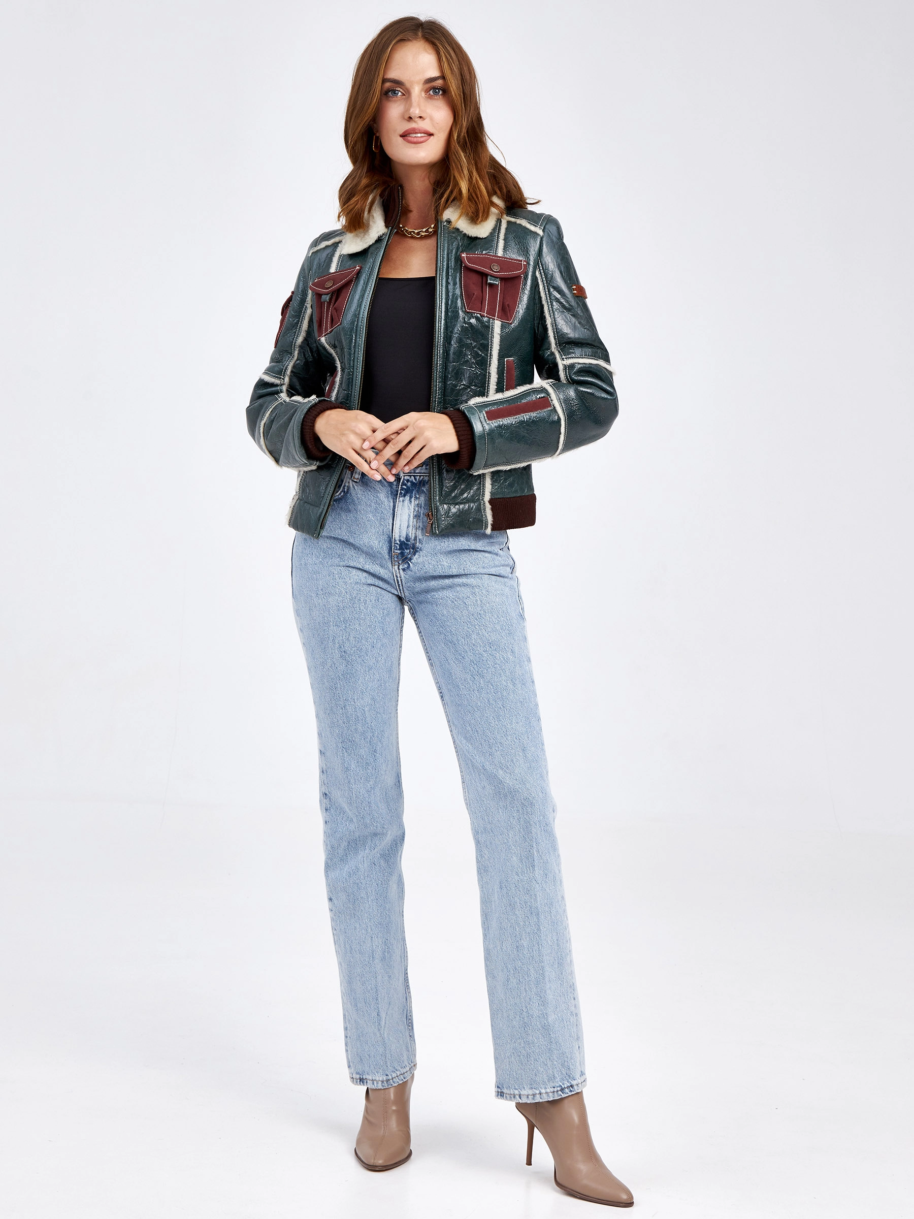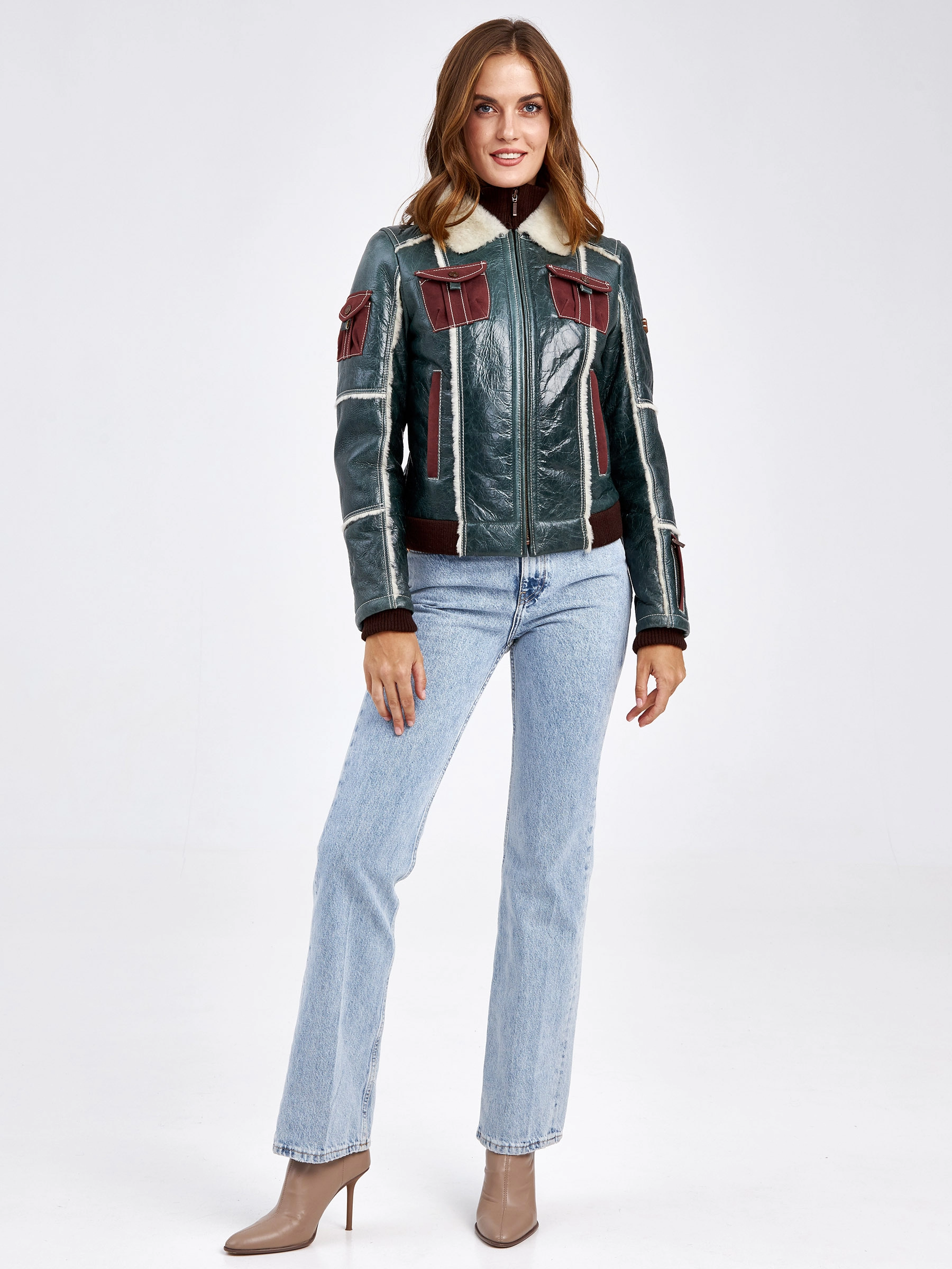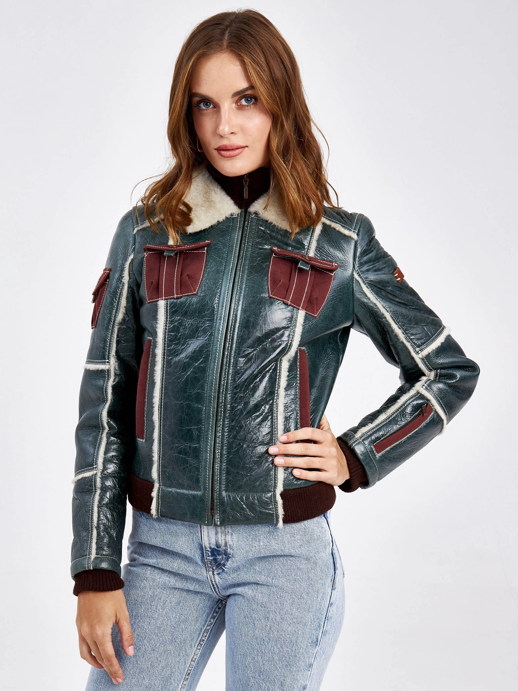 Спортивная короткая куртка из эластичной овчины «меринос» — идеальный выбор для активной городской жизни в сезоны осень-зима. Полуприлегающий силуэт длиной 51-74 см с втачными рукавами обеспечивает аккуратную, подвижную посадку. Особенность модели — двойная отделка овчиной: снаружи тонкая прочная кожа, а изнутри — мягкий коротковорсовый мех, который великолепно сохраняет тепло, не пропуская ветер. Куртка выполнена в лаконичном утилитарном стиле без капюшона и декора, что подчёркивает качество материала и чистоту линий. Застёжка-молния и воротник-стойка добавляют образу динамики и завершённости. Эта модель станет вашим надёжным и стильным спутником в прохладную и холодную погоду.