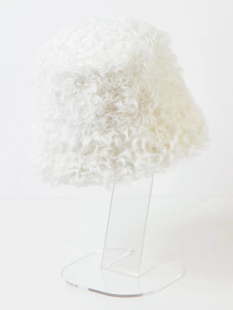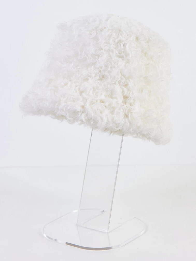 Товар головной убор из меха калгана женский м-211_1, белый, размер 58, артикул 51400 выполнен из калган. Рассчитан на сезон: осень-зима.