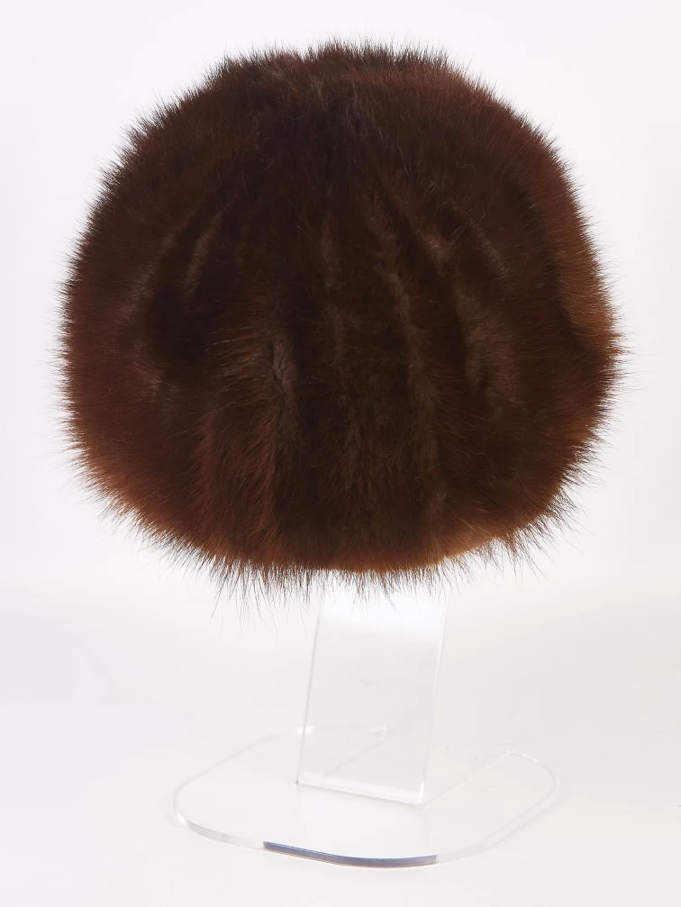 Этот женский головной убор мастера выполнили из хвостиков норки. Аксессуар получился легим и теплым. Элегантная шапочка составит компанию как шубе, так и лаконичному пальто.