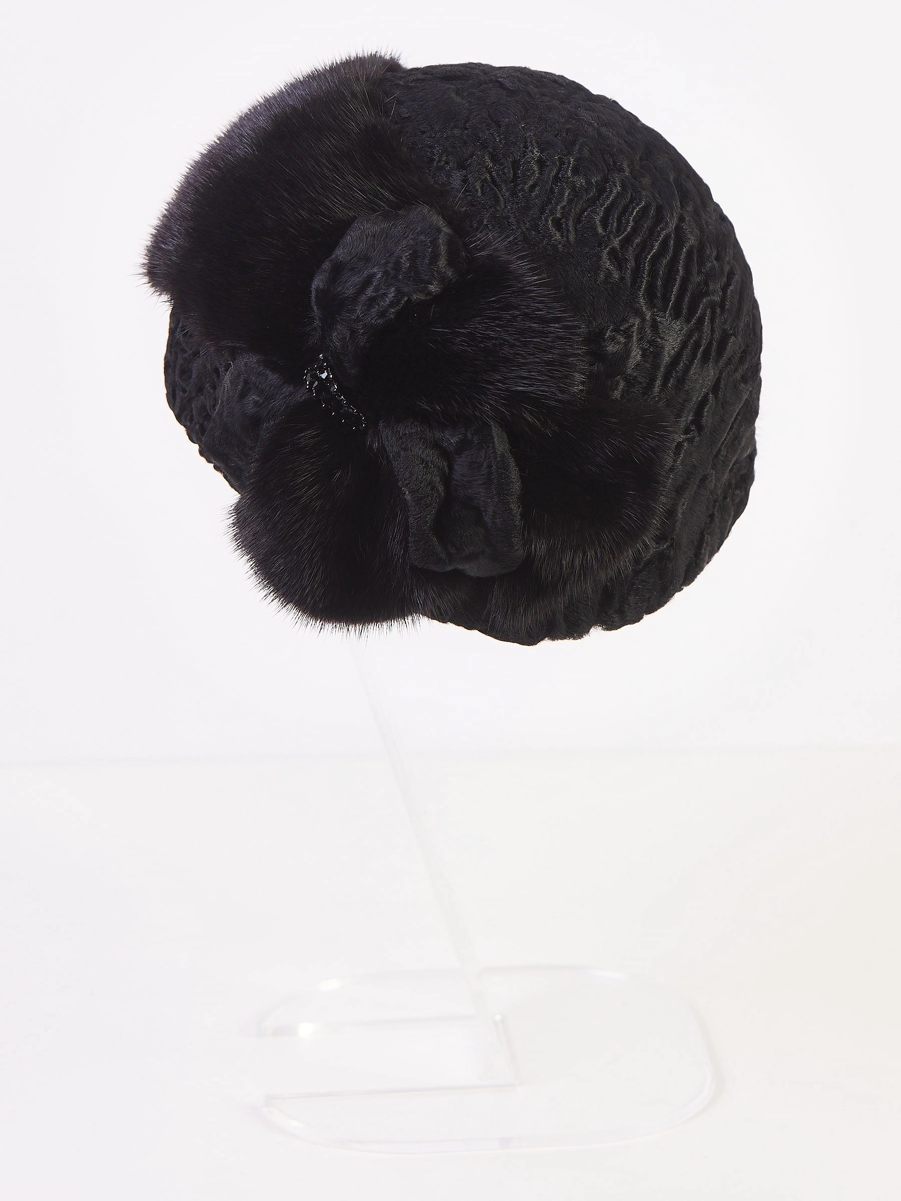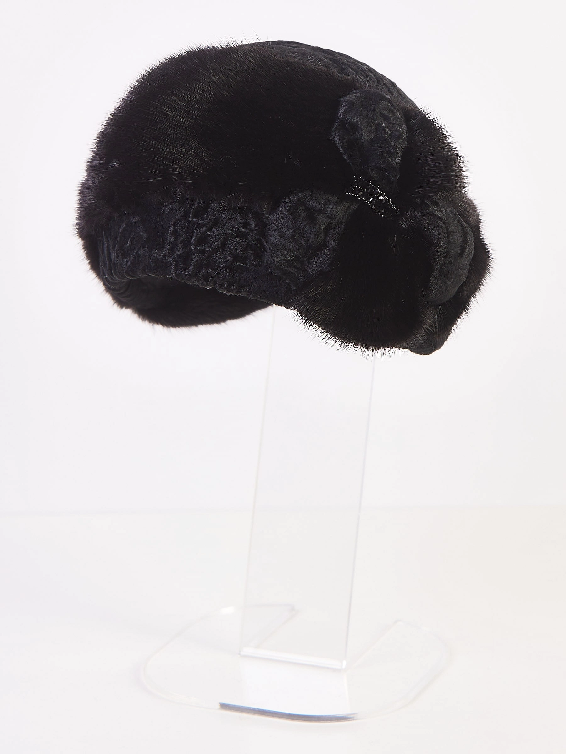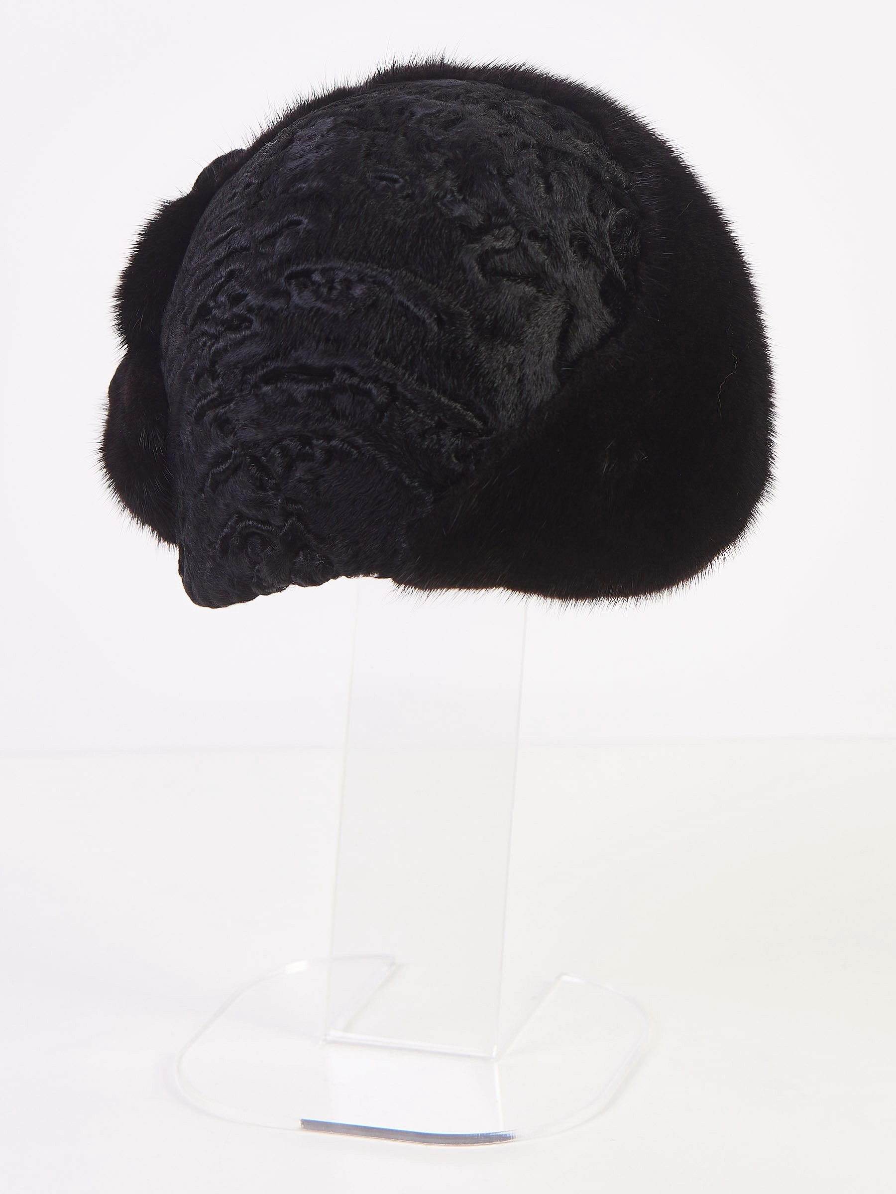 Фасон-ретро это уникальное явление для ваших неповторимых образов и индивидуального характера. Аксессуар из меха каракуля в тандеме с нежной норкой, представляет собой лаконичный, элегантный головной убор, он порадует свою обладательницу прекрасным мехом с неповторимым рисунком, долгим сроком службы, удобной посадкой.