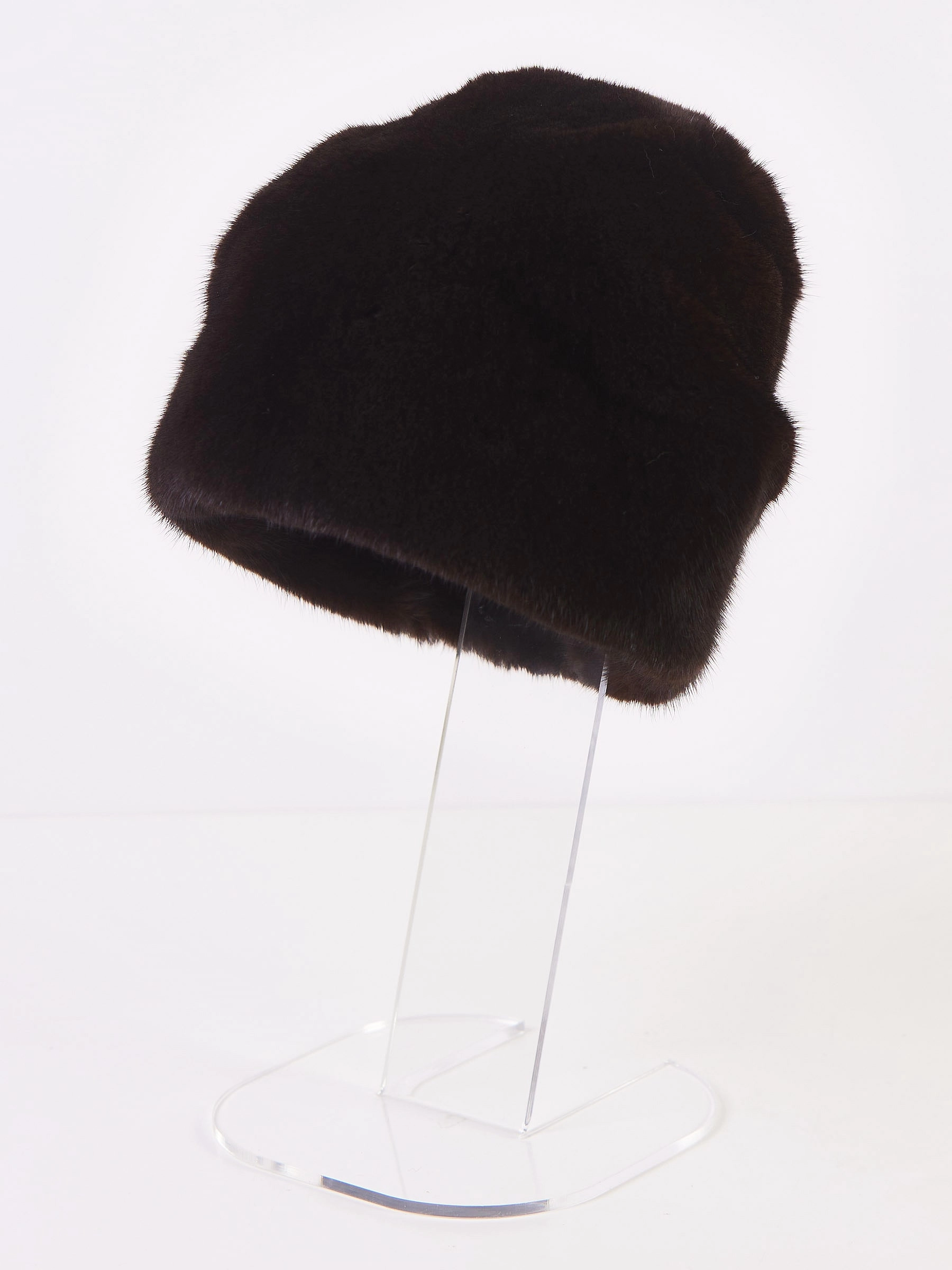 Головной убор из меха норки женский М-213, темно-коричневый, размер 58, артикул 51465
