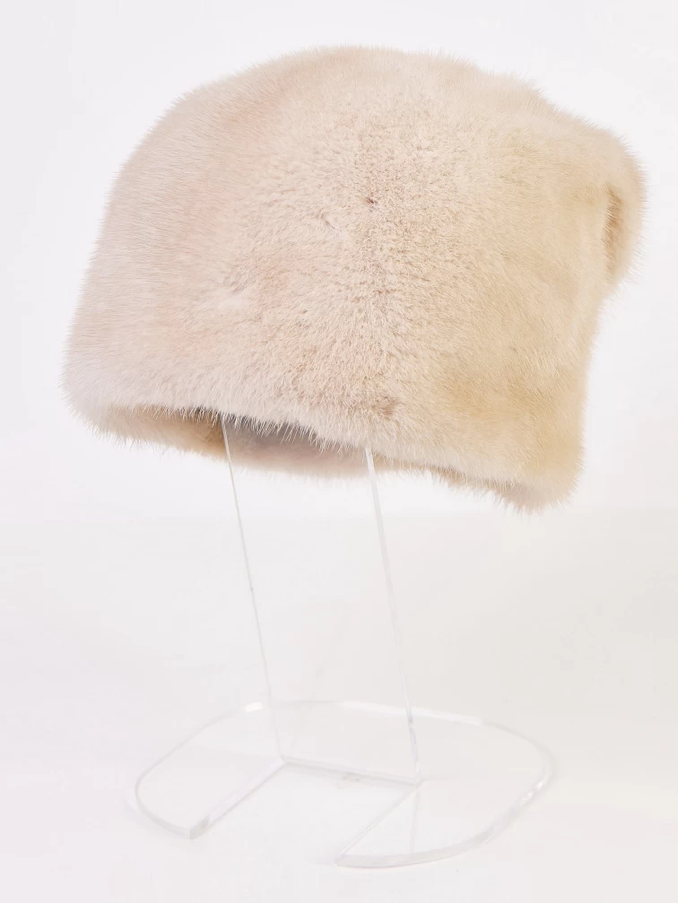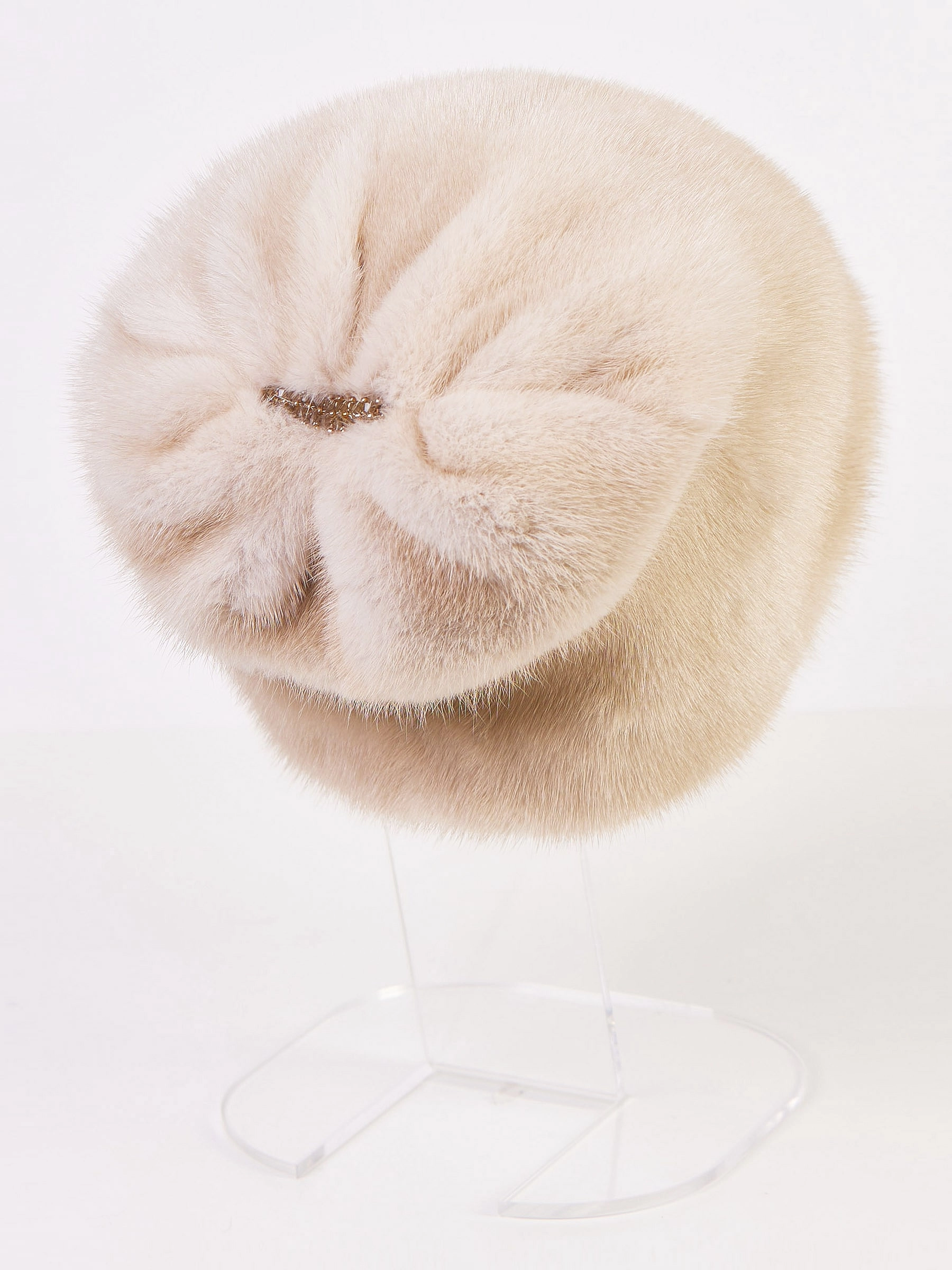 Головной убор из меха норки женский М-284, жемчужный, размер 58, артикул 51430