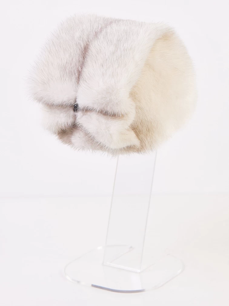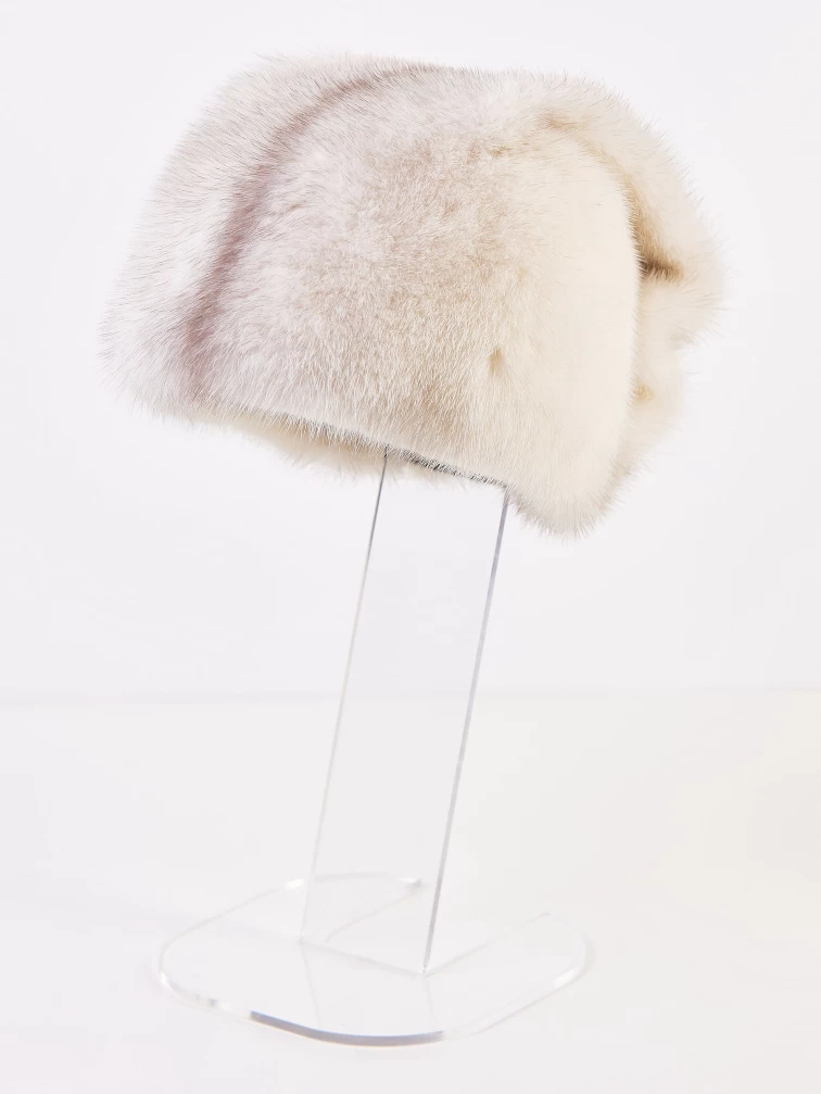 Женская шапка выполнена из шелковистого меха норки с плотной и густой подпушью. Глубокая посадка, затылочная часть собрана в широкие складки. Аксессуар хорошо сохраняет тепло в холодную погоду.