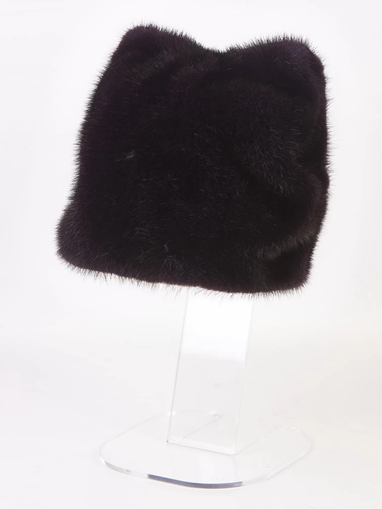 Головной убор из меха норки женский Ушки, фиолетовый, размер 58, артикул 51575