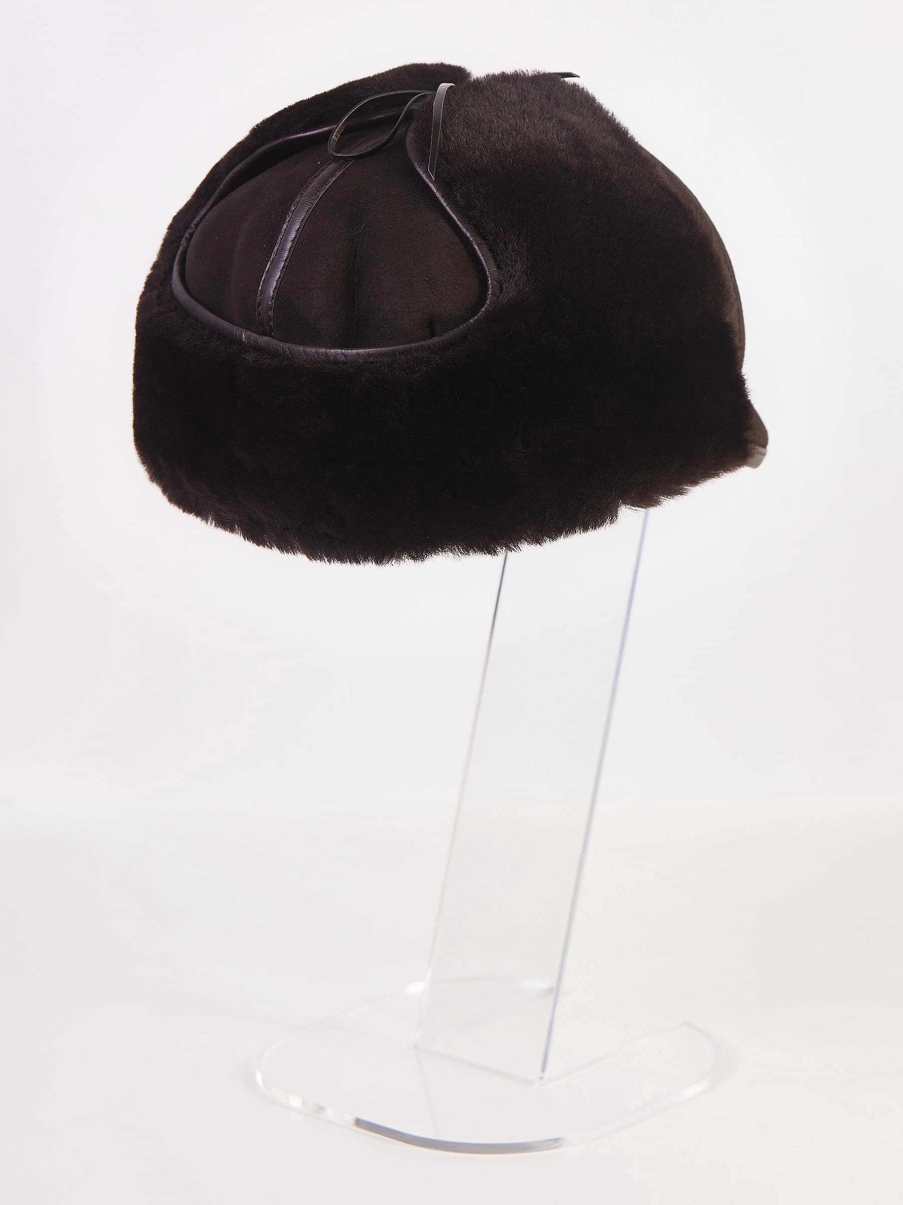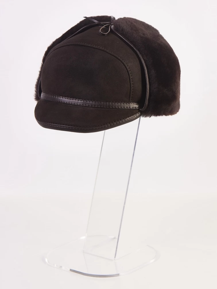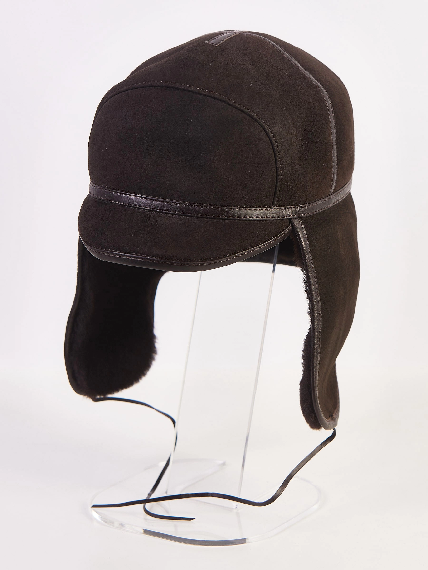 Великолепный головной убор для холодной зимы. Лицевая сторона выполнена из натуральной замши. Внутренняя из плотной мягкой овчины. Жесткий козырек, меховые ушки опускаются или фиксируются тонким шнурком из натуральной кожи.