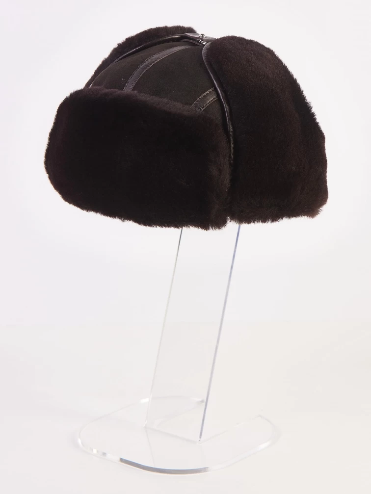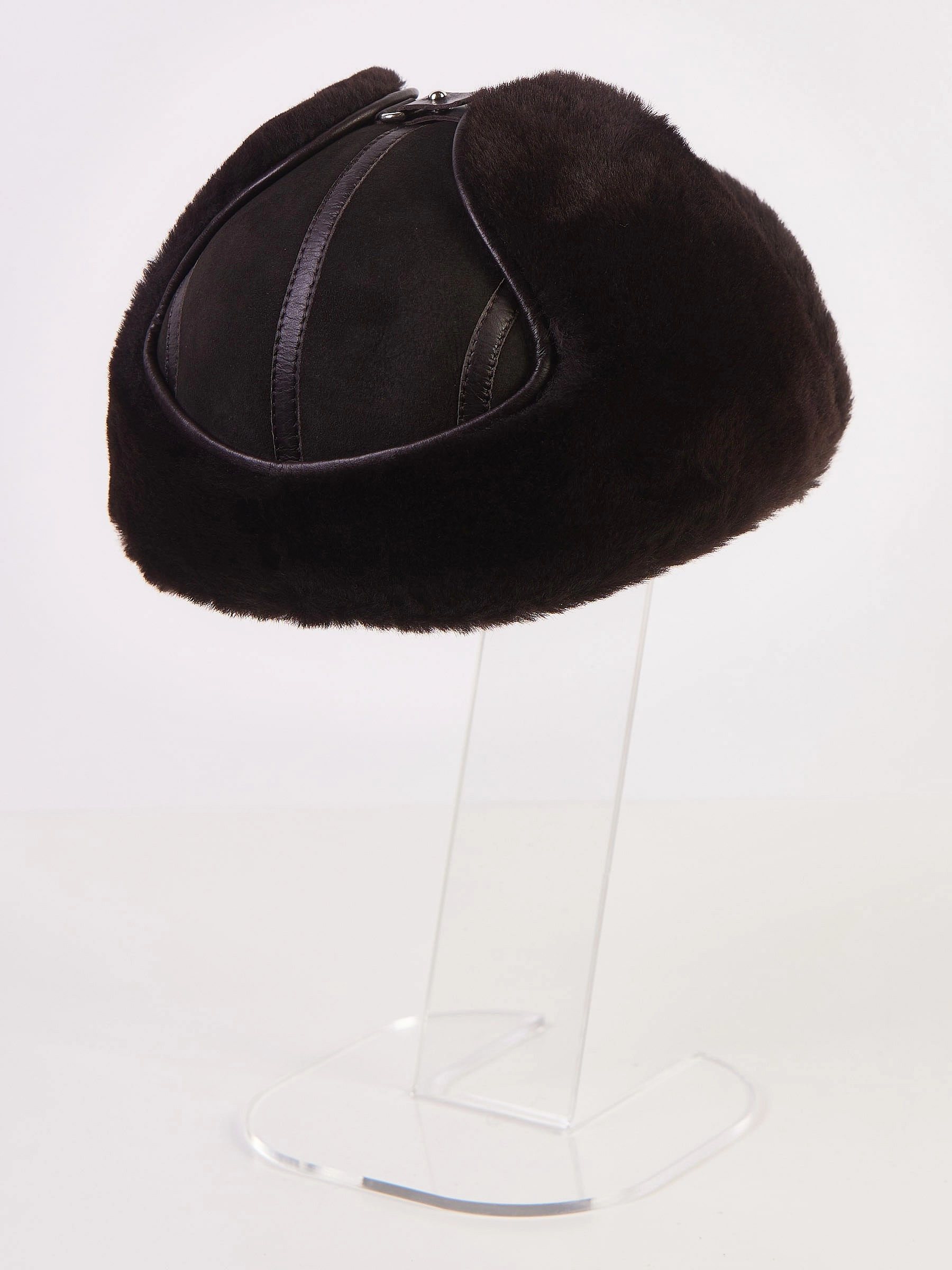 Мужская шапка-ушанка выполнена из меховой овчины в комбинации с натуральной замшей. Мех имеет высокую износостойкоть и сохраняет теплозащитные свойства. Ушанка имеет глубокую, комфортную посадку. Меховые уши можно легко завязать под подбородком для максимальной защиты от мороза или сзади с помощью двух узких кожаных шнурков.