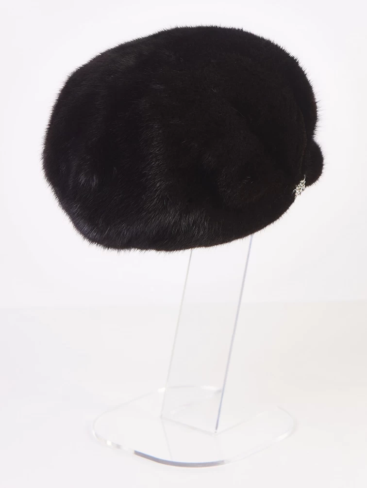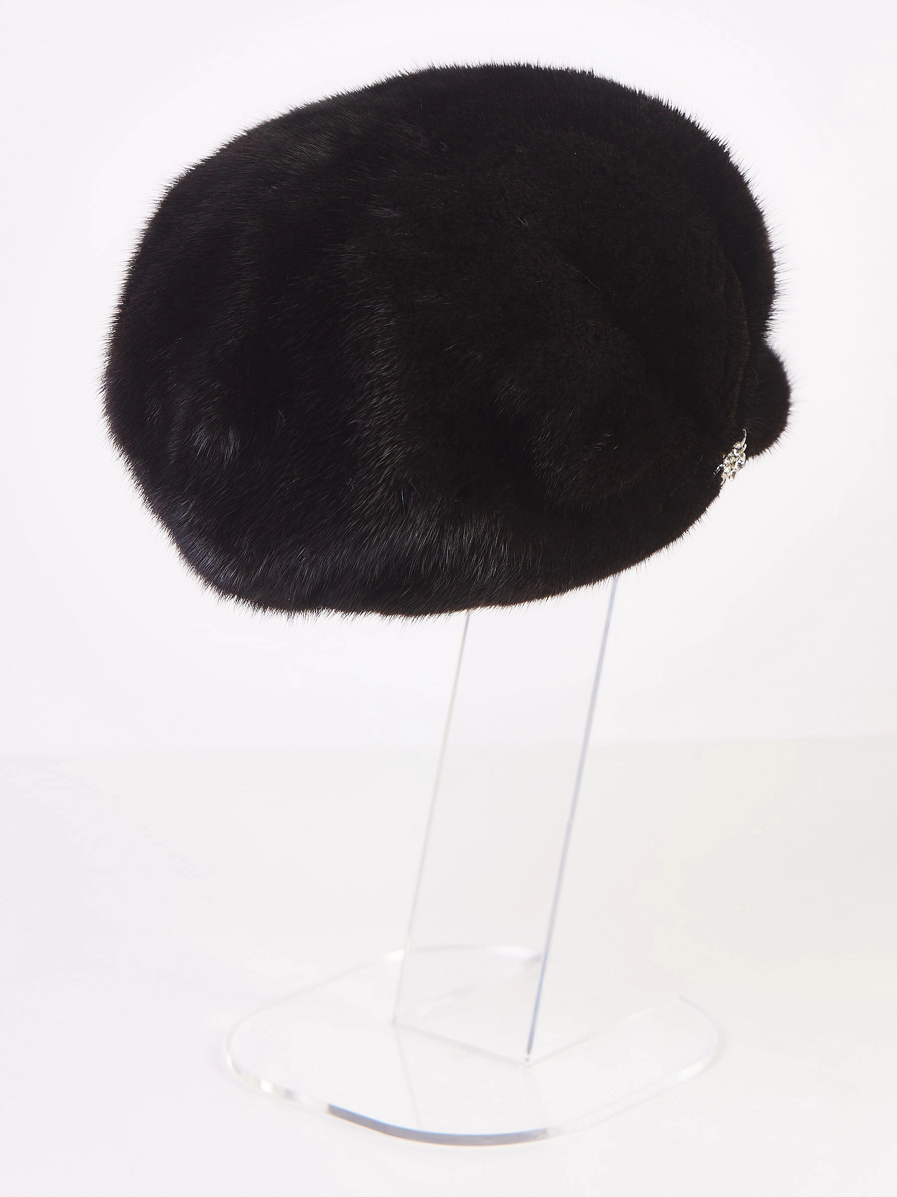 Головной убор (кепи) из меха норки женский М-128, черный, размер 58, артикул 51625
