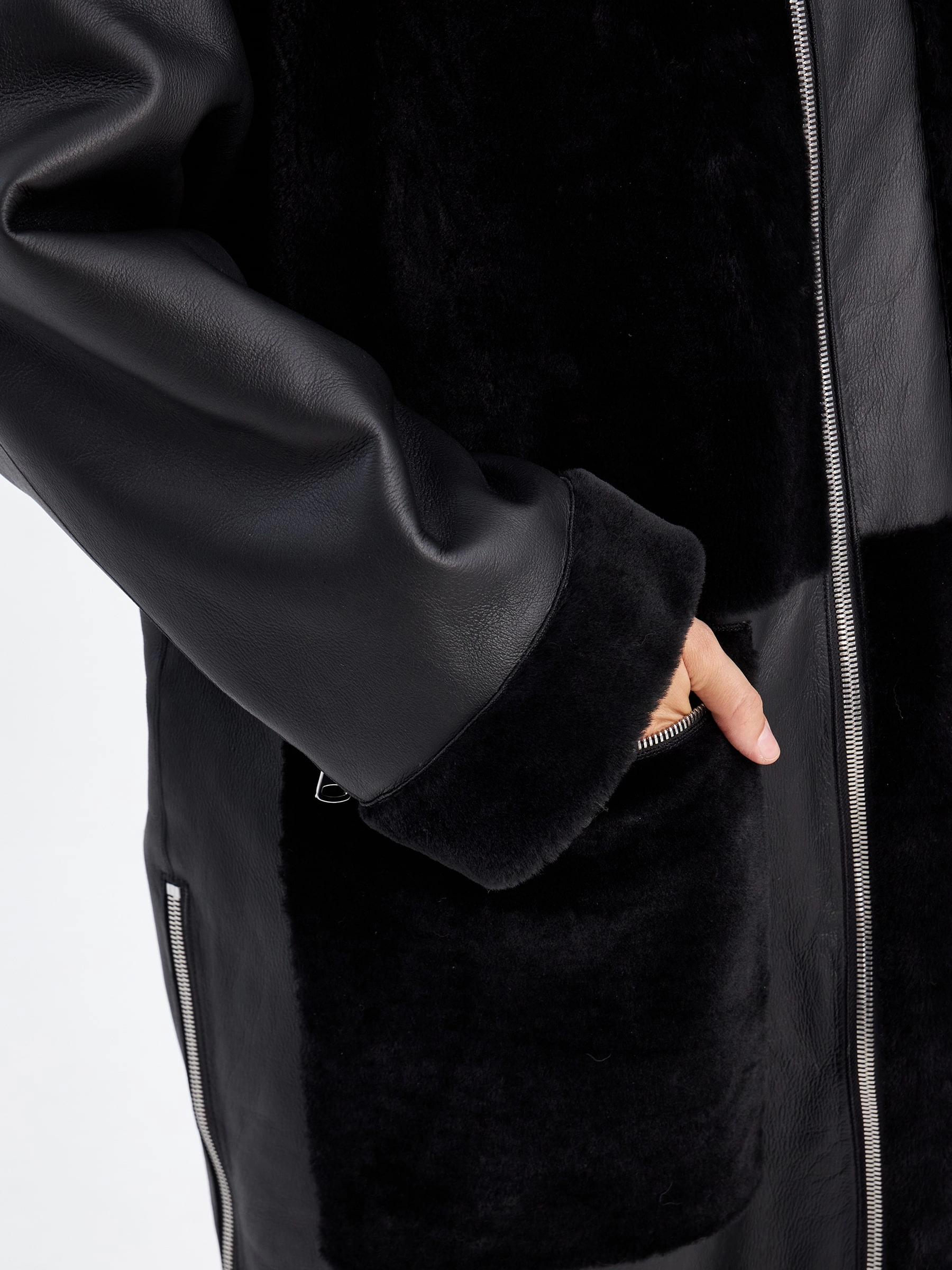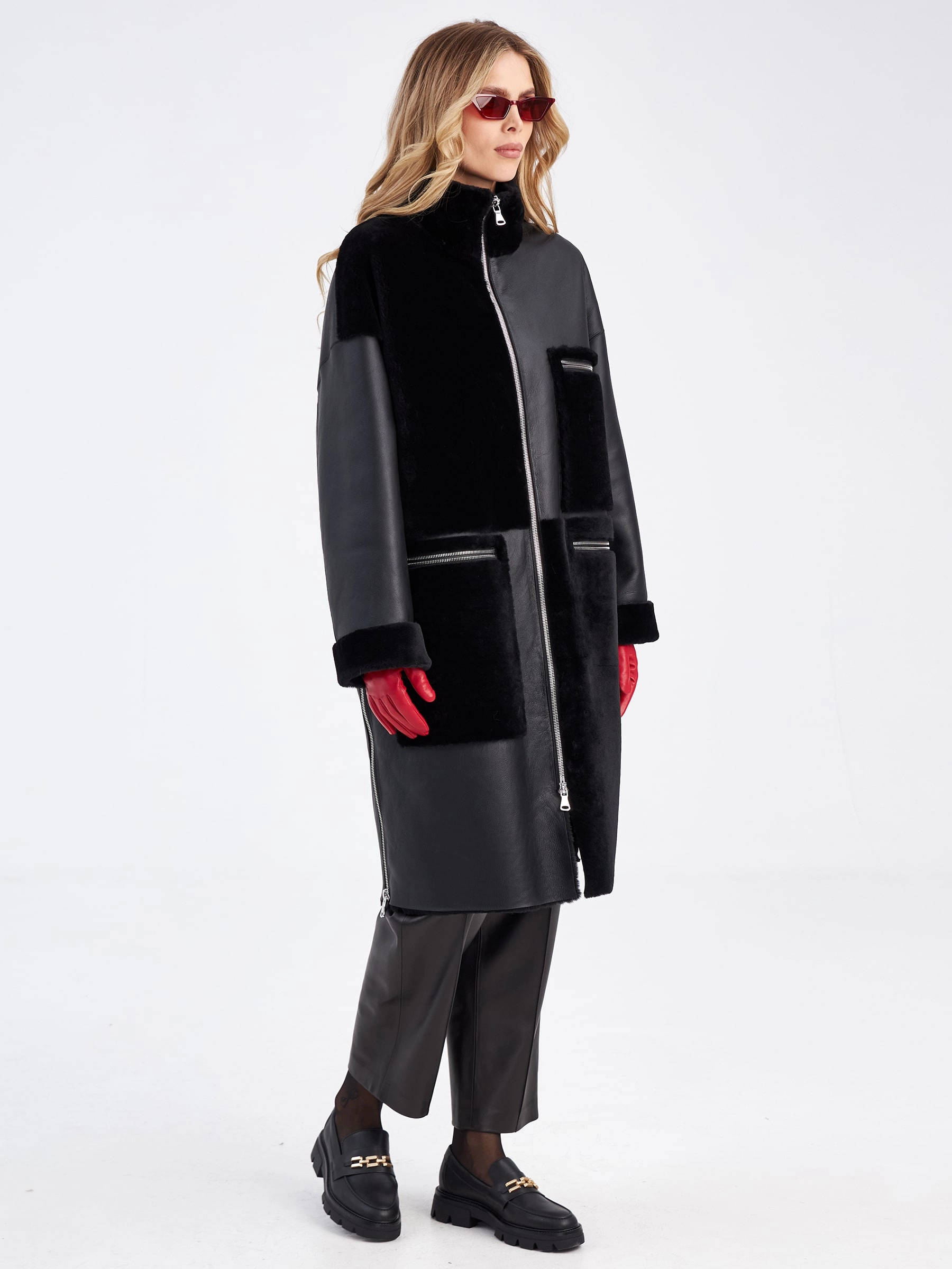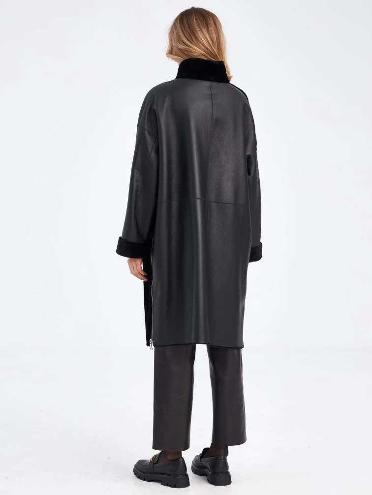 Товар комбинированное молодежное женское пальто из меховой овчины премиум класса 2044, черное, размер 48, артикул 63970 выполнен из овчина "мерино" с застежкой молния. Рассчитан на сезон: осень-зима. Длина изделия 110 см, силуэт прямой.