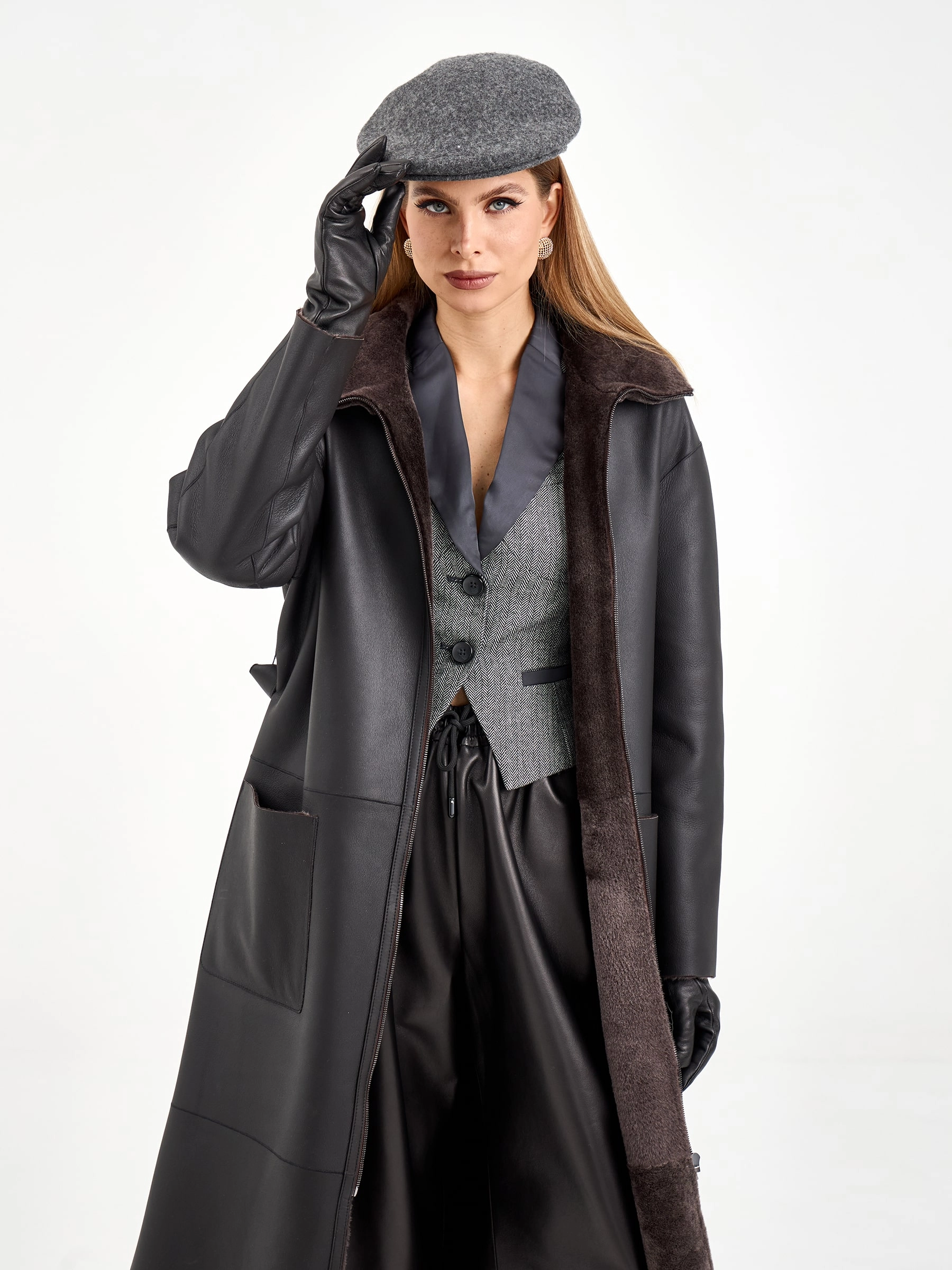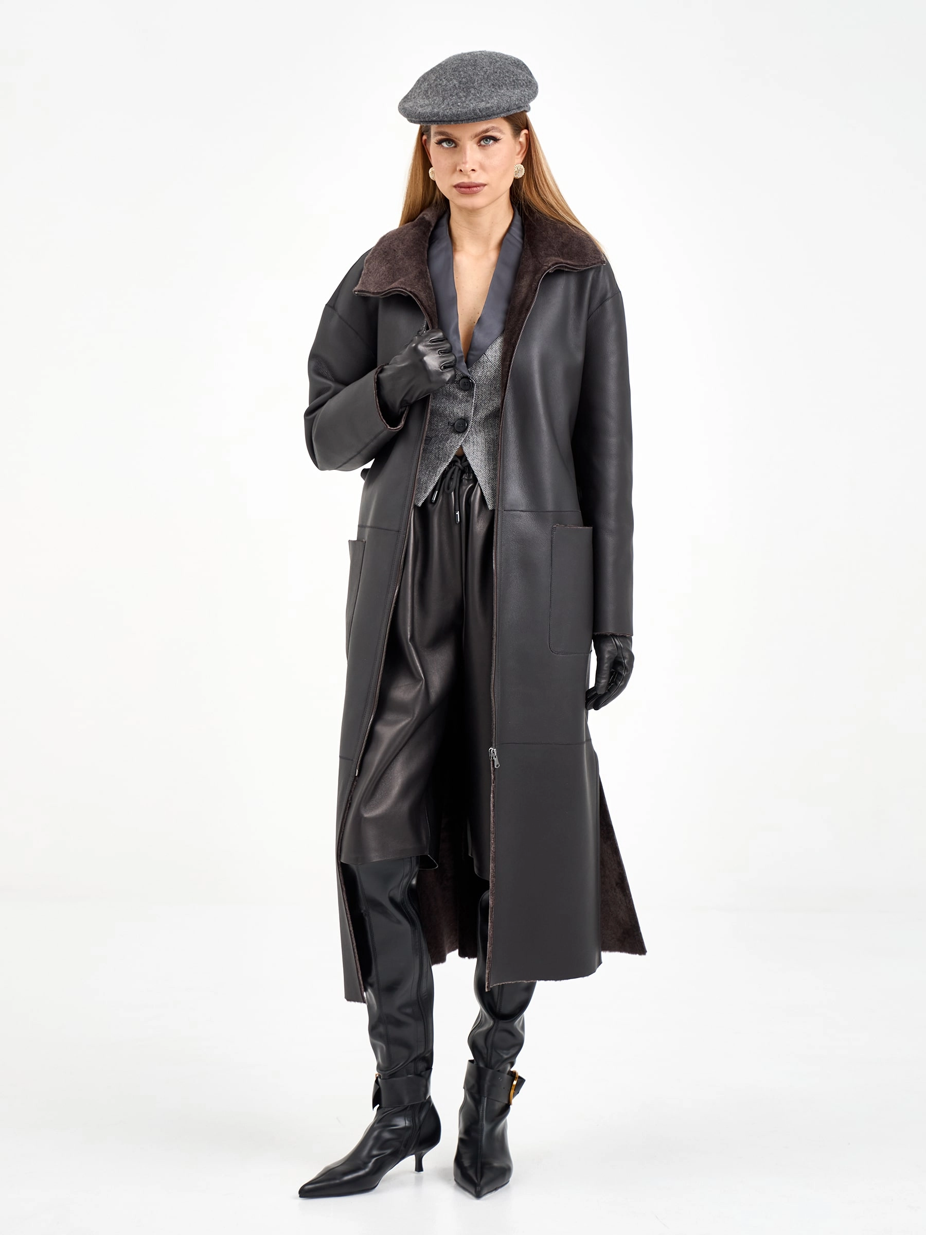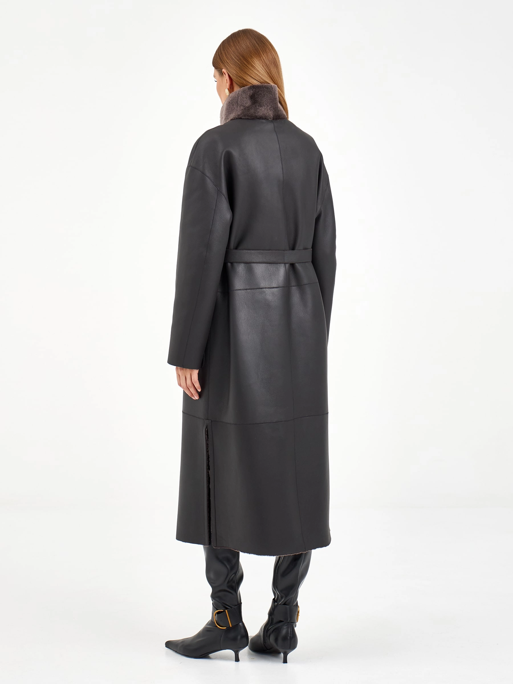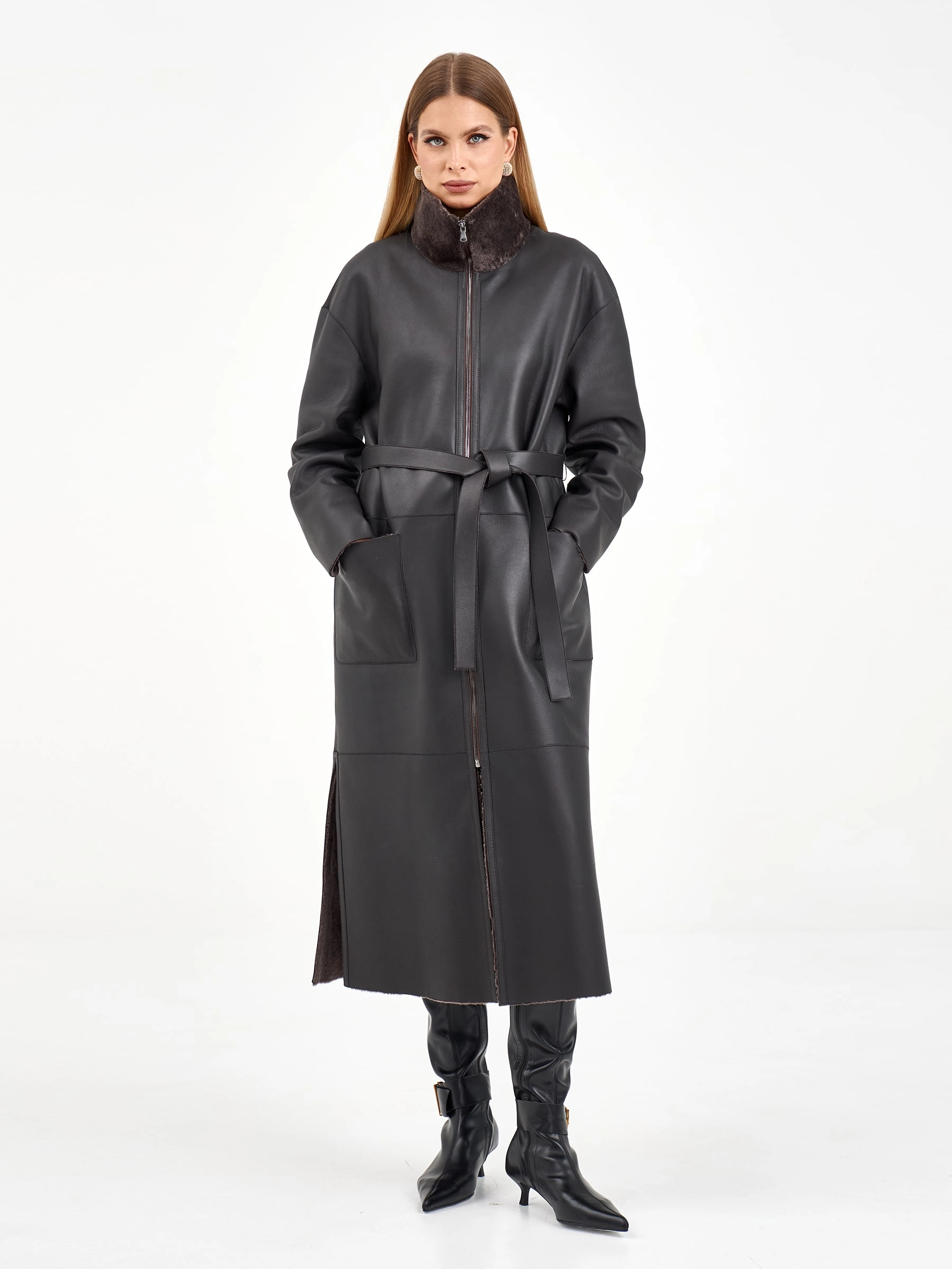 Элегантная модель прямого кроя с боковыми разрезами и длинным поясом, который подчеркивает талию. Глубокий капюшон и спущенный рукав создают современный силуэт, а накладные карманы добавляют практичности. Стилисты рекомендуют носить с узкими джинсами, водолазкой и ботинками челси для создания стильного образа с ноткой уверенности — идеальный вариант для повседневной носки с элементами городского драйва и расслабленной грации.