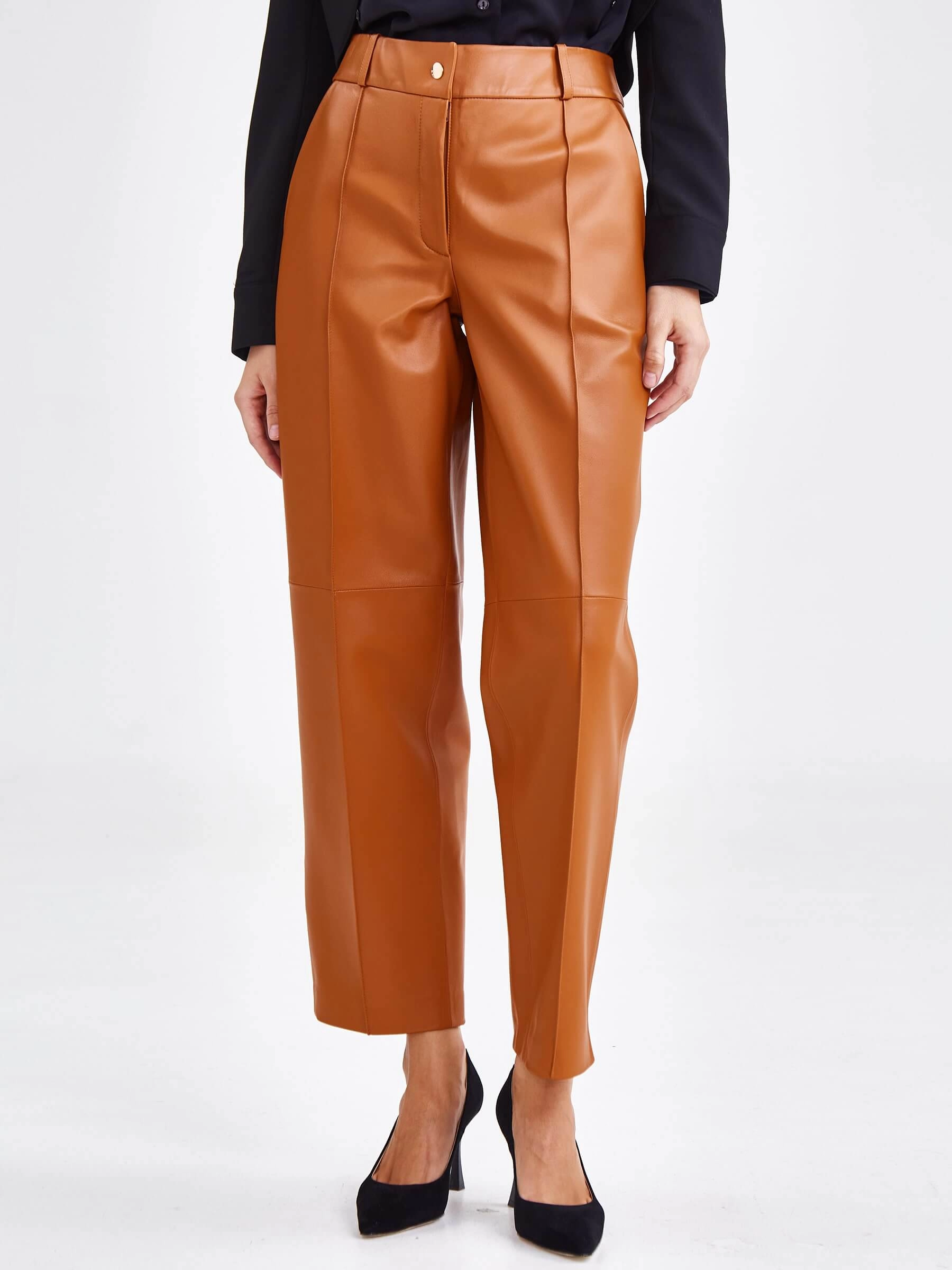Товар коричневые модные женские кожаные брюки 08, размер 42, артикул 85912 выполнен из натуральной кожи с застежкой молния. Рассчитан на сезон: весна-лето. Длина изделия 95 см, силуэт прямой.