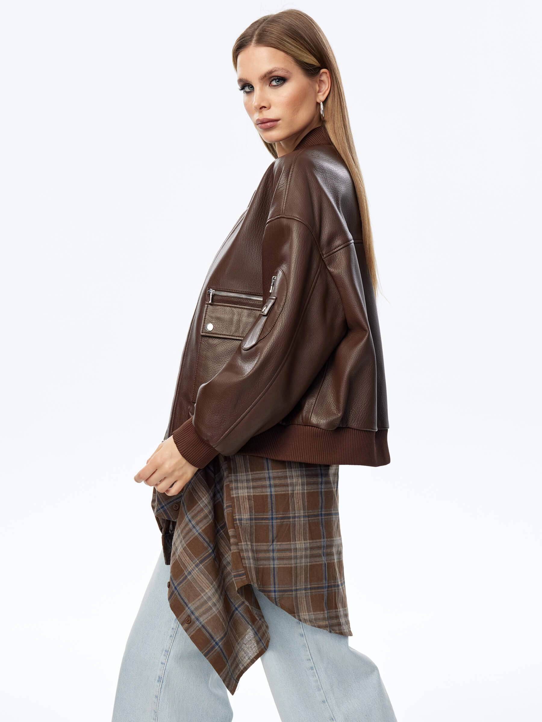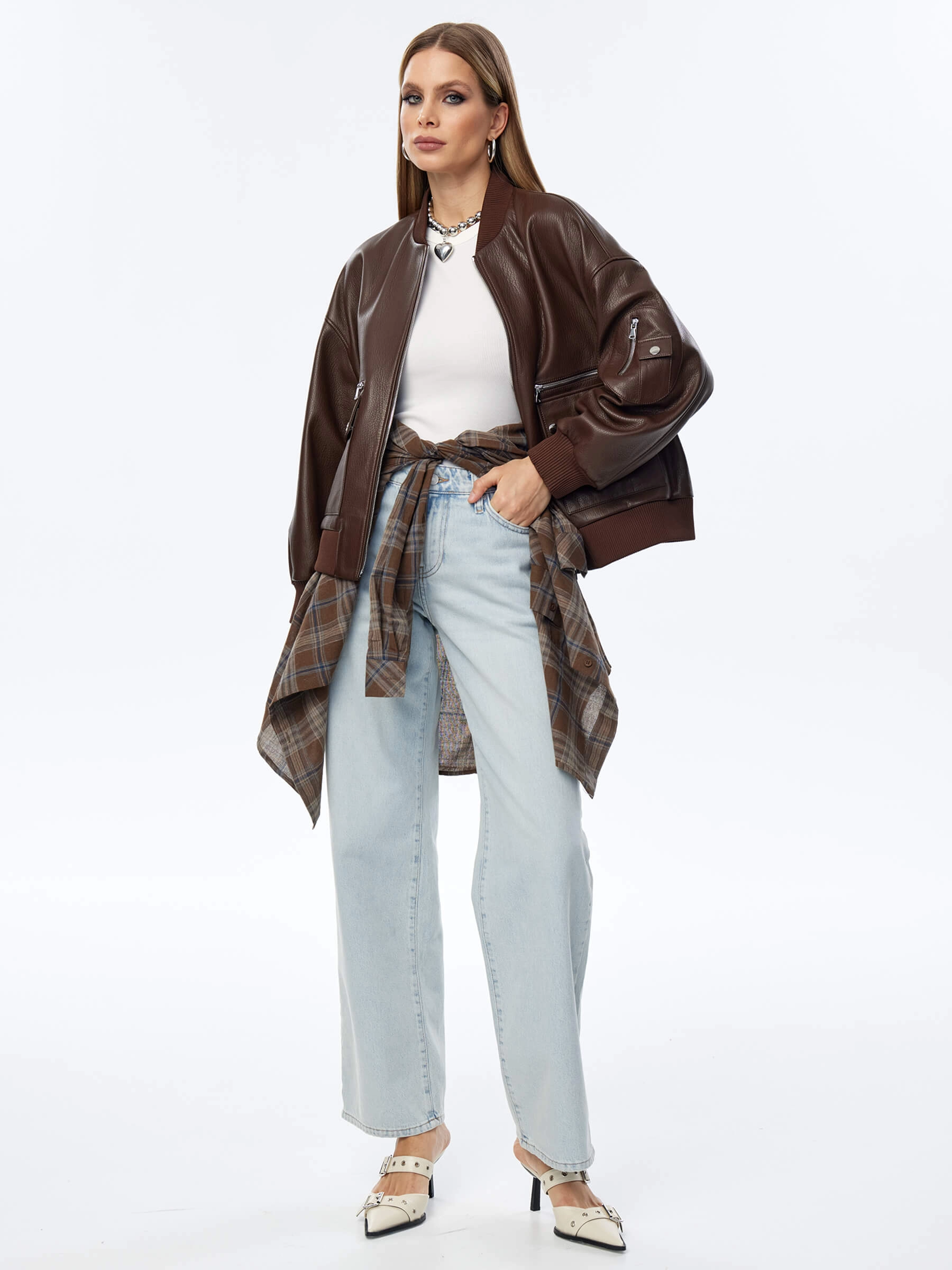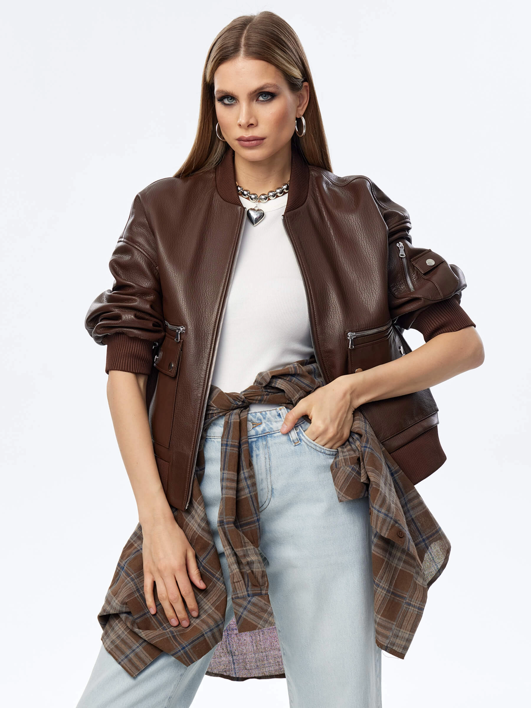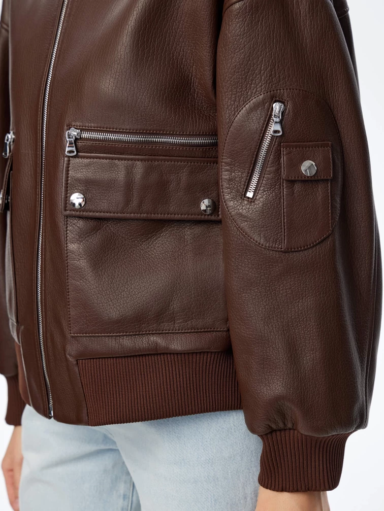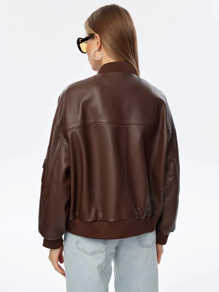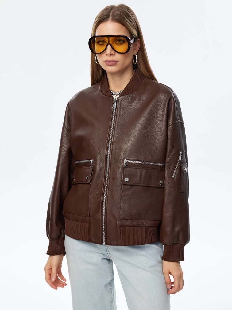 Товар короткая кожаная куртка бомбер для женщин премиум класса 3064, коричневая, размер 46, артикул 24030 выполнен из натуральной кожи с застежкой молния. Рассчитан на сезон: весна-осень. Длина изделия 60 см, силуэт свободный.