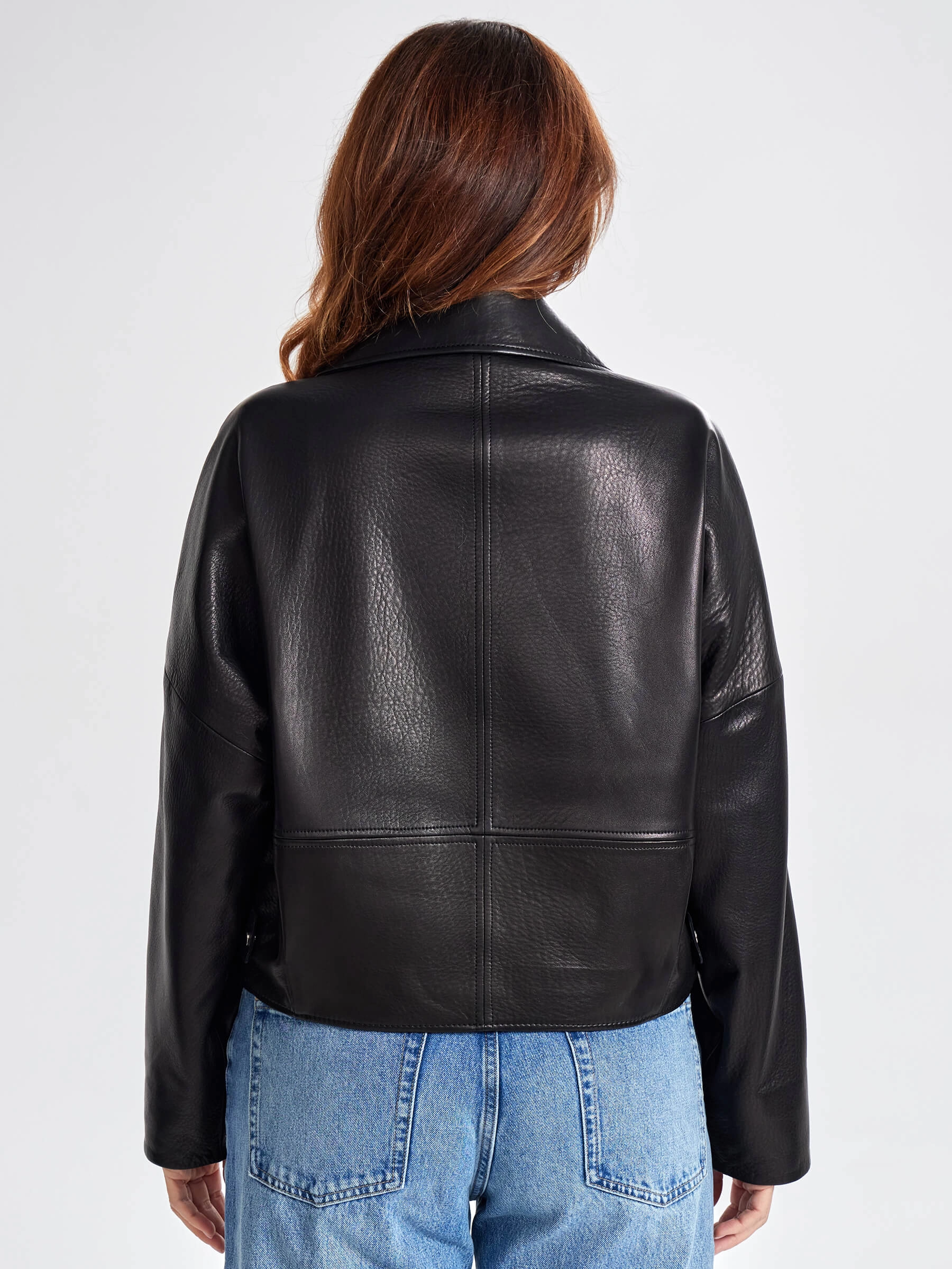 Товар короткая кожаная куртка косуха для женщин премиум класса 3051, черная, размер 48, артикул 23940 выполнен из натуральной кожи. Рассчитан на сезон: весна-осень. Длина изделия 60 см, силуэт свободный.