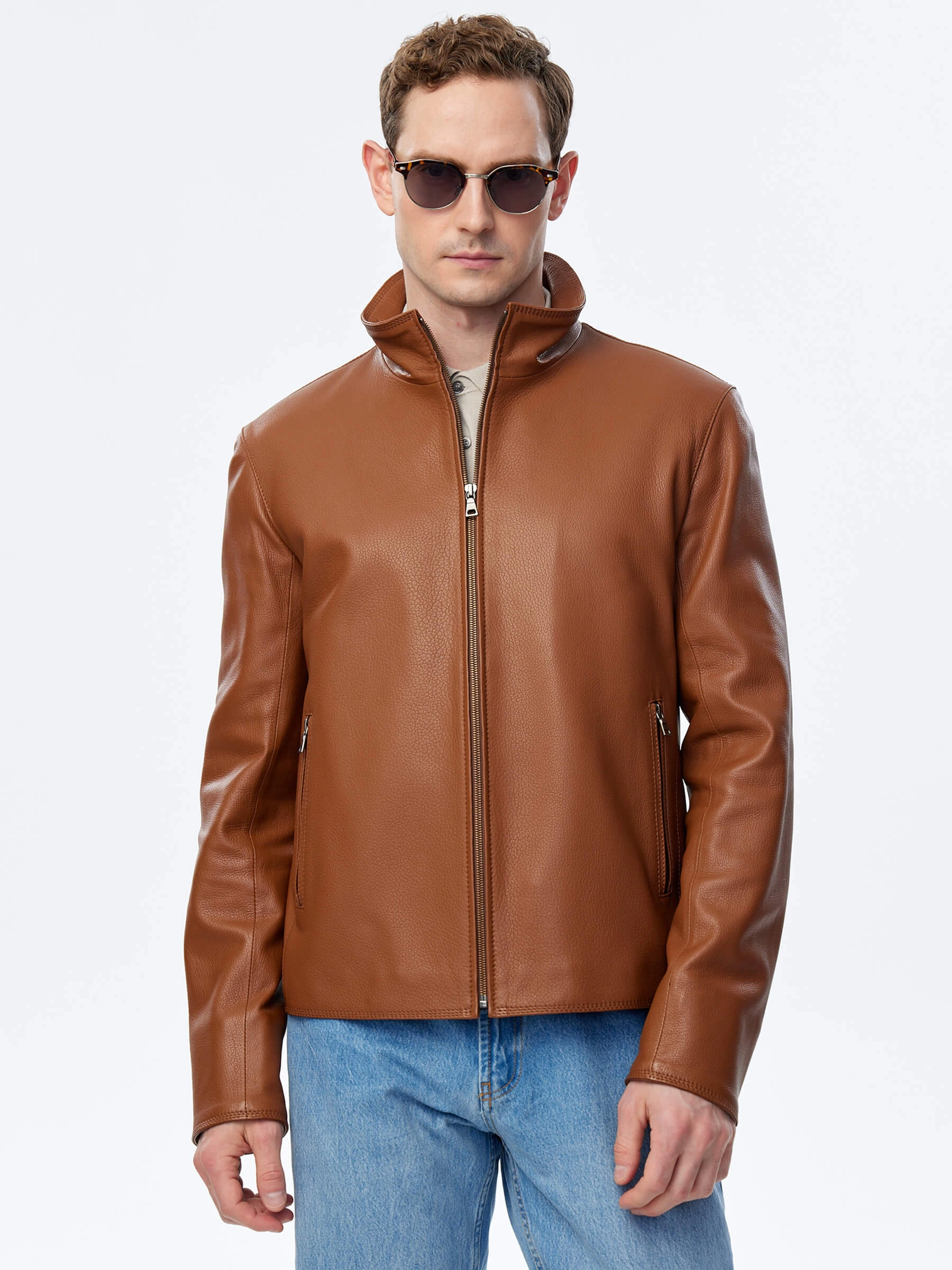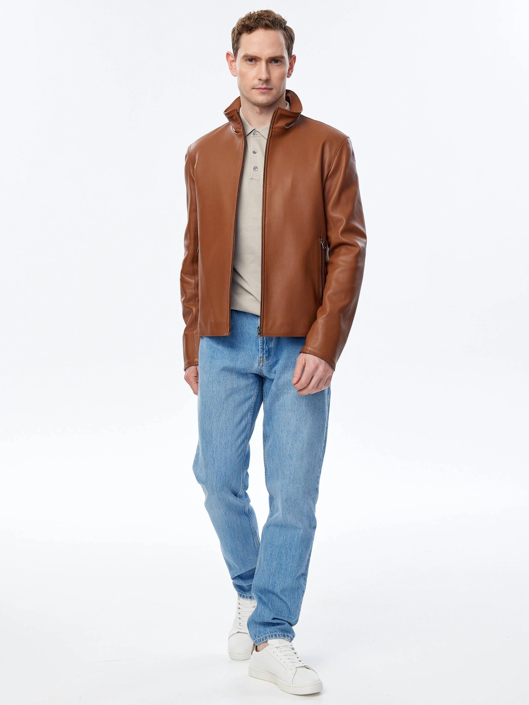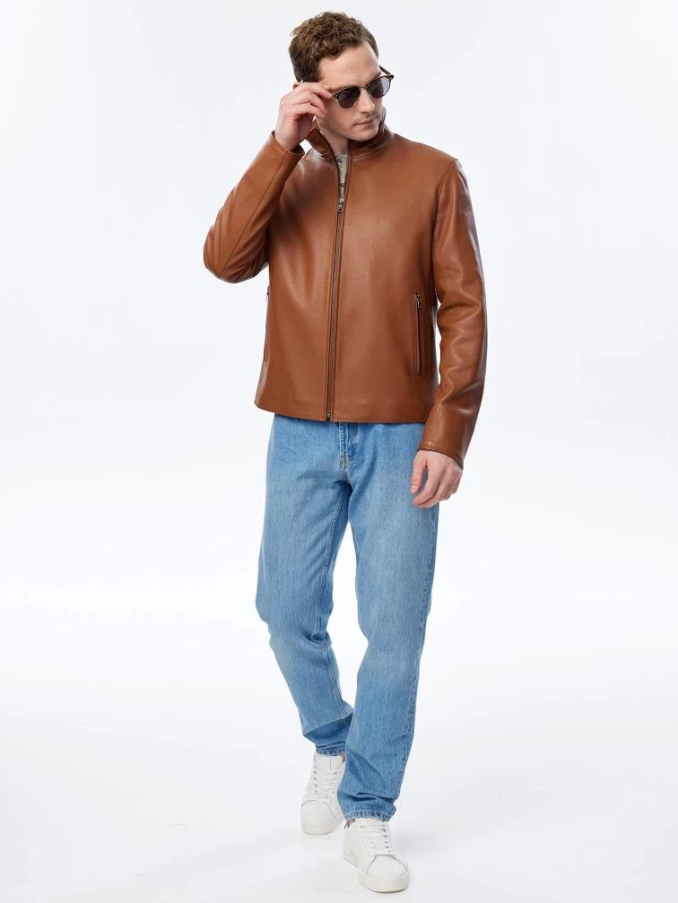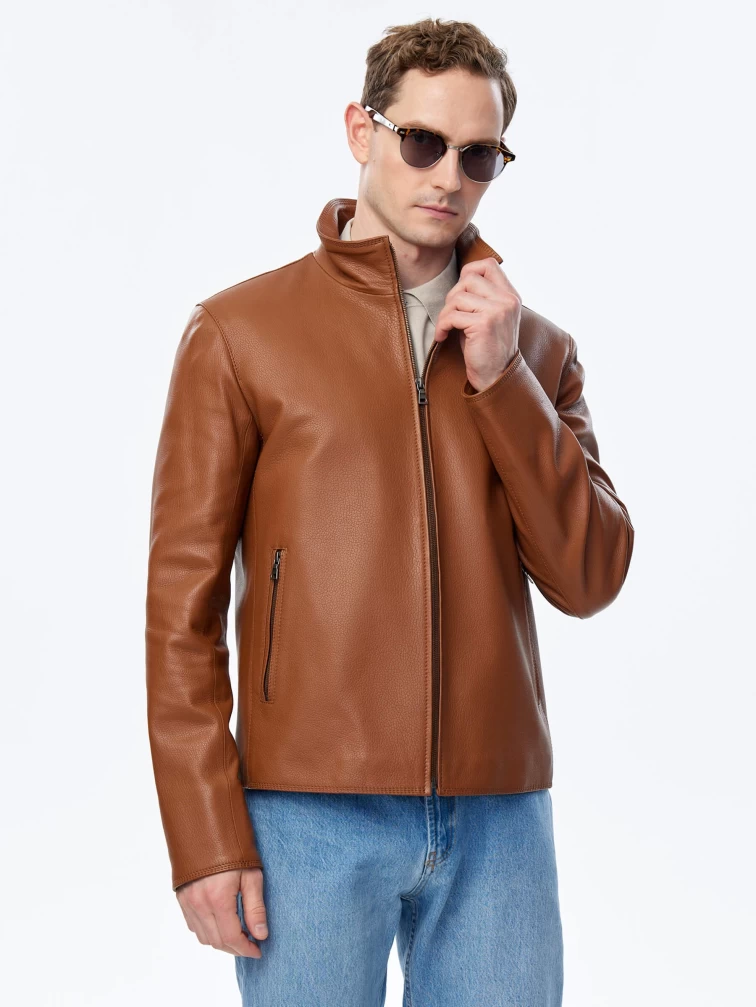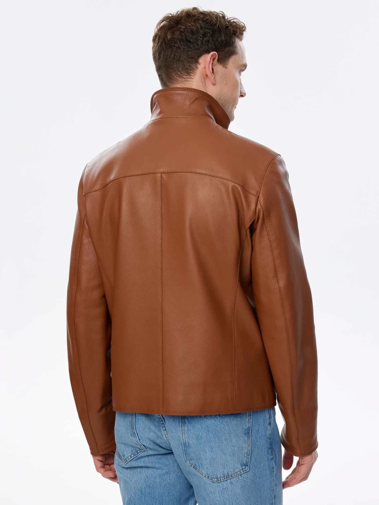Товар короткая кожаная куртка премиум класса для мужчин 2010-9, виски, размер 50, артикул 29710 выполнен из натуральной кожи с застежкой молния. Рассчитан на сезон: демисезон. Длина изделия 65 см, силуэт полуприлегающий.