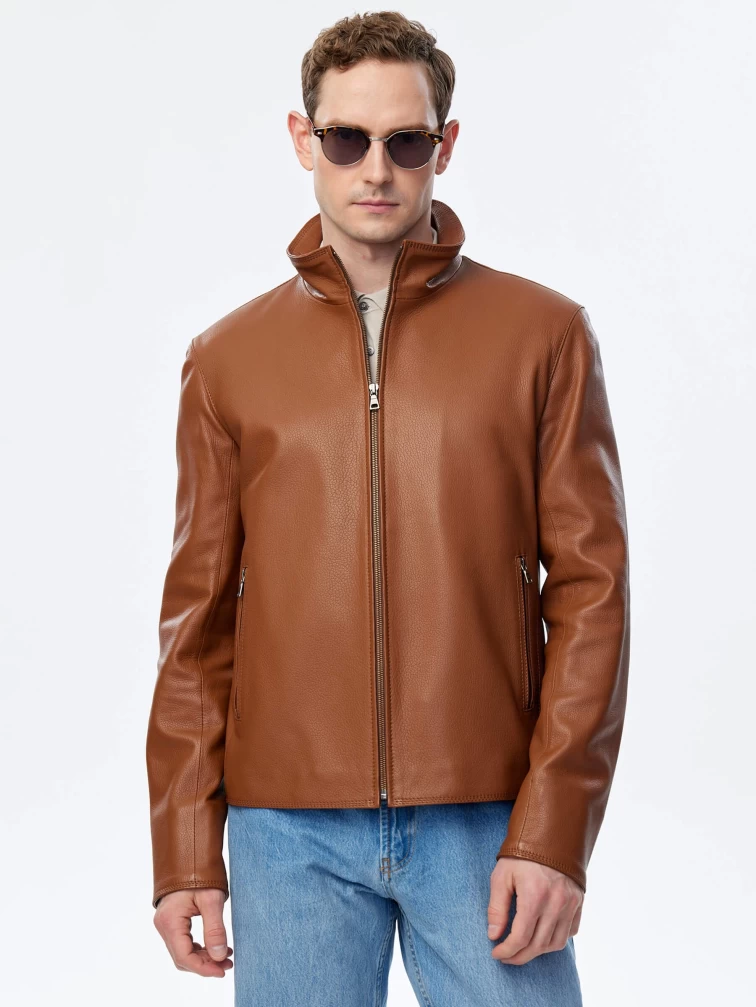 Короткая кожаная куртка премиум класса для мужчин 2010-9, виски, размер 50, артикул 29710