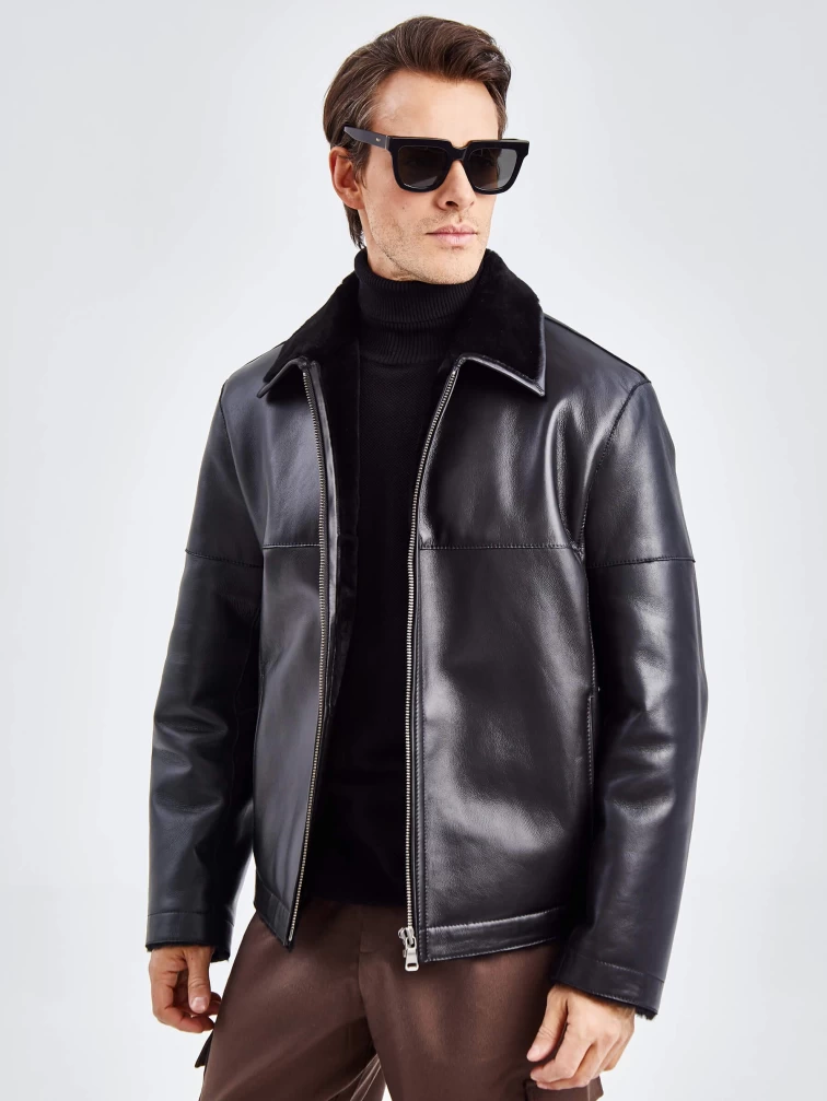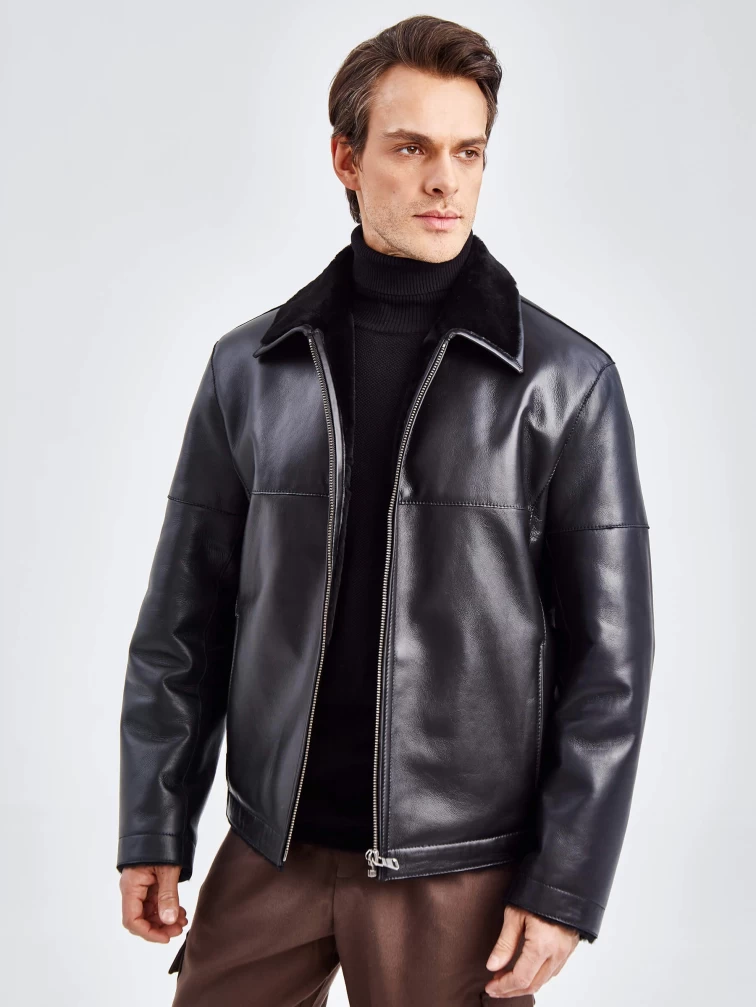 Товар короткая мужская дубленка премиум класса 140(пр), черная, размер 52, артикул 71420 выполнен из овчина "мерино" с застежкой молния. Рассчитан на сезон: осень-зима. Длина изделия 70 см, силуэт прямой.