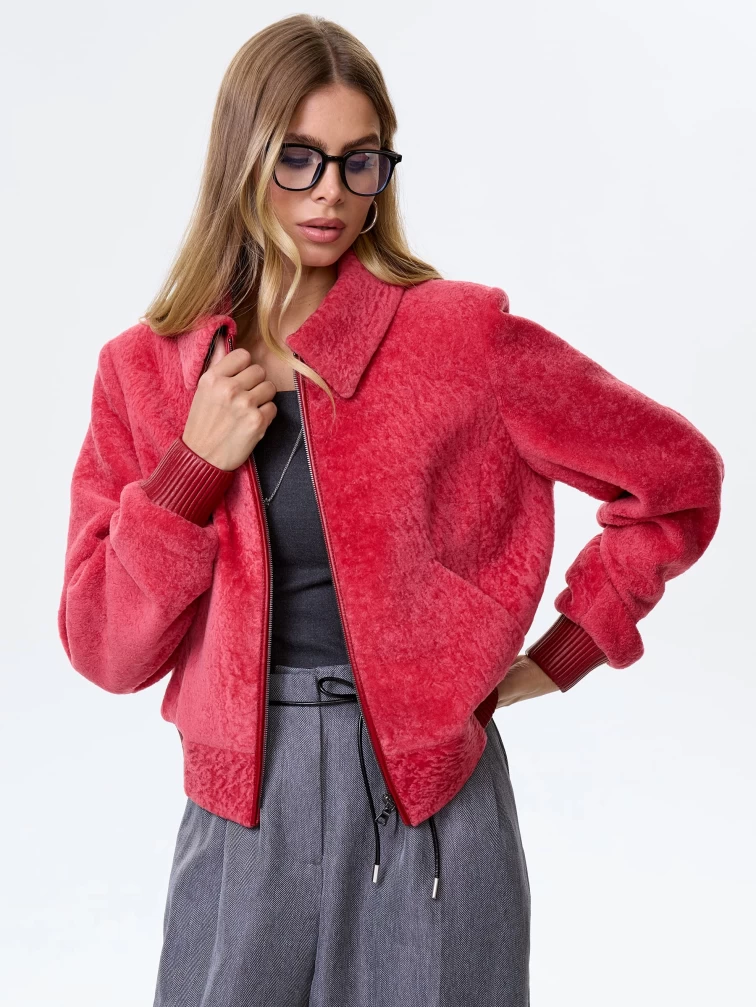 Товар короткая женская дубленка бомбер из астрагана 56мех, розовая, размер 46, артикул 64230 выполнен из астраган с застежкой молния. Рассчитан на сезон: осень-зима. Длина изделия 51 см, силуэт свободный.