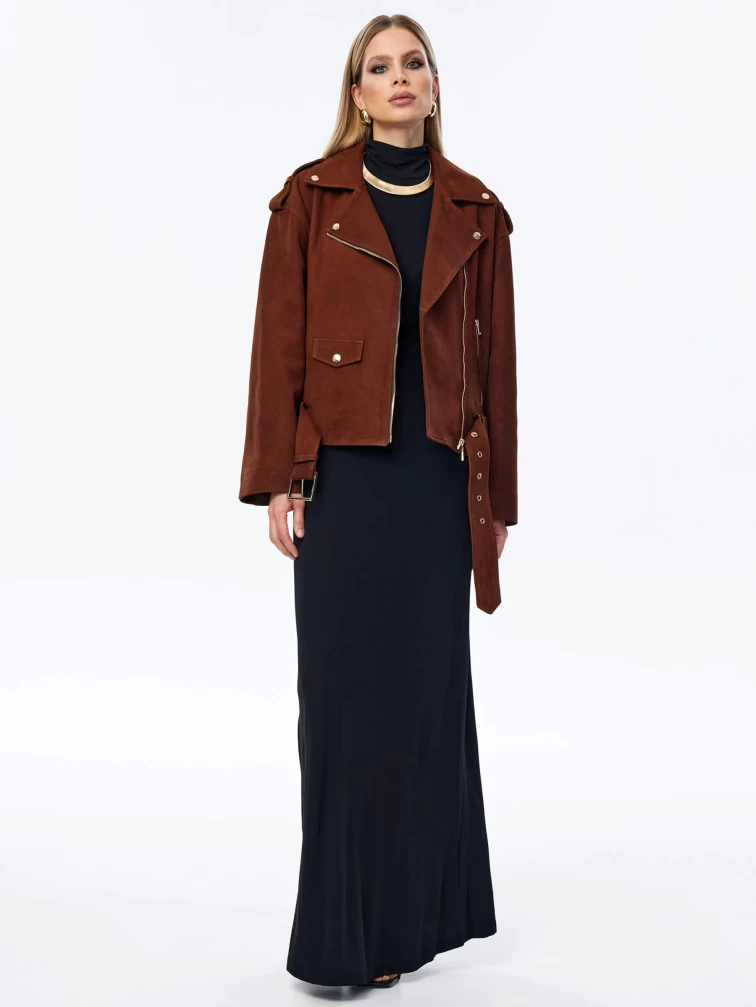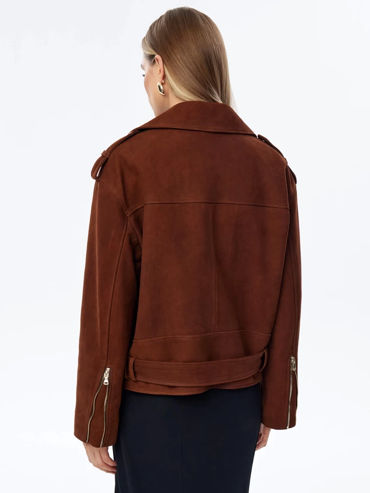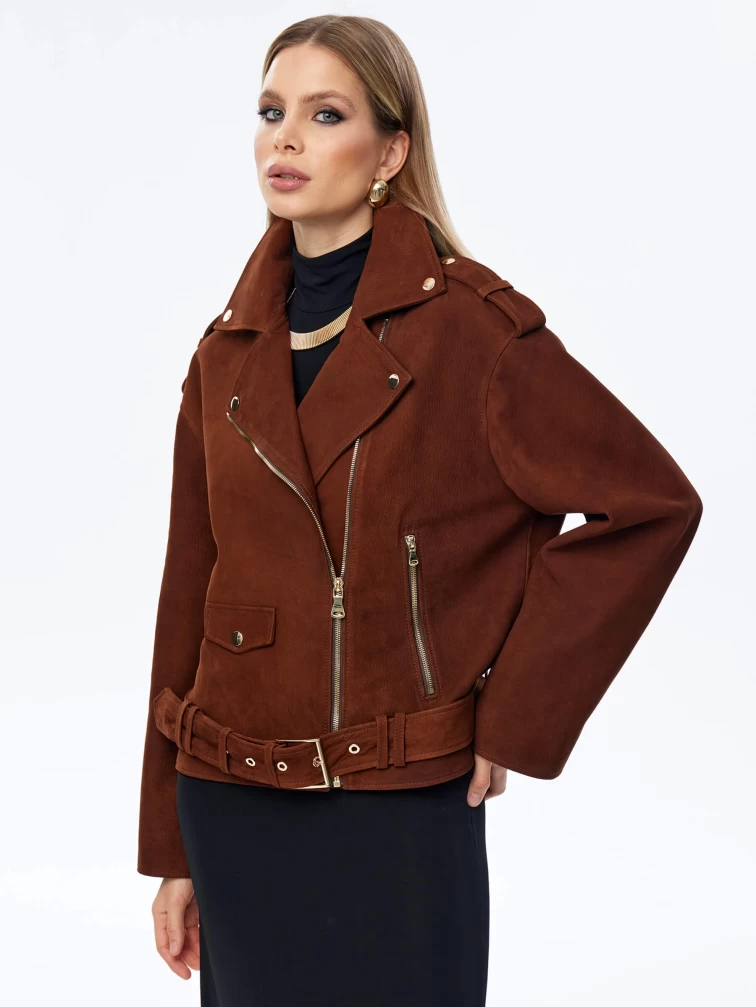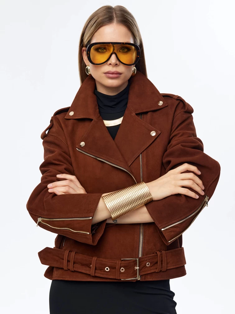 Короткая женская кожаная куртка косуха с поясом премиум класса 3052, виски, размер 46, артикул 23960