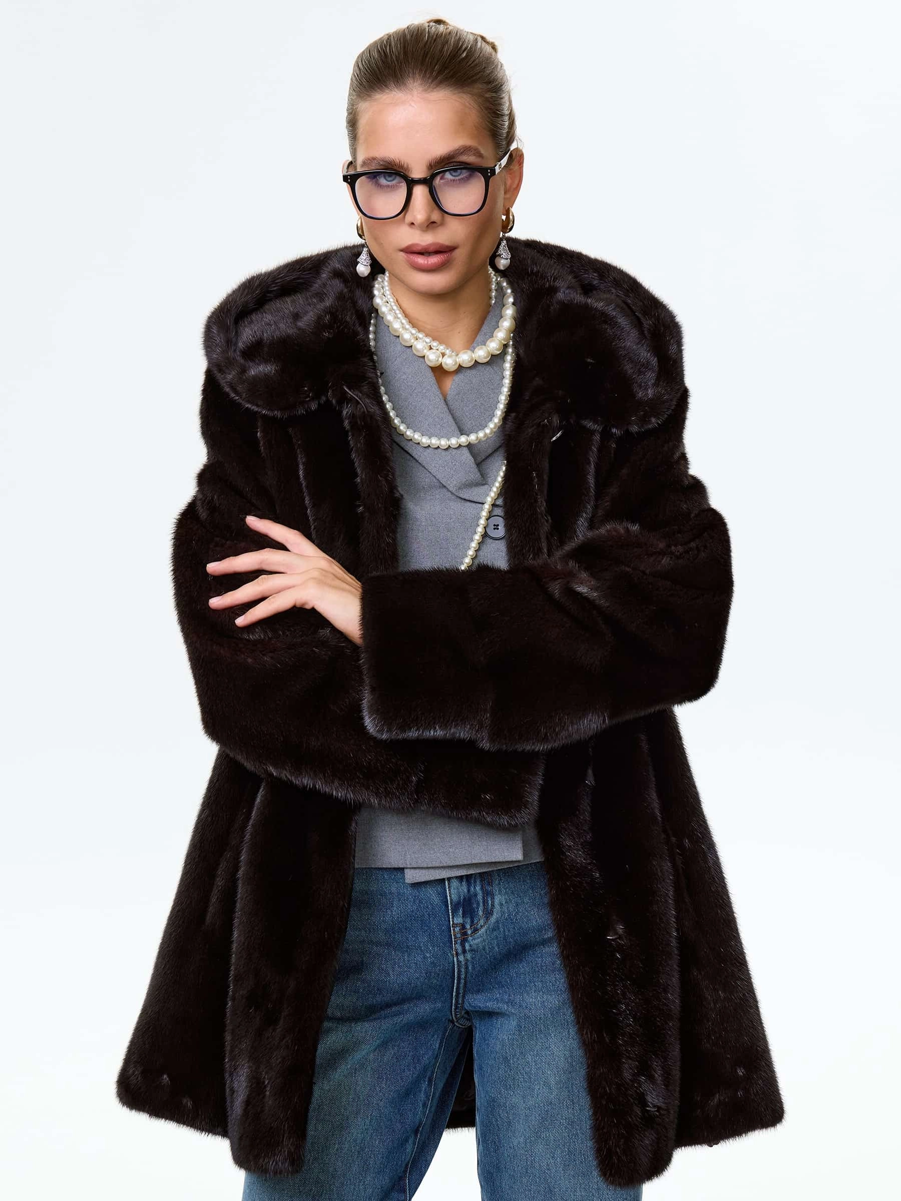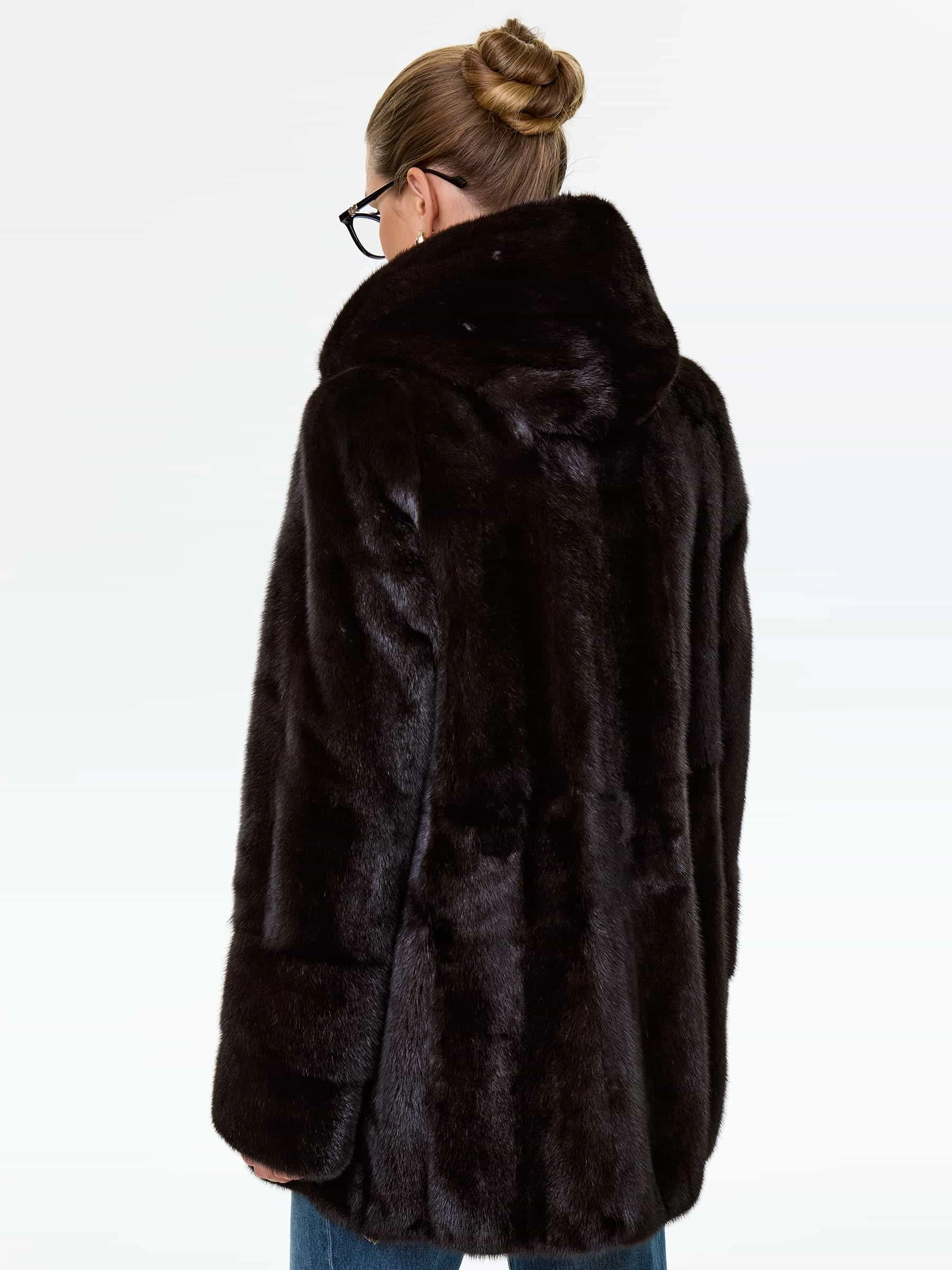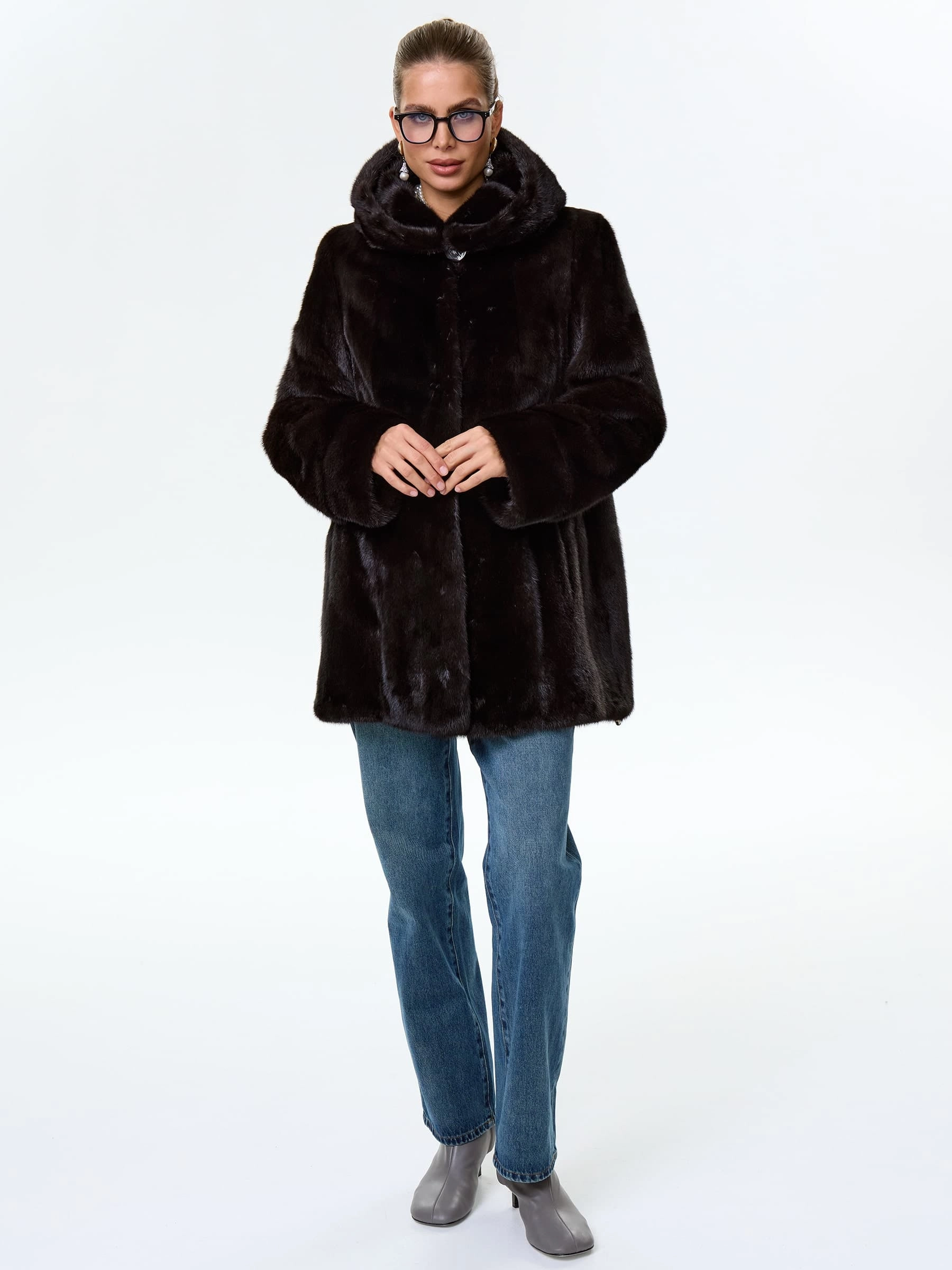Короткая женская норковая шуба автоледи с капюшоном Елена(к), черная, размер 52, артикул 64540