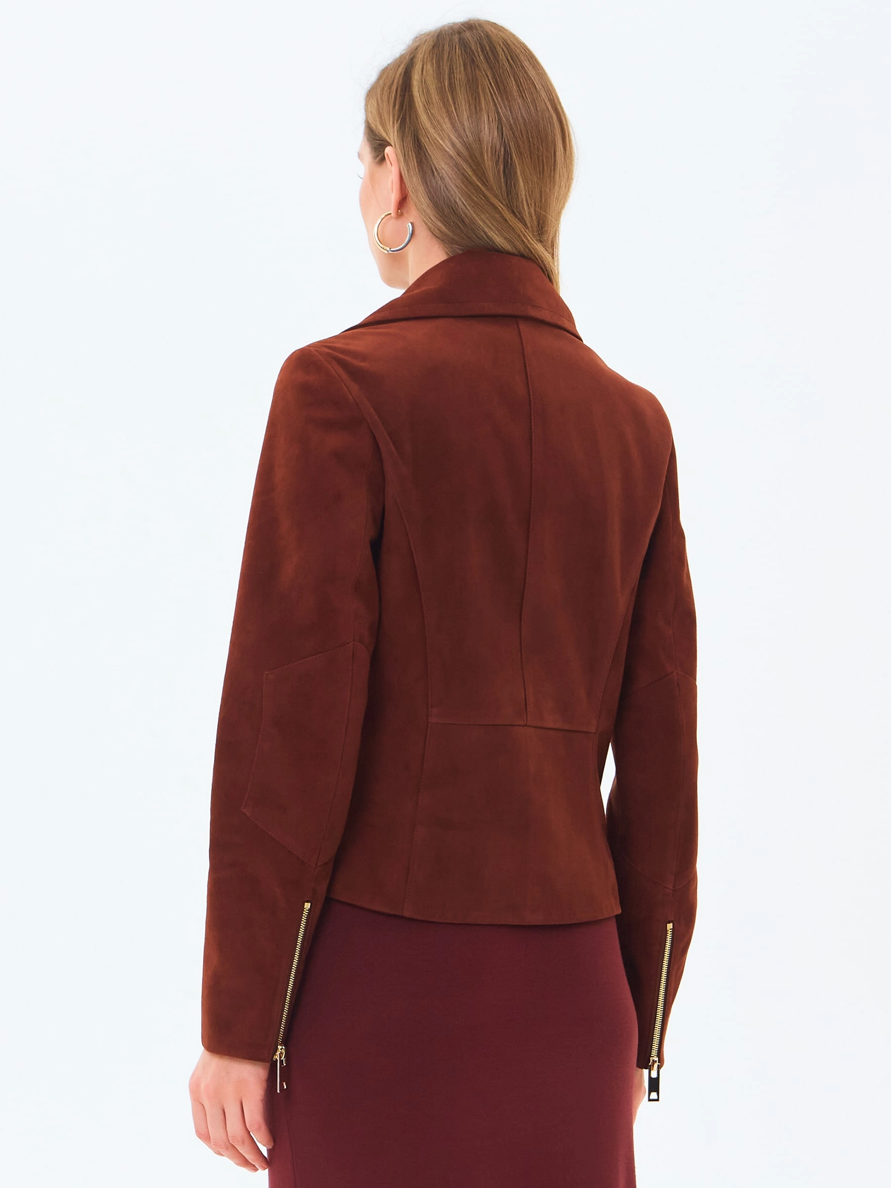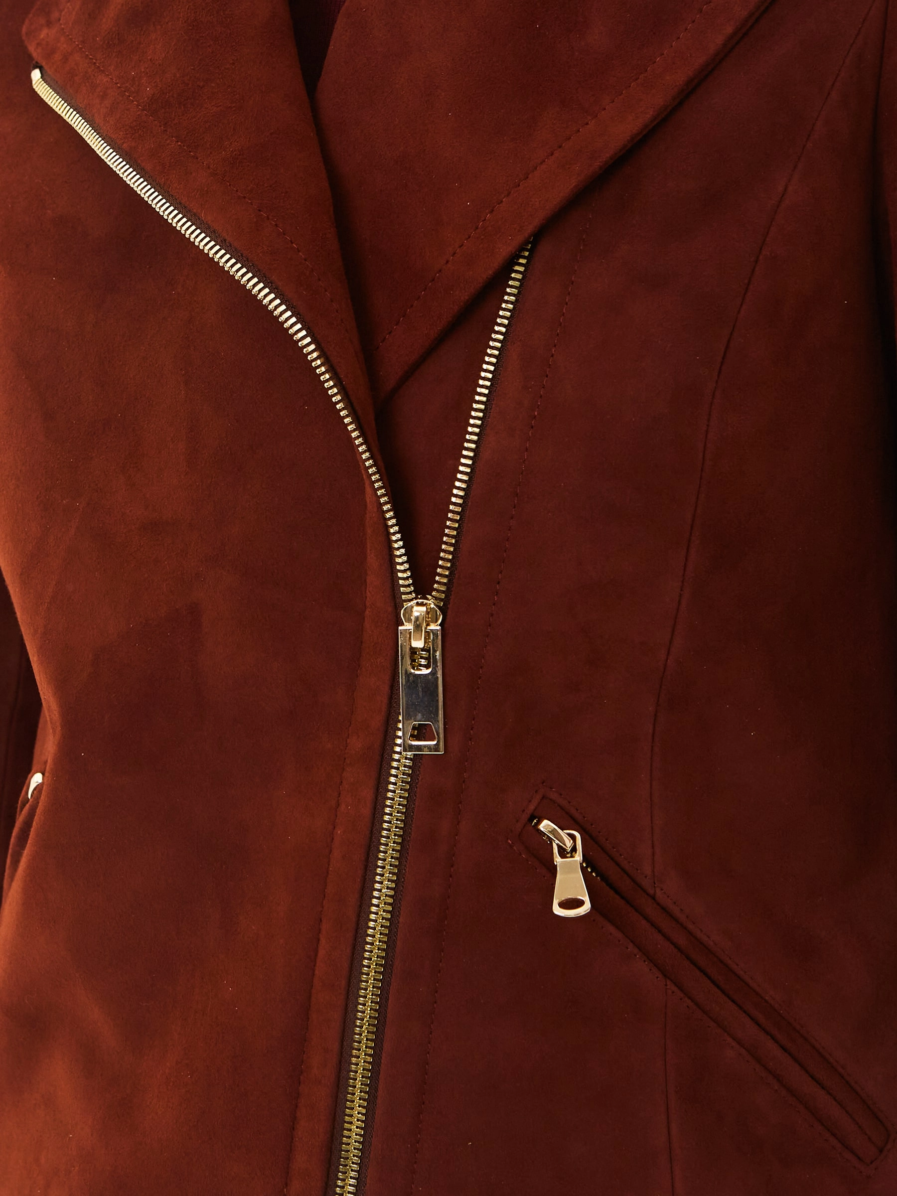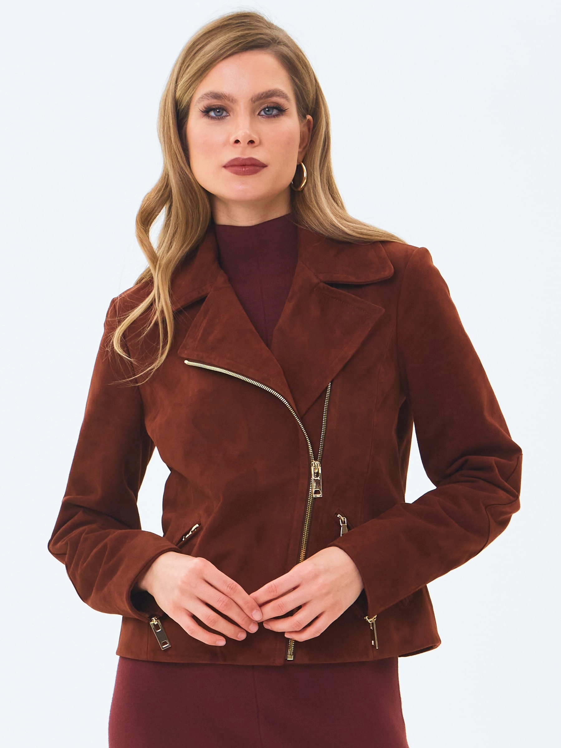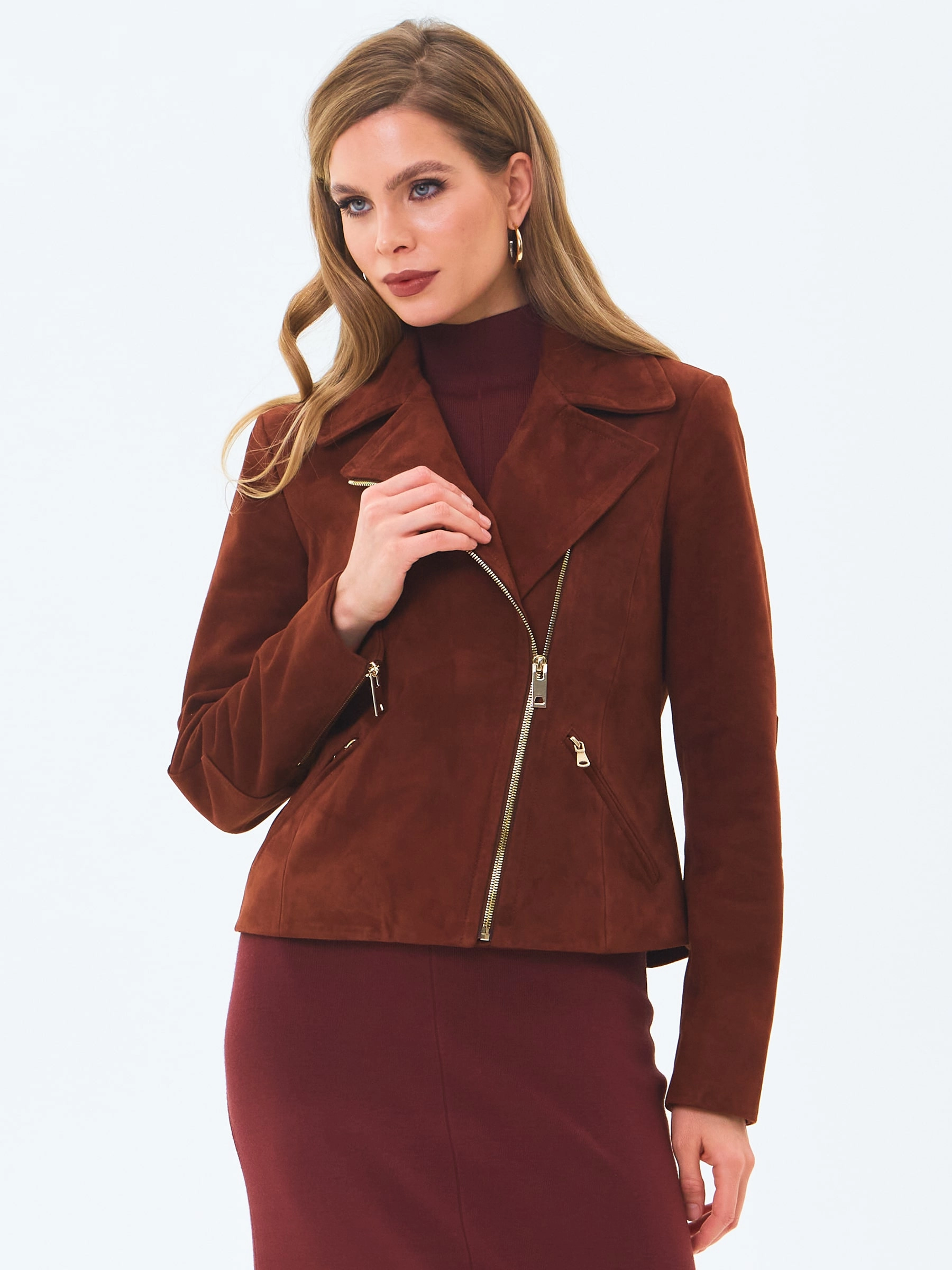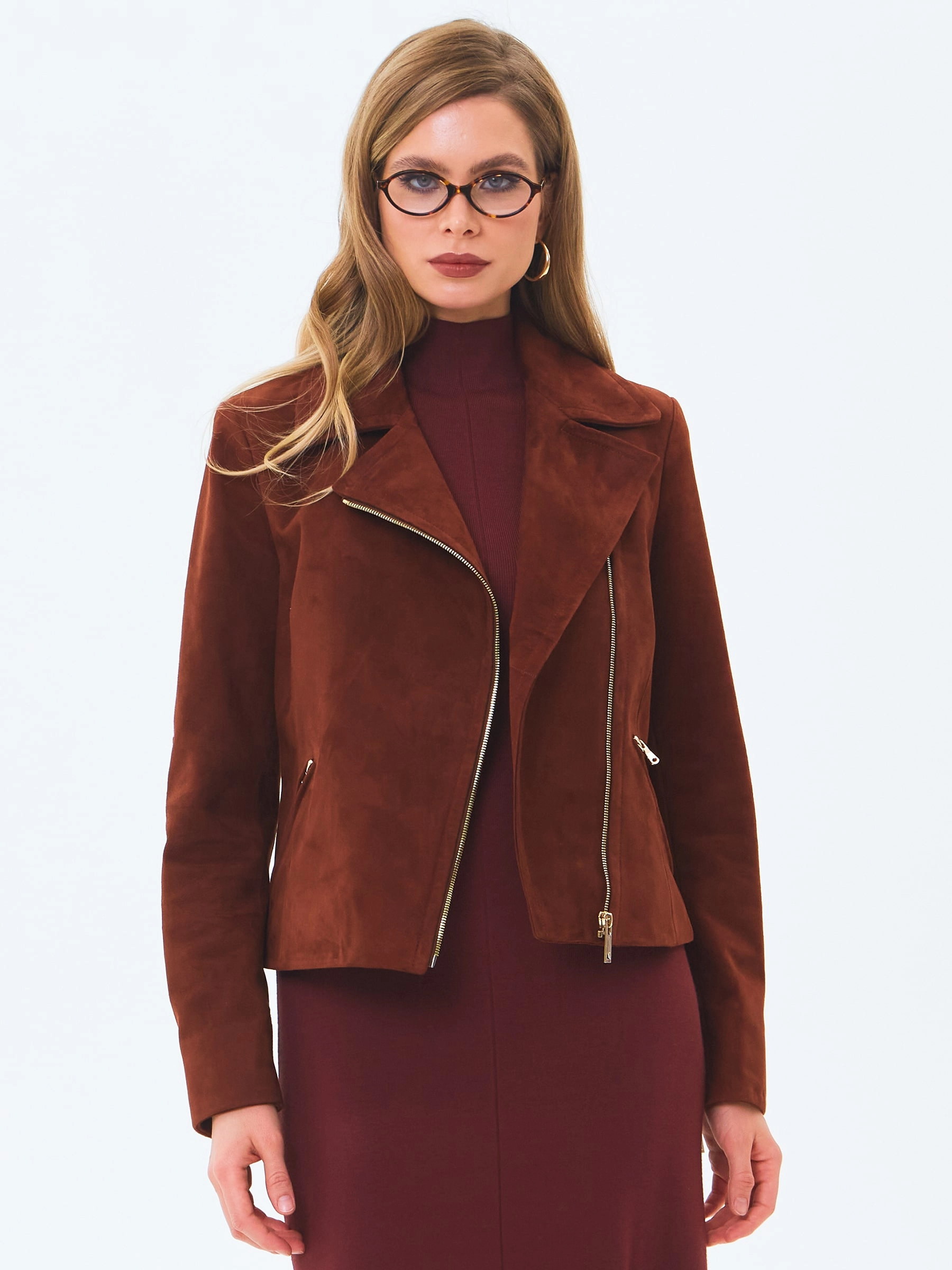 Короткая женская замшевая куртка косуха премиум класса 3095з, табачная, размер 46, артикул 24450