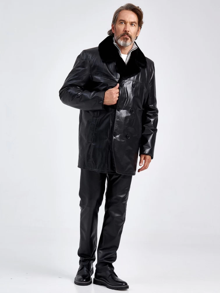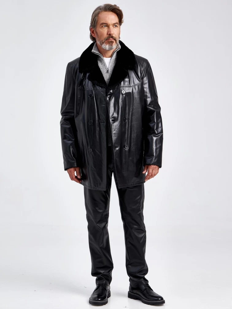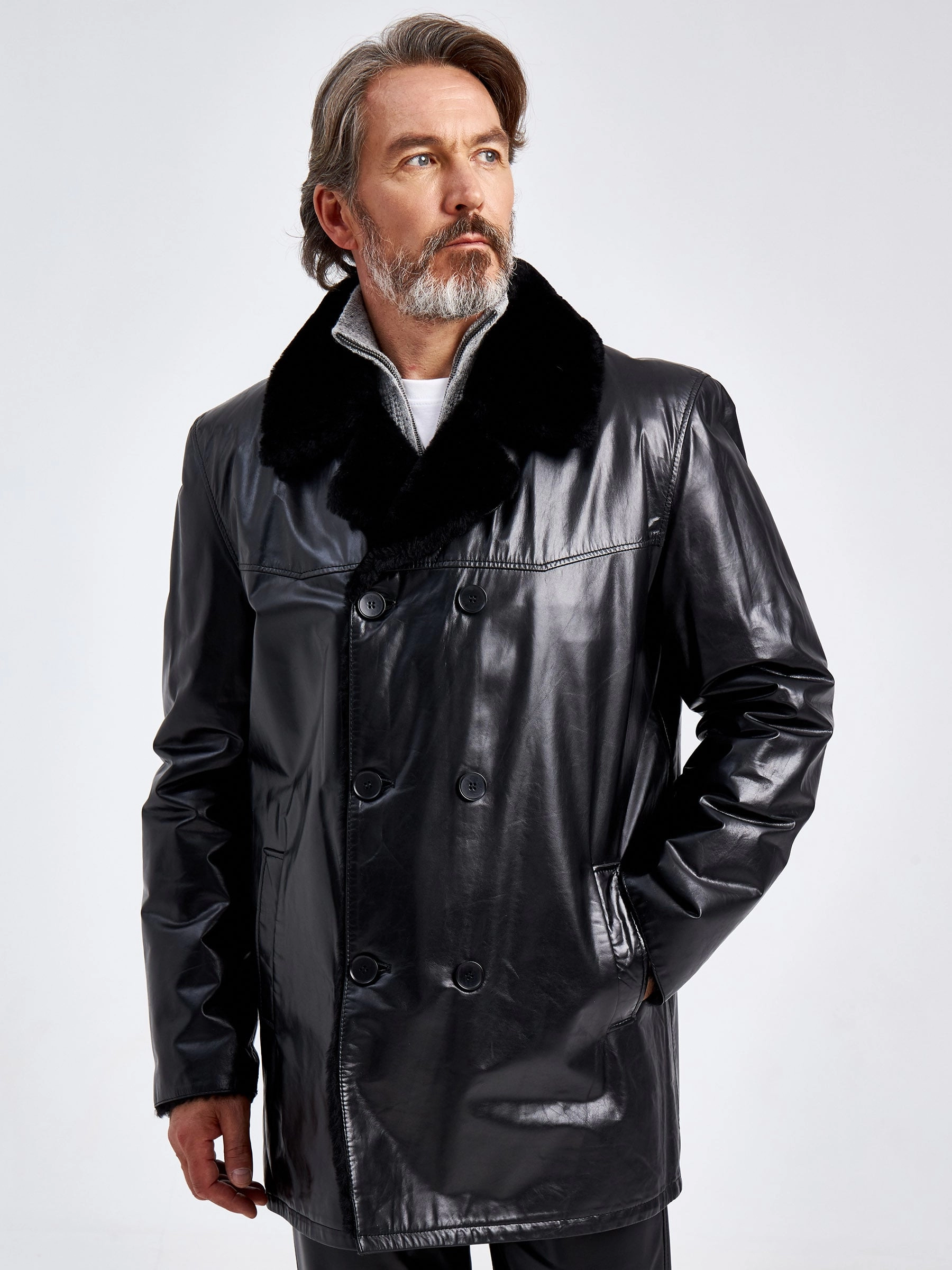 Двубортная классическая куртка с английским воротником. Для создания этой модели использовали мягкую кожу в тандеме с подкладкой из мягкой овчины, которая великолепно сохраняет тепло. Модель прекрасно сочетается как со свободной одеждой, так и со строгим деловым костюмом.