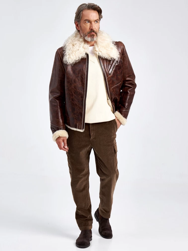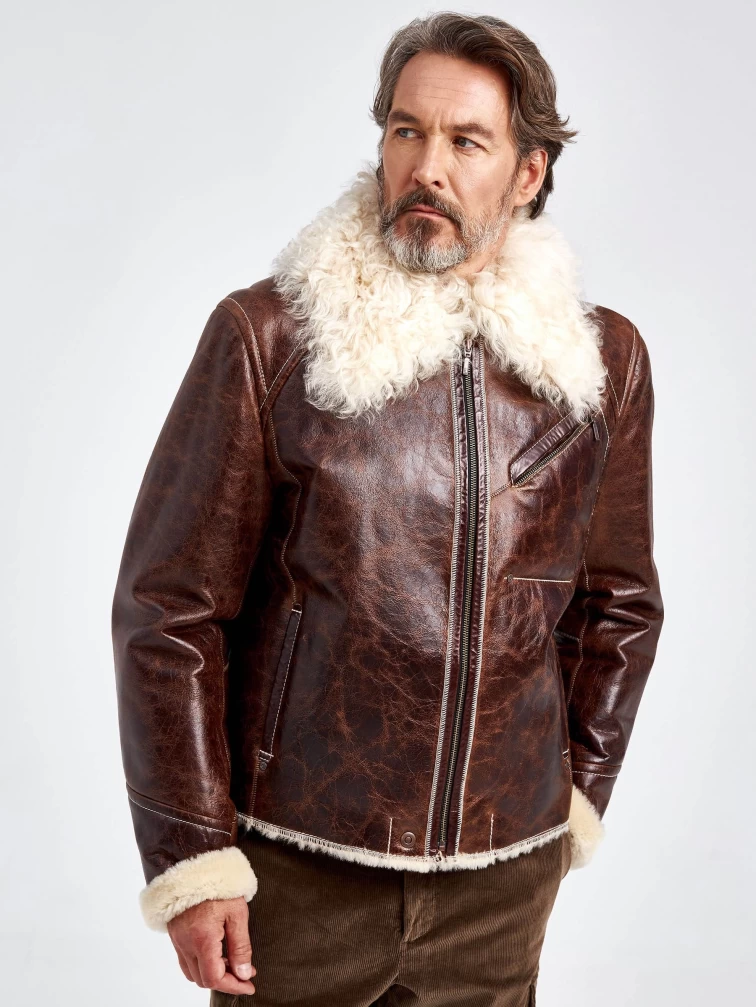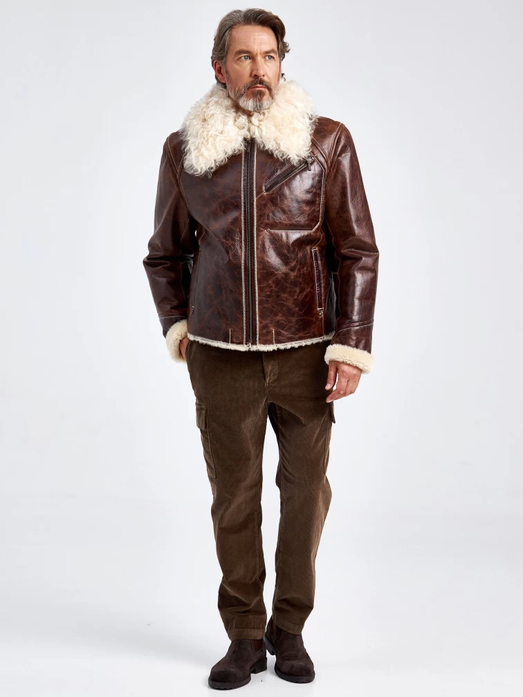 Товар мужская кожаная дубленка с мехом тиградо 161, коричневая, размер 52, артикул 70970 выполнен из овчина "мерино" с застежкой молния. Рассчитан на сезон: осень-зима. Длина изделия 65 см, силуэт прямой.