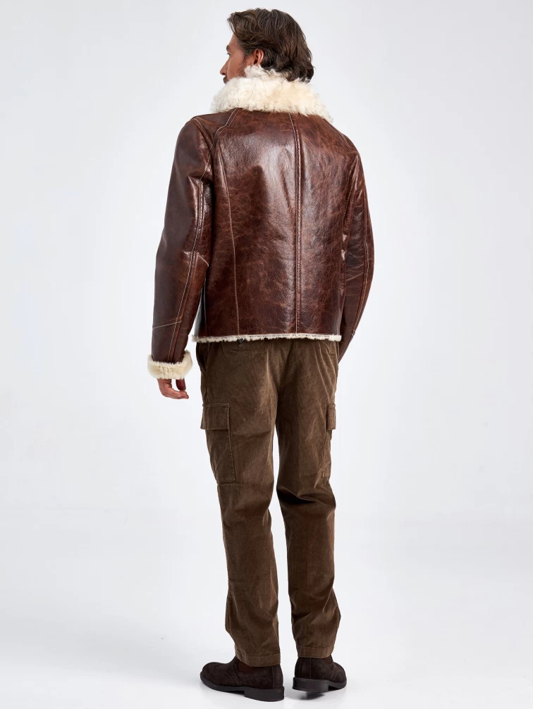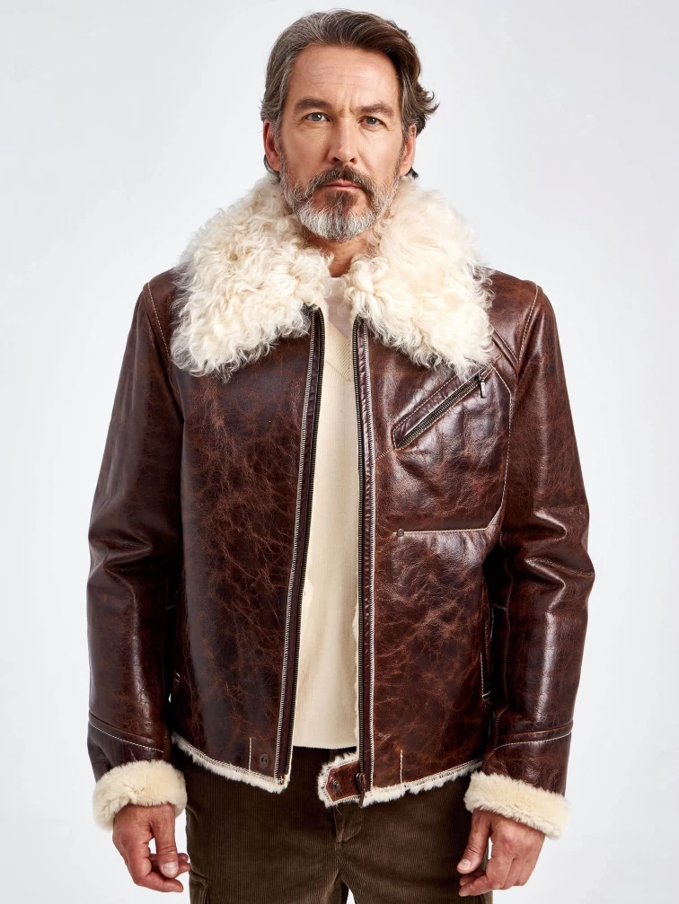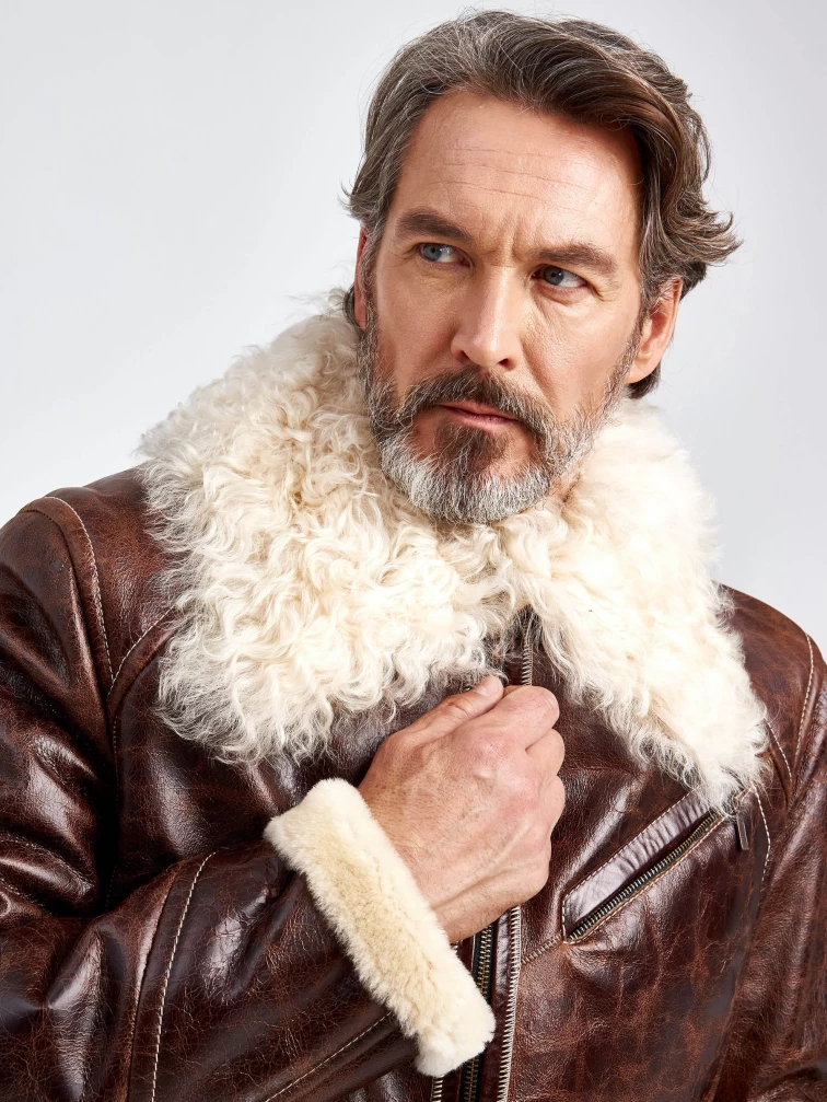 Мужская кожаная дубленка с мехом тиградо 161, коричневая, размер 52, артикул 70970