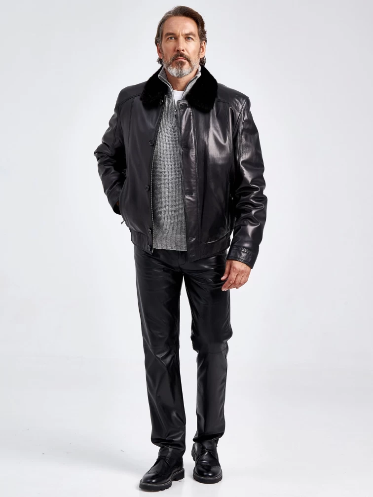 Товар кожаная дубленка с воротником меха норки для мужчин 4816, черная, размер 46, артикул 71020 выполнен из натуральной кожи с застежкой молния. Рассчитан на сезон: осень-зима. Длина изделия 68 см, силуэт свободный.