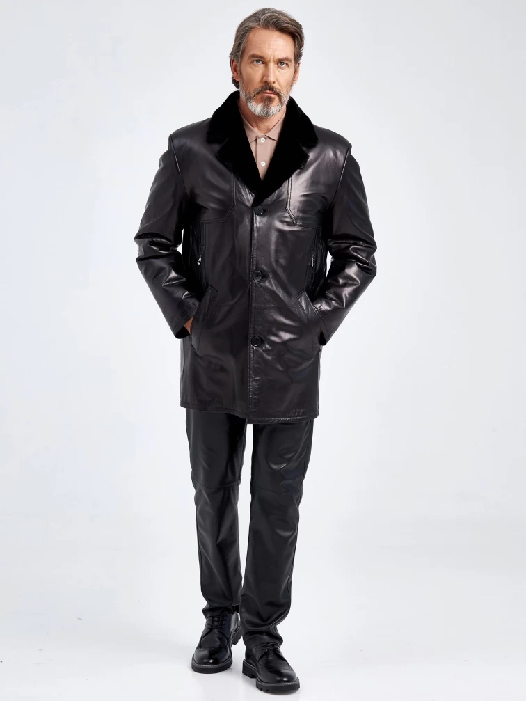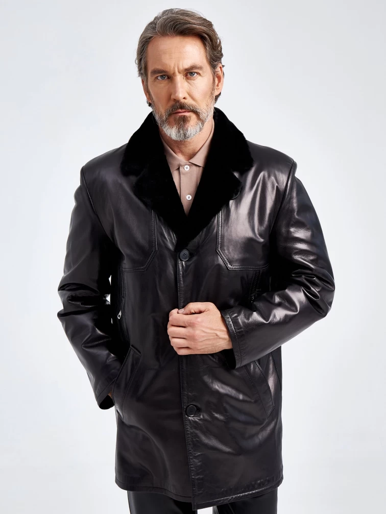 Кожаная классическая мужская дубленка 5704, черная, размер 48, артикул 71080