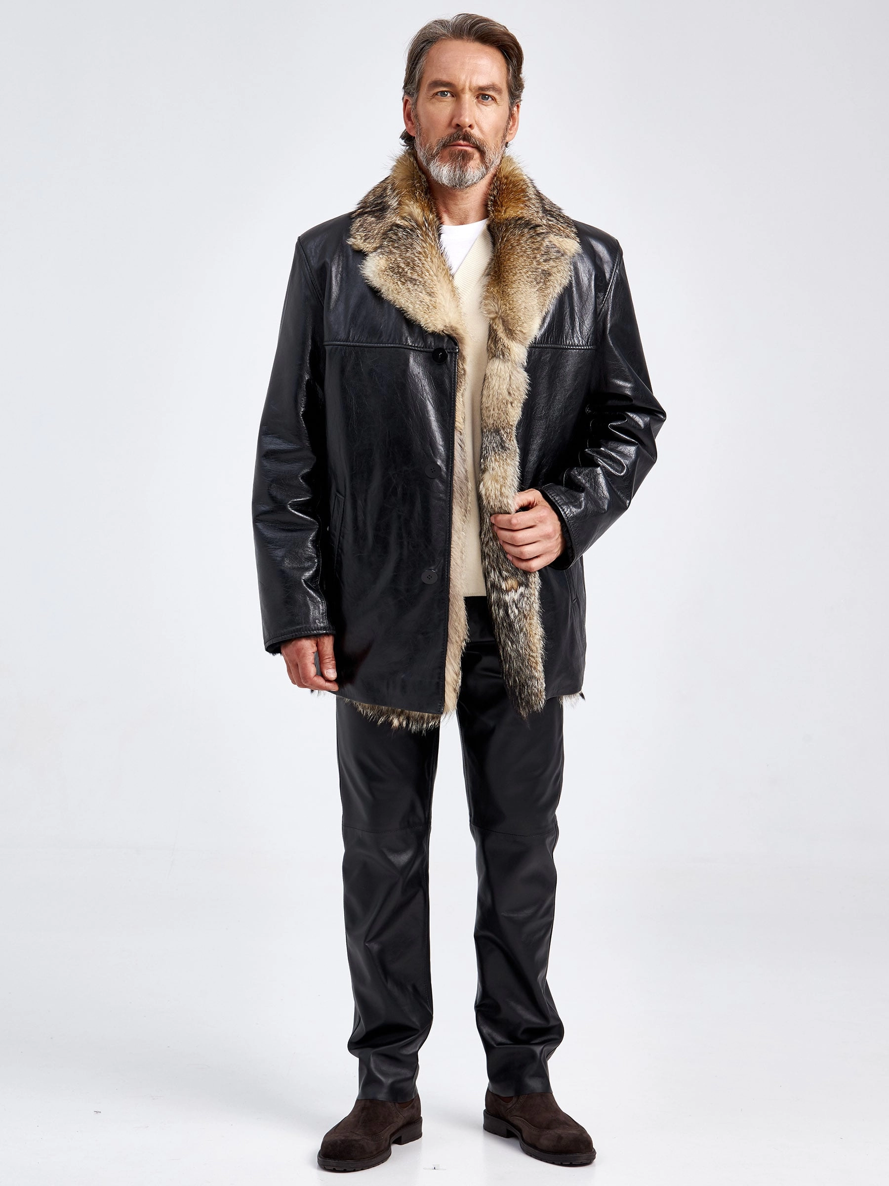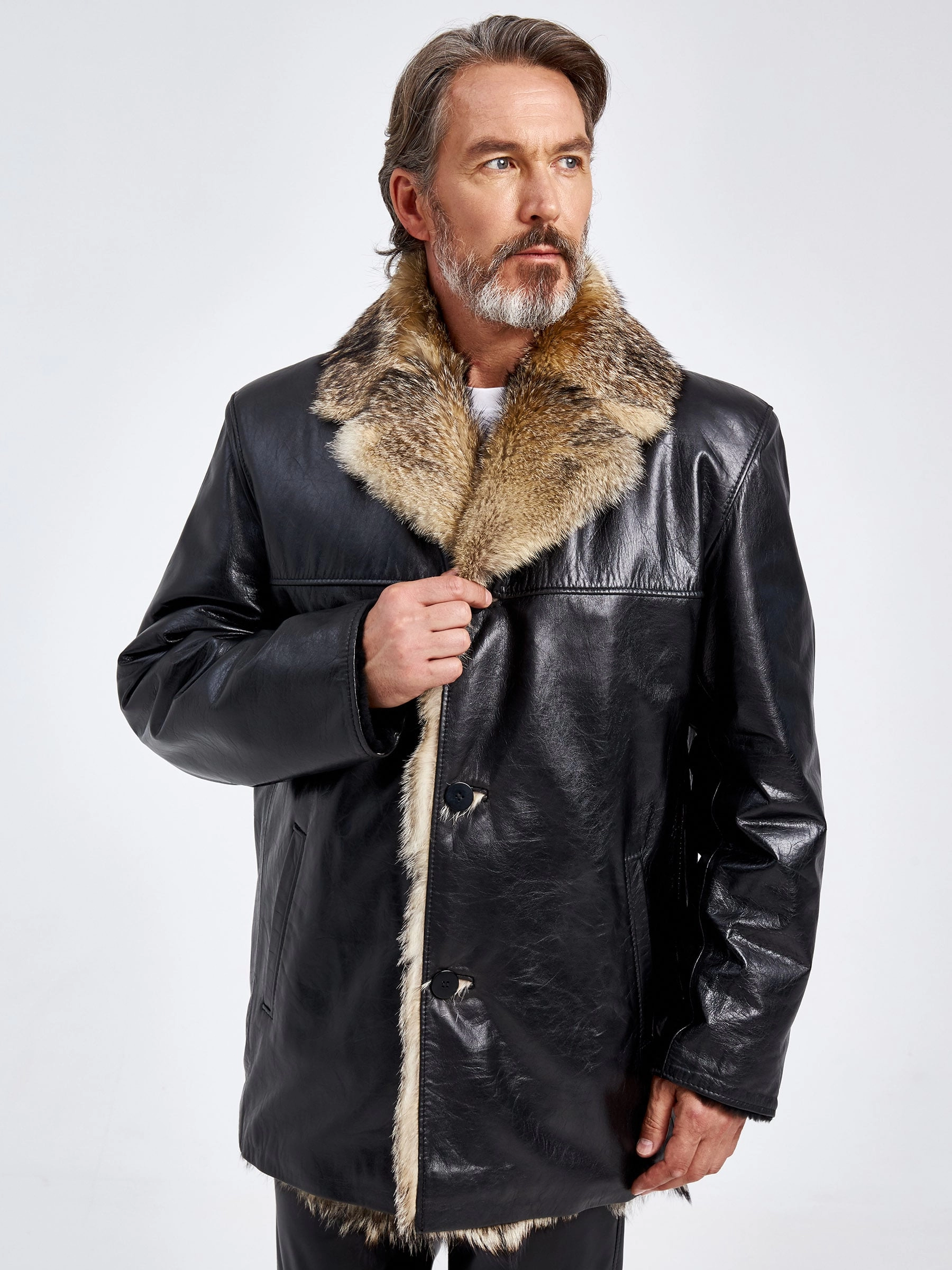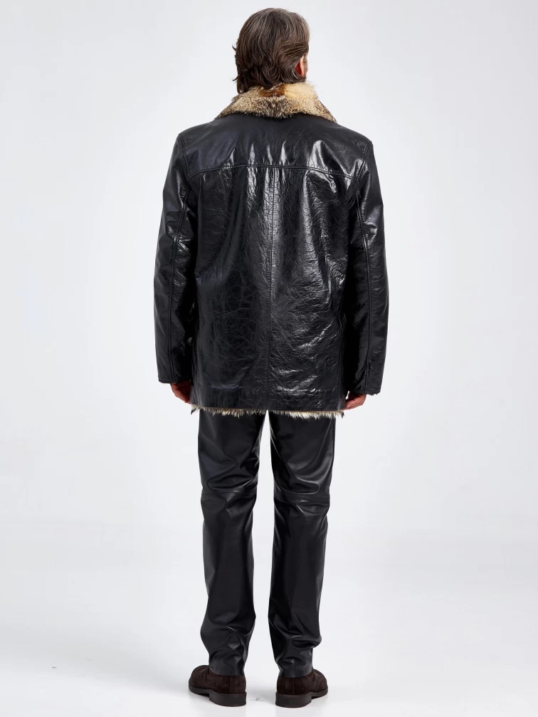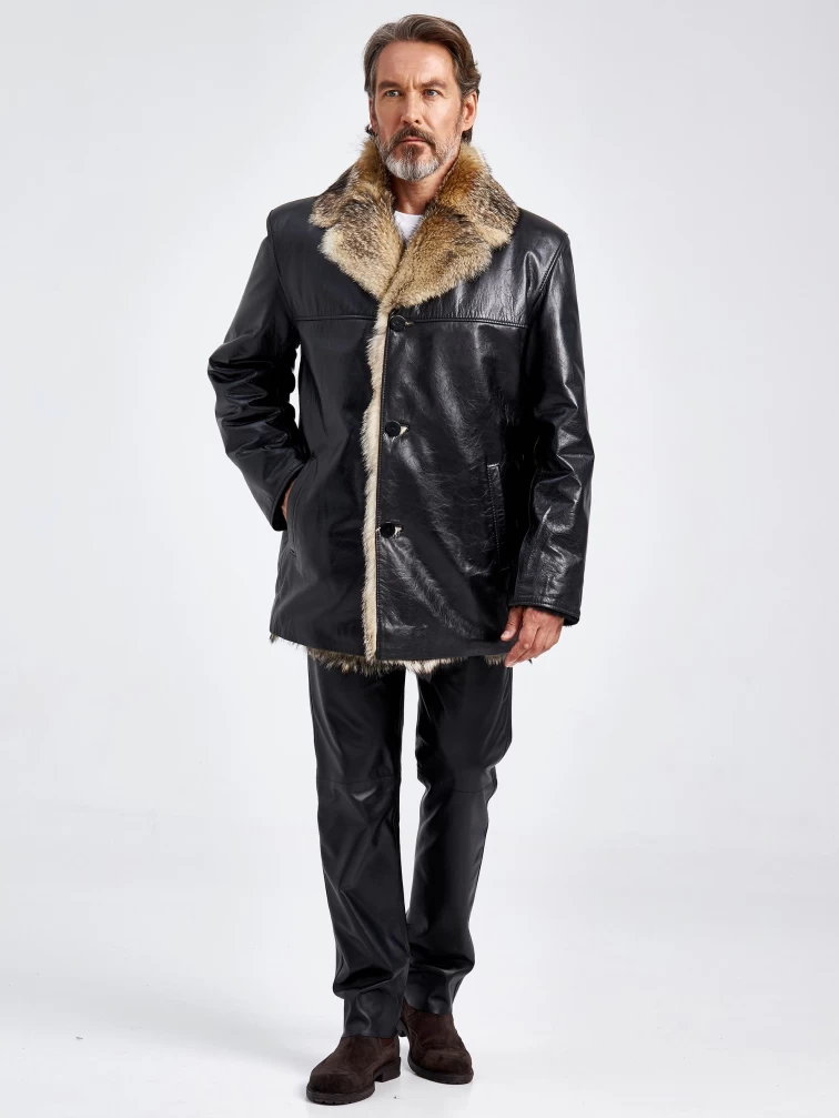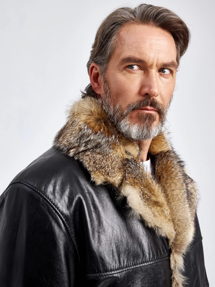 Кожаная дубленка на подкладке из меха лисицы премиум класса для мужчин Делон 1, черная, размер 52, артикул 70880