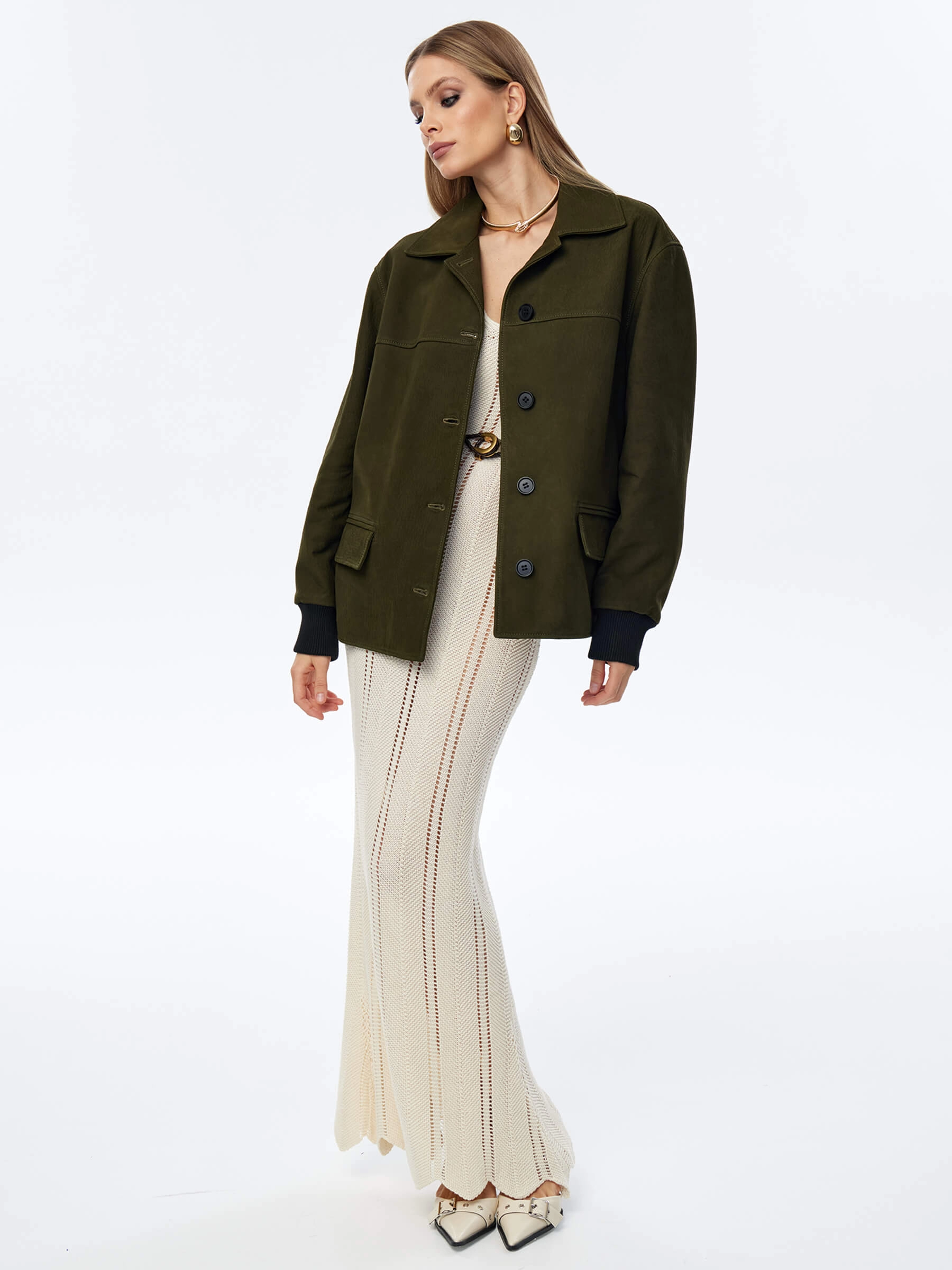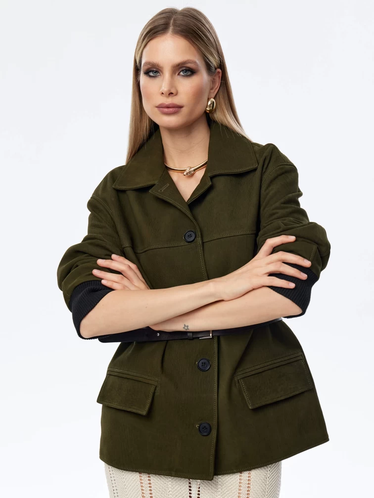 Товар кожаная куртка бомбер для женщин премиум класса 3065, хаки, размер 48, артикул 24060 выполнен из натуральной кожи с застежкой пуговицы. Рассчитан на сезон: весна-лето. Длина изделия 70 см, силуэт прямой.