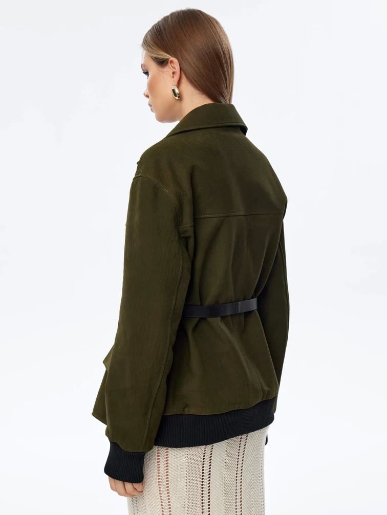 Кожаная куртка бомбер для женщин премиум класса 3065, хаки, размер 48, артикул 24060