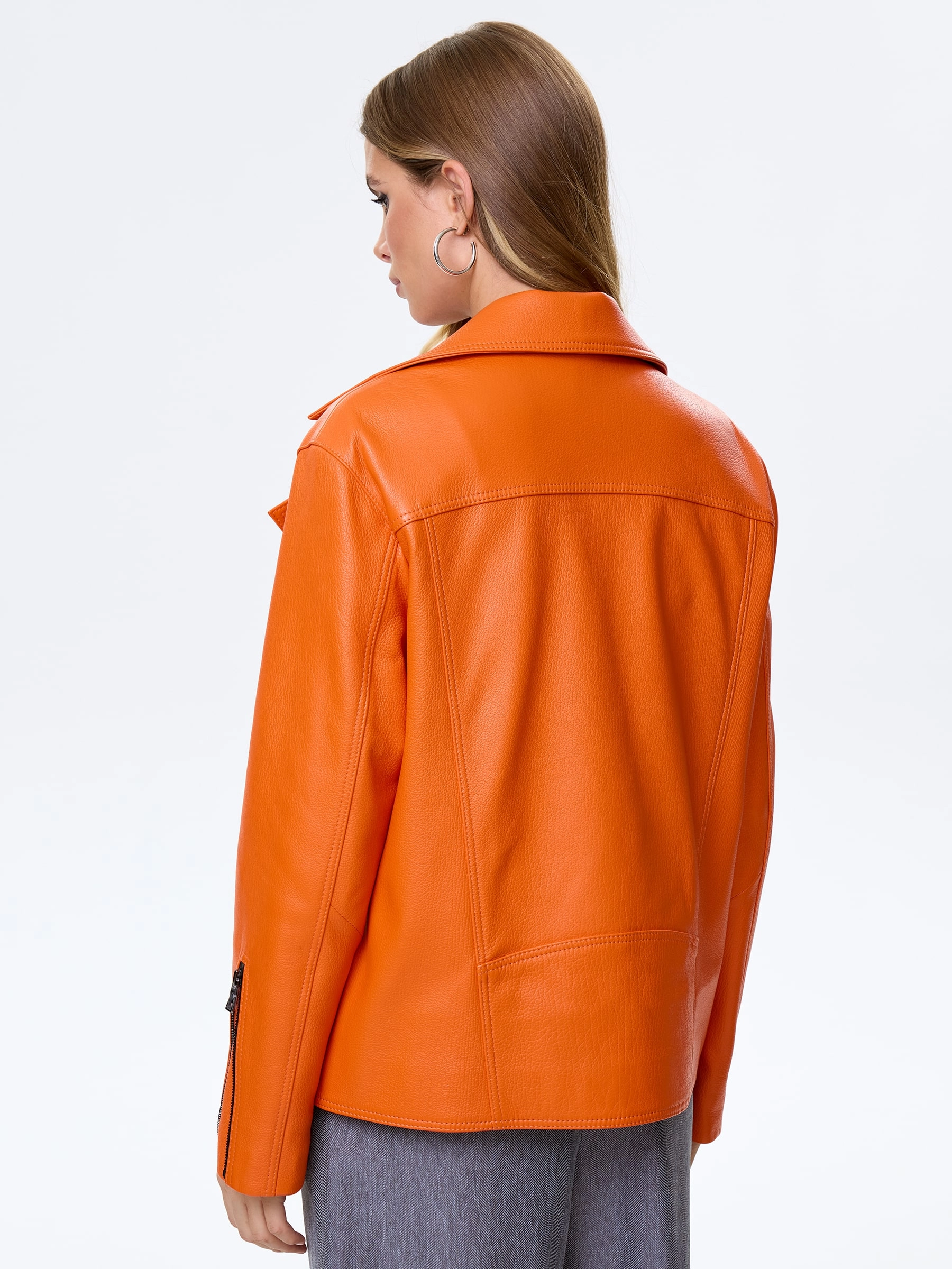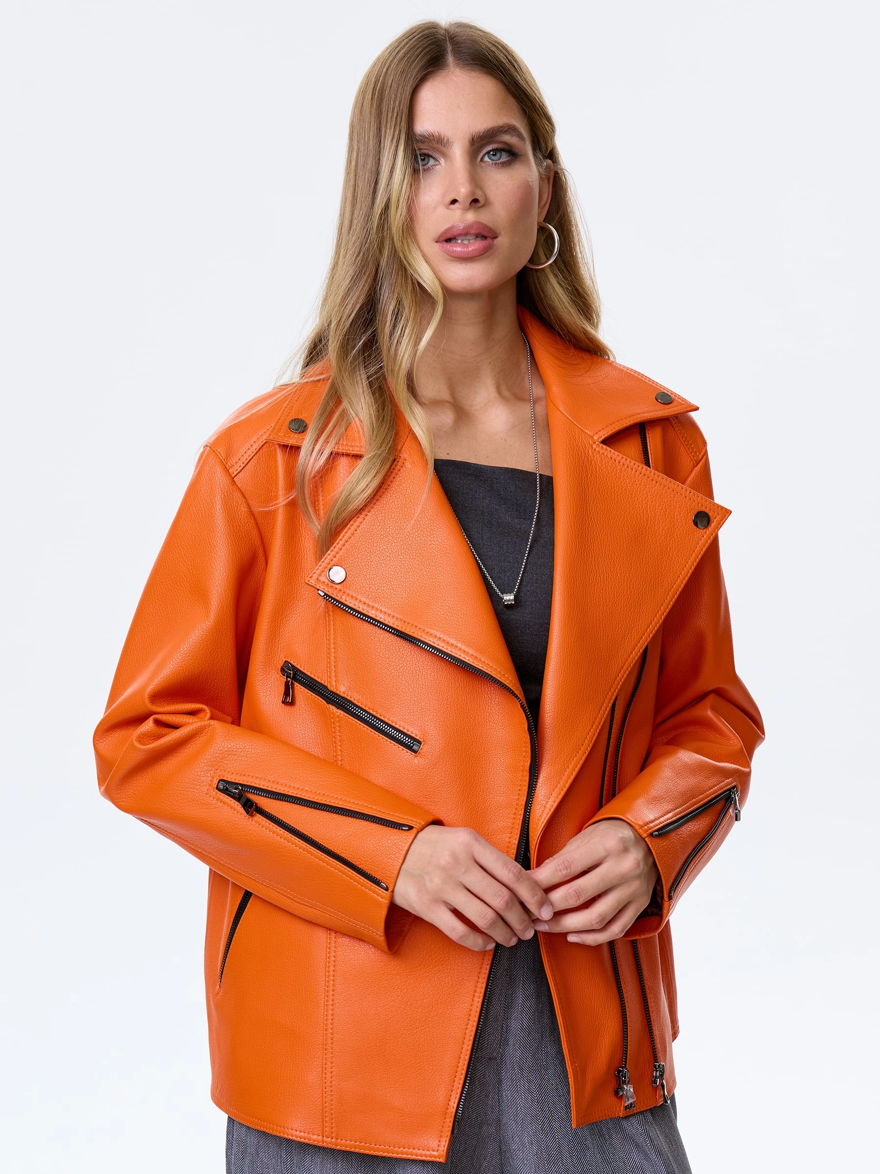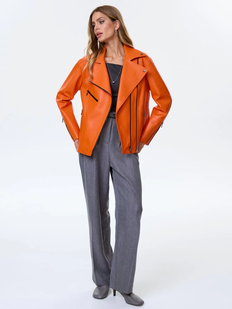 Товар кожаная куртка косуха премиум класса для женщин 3047, оранжевая, размер 52, артикул 24290 выполнен из натуральной кожи с застежкой молния. Рассчитан на сезон: весна-осень. Длина изделия 65 см, силуэт свободный.