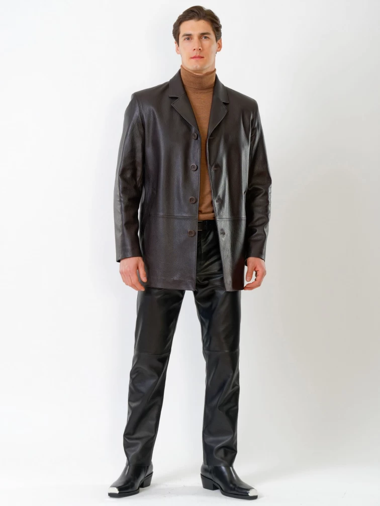 Мужская кожаная куртка на пуговицах 21/1, коричневая, размер 50, артикул 29620
