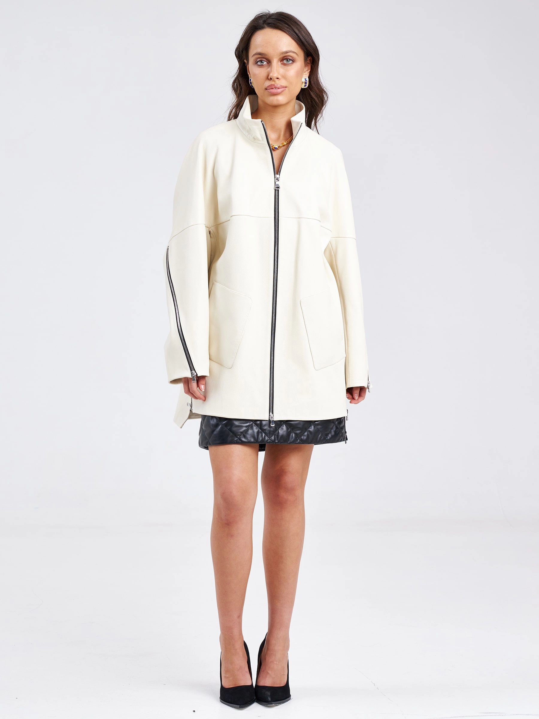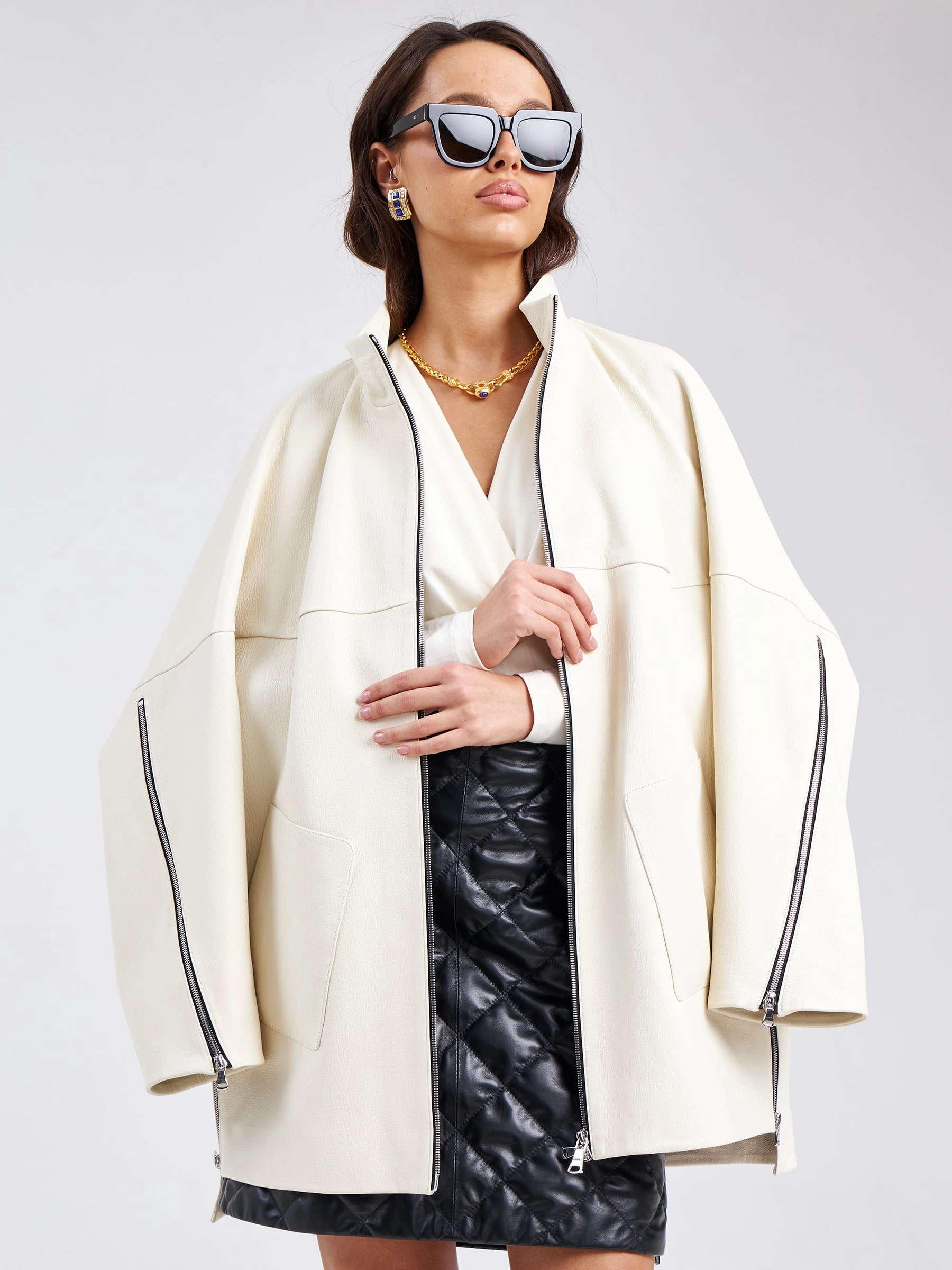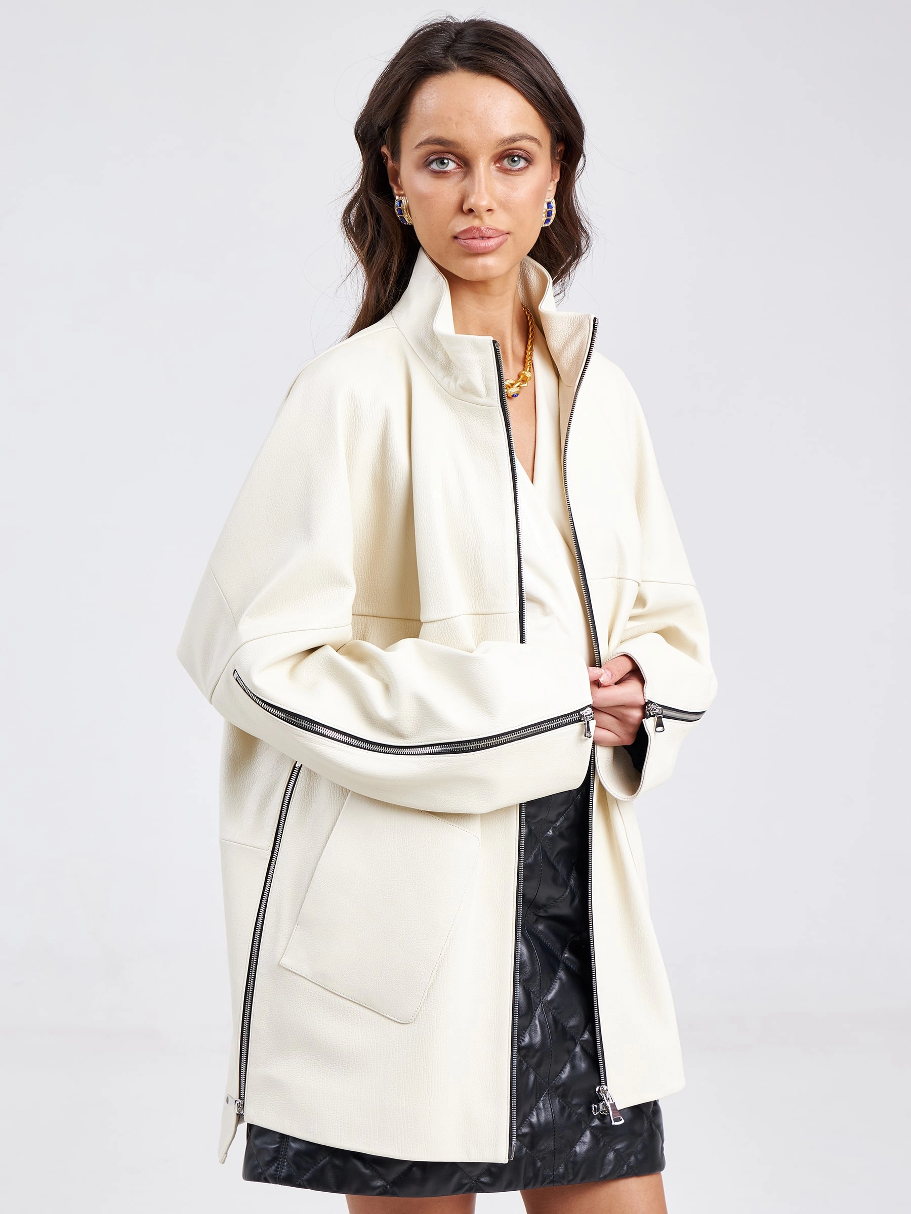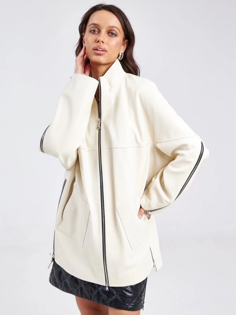 Товар кожаная женская куртка оверсайз премиум класса 3038, белая, размер 50, артикул 23150 выполнен из натуральной кожи с застежкой молния. Рассчитан на сезон: весна-лето. Длина изделия 80 см, силуэт свободный.