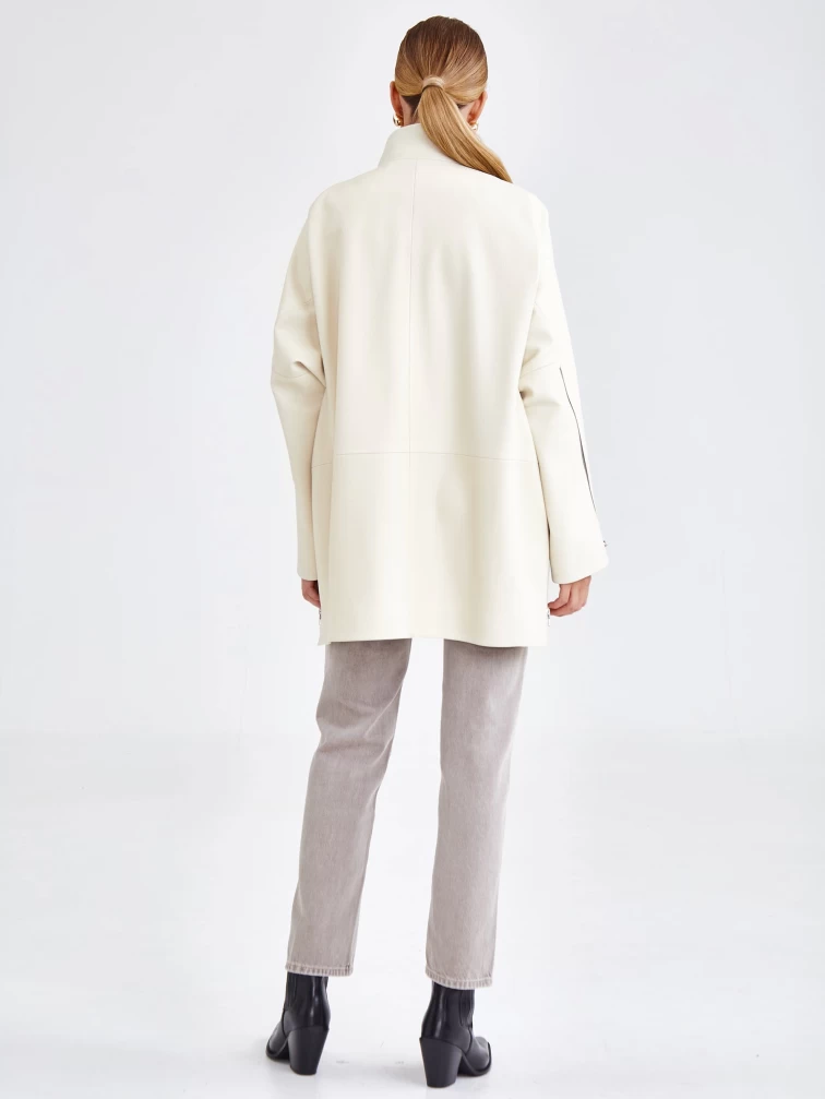 Товар кожаная женская куртка оверсайз премиум класса 3038, белая, размер 50, артикул 23151 выполнен из натуральной кожи с застежкой молния. Рассчитан на сезон: весна-лето. Длина изделия 80 см, силуэт свободный.
