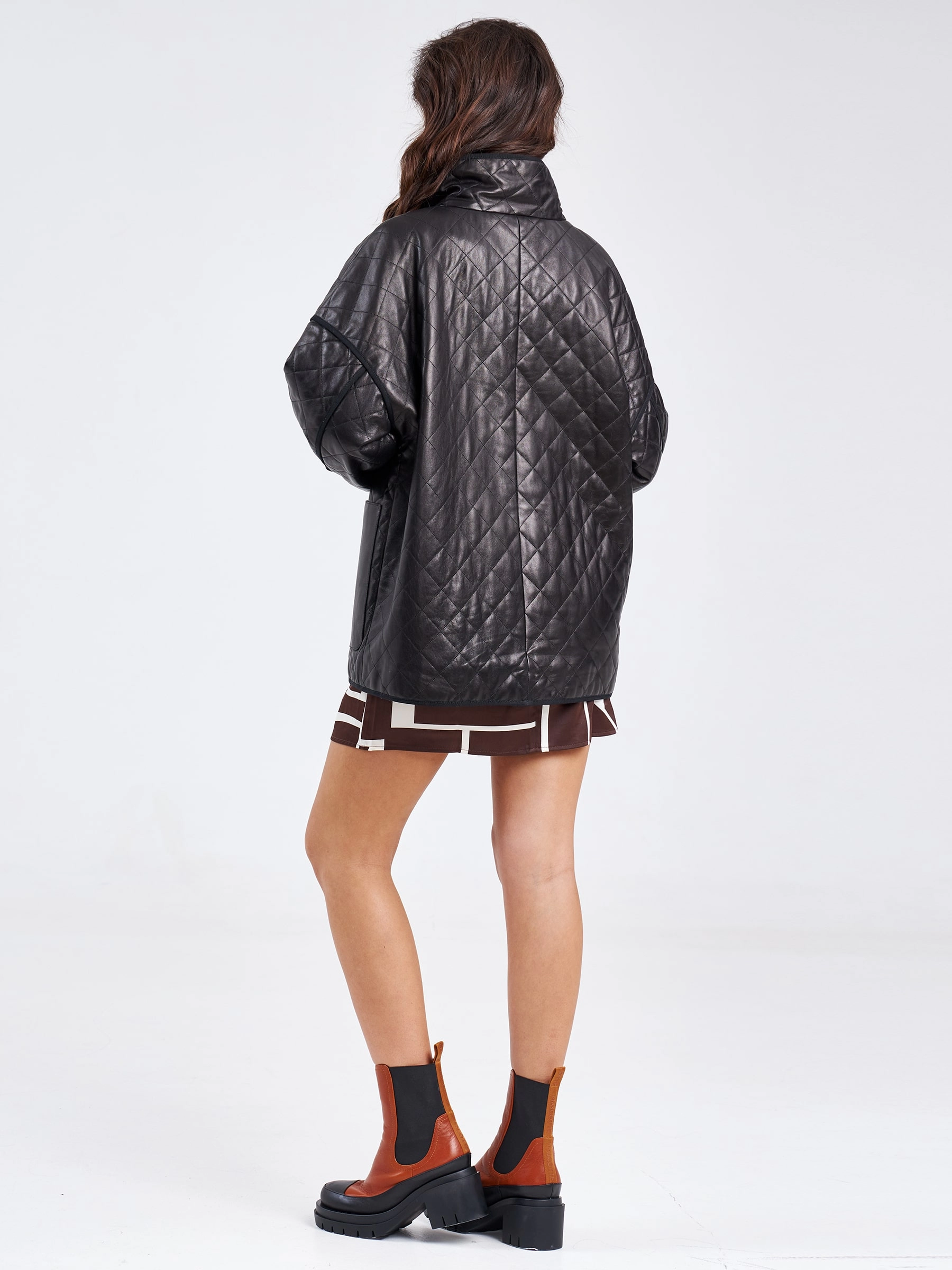 Заменить привычные элементы гардероба и разнообразить стиль к весне, поможет удлиненная стеганая куртка выполненная из натуральной кожи премиум класс. Прямой крой, длинный рукав, воротник стойку можно трансформировать в отложной .Модель дополнили двумя накладными карманами. Детали изделия кроя подчеркнули тонким контрастным кантом.