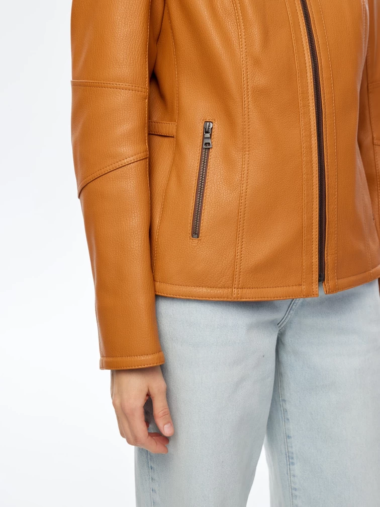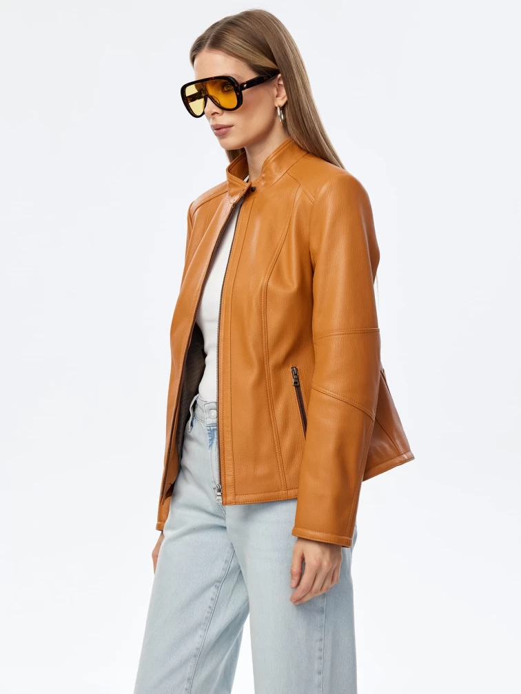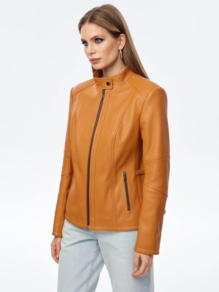 Кожаная женская куртка премиум класса 3044, песочная, размер 48, артикул 24280