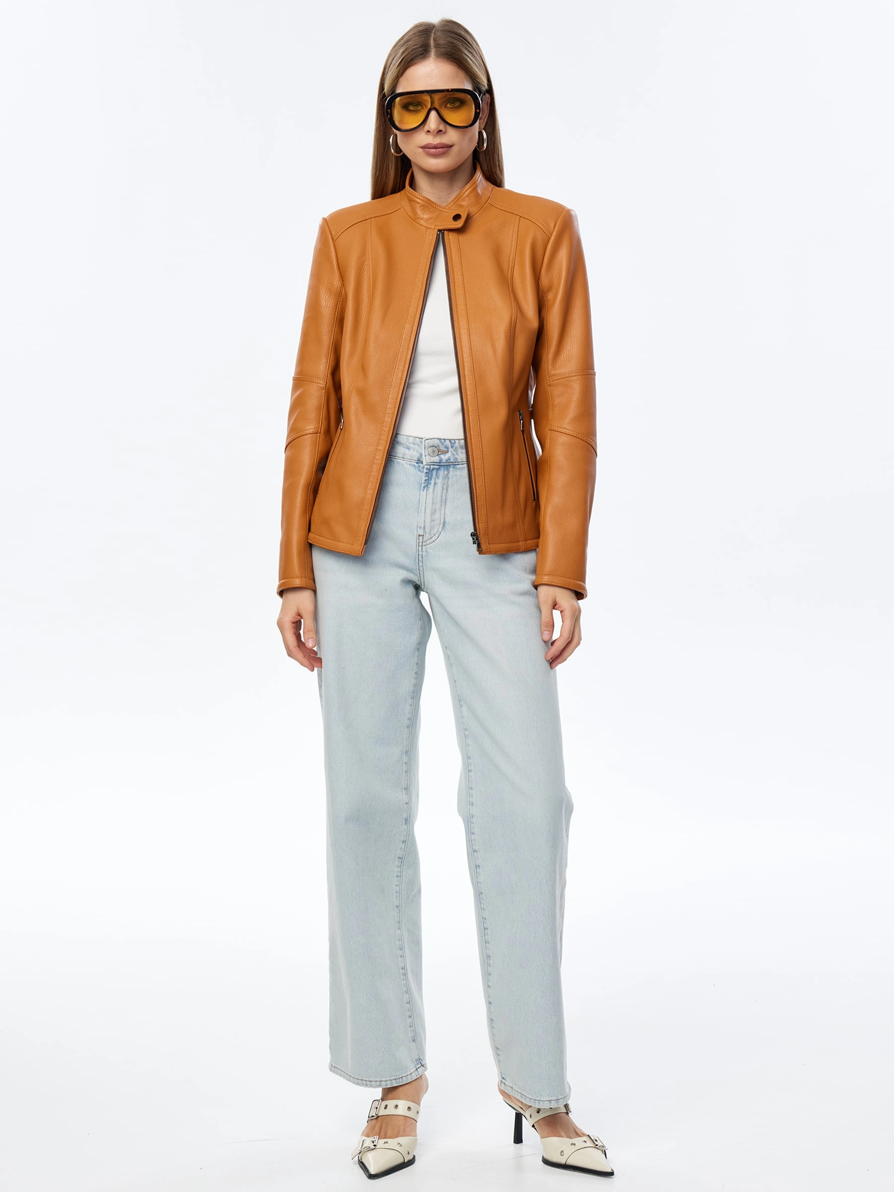 Товар кожаная женская куртка премиум класса 3044, песочная, размер 48, артикул 24280 выполнен из натуральной кожи с застежкой молния. Рассчитан на сезон: весна-осень. Длина изделия 51 см, силуэт приталенный .