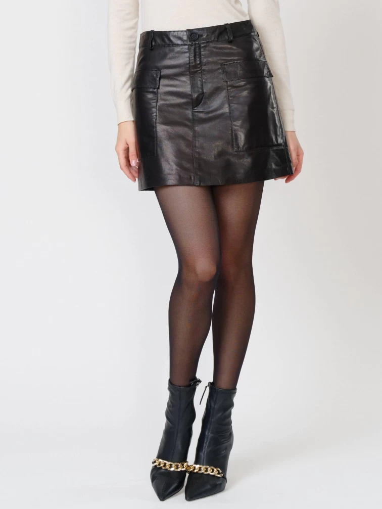 Товар черная кожаная мини юбка 03, размер 42, артикул 85340 выполнен из натуральной кожи с застежкой молния. Рассчитан на сезон: демисезон. Длина изделия 41 см, силуэт расклешенный.