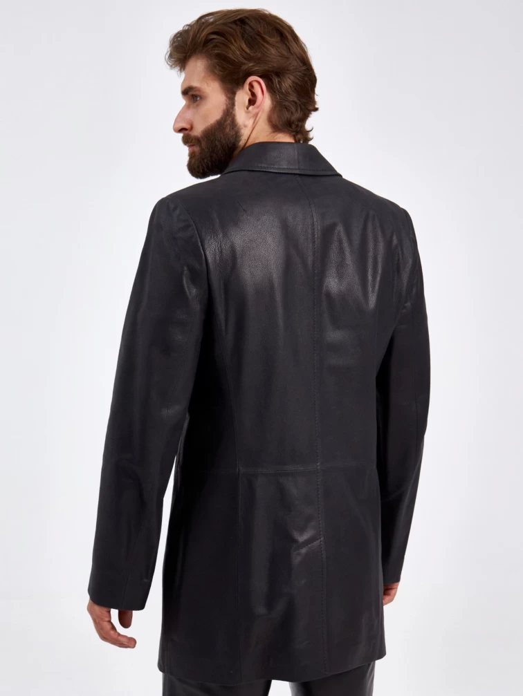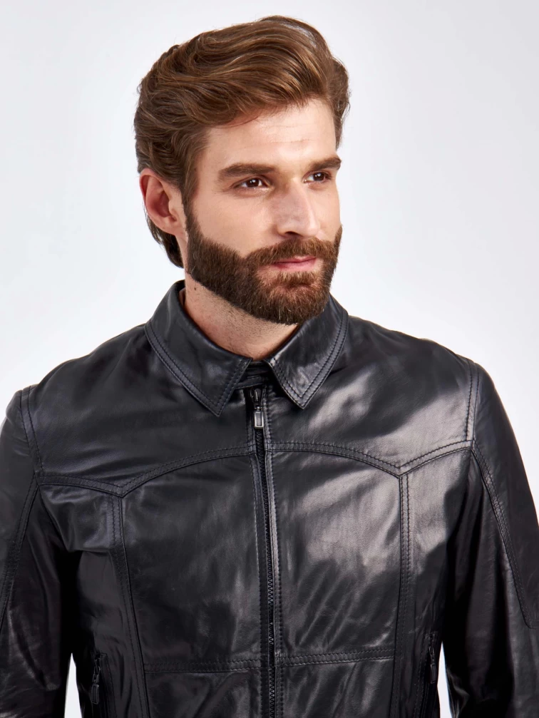 Короткая кожаная куртка мужская 2010-13(в), черная, размер 50, артикул 29170