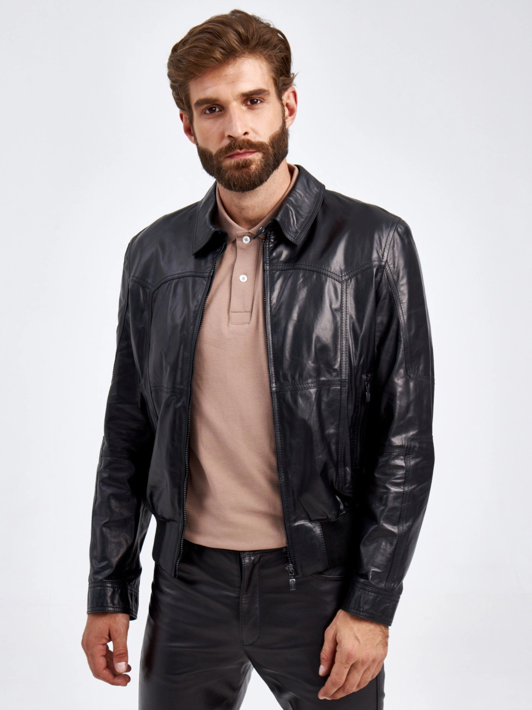 Товар короткая кожаная куртка мужская 2010-13(в), черная, размер 50, артикул 29170 выполнен из натуральной кожи с застежкой молния. Рассчитан на сезон: демисезон. Длина изделия 51-74 см, силуэт полуприлегающий.