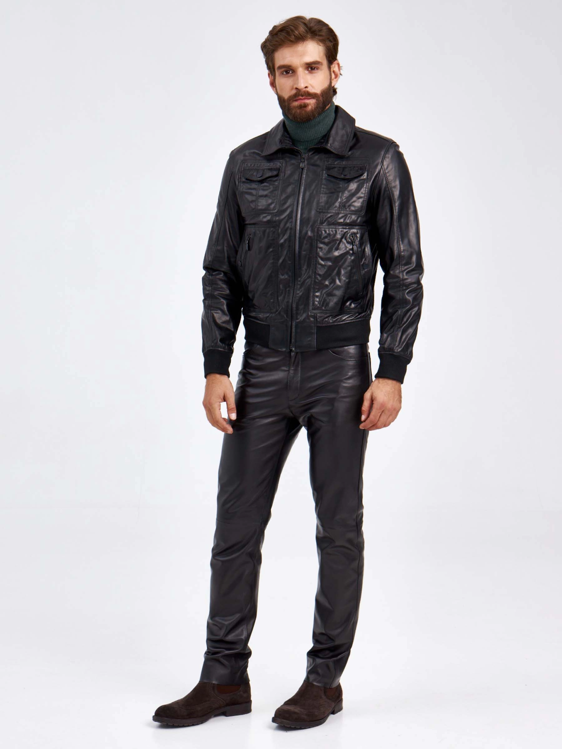 Кожаная куртка бомбер мужская 2010-16, черная, размер 50, артикул 29350