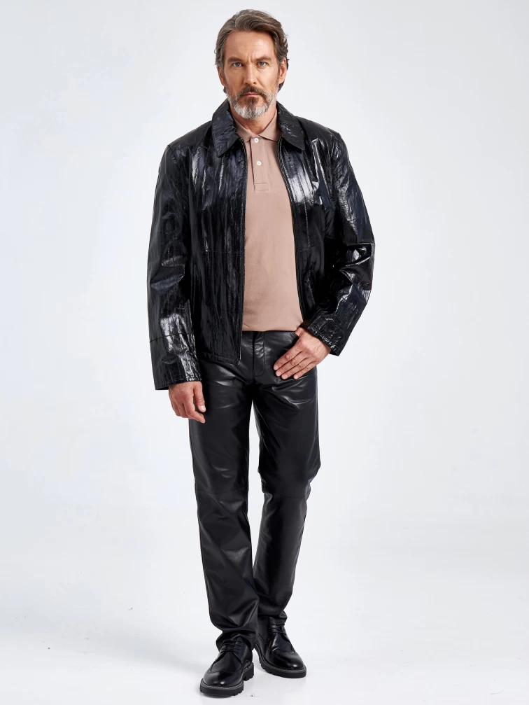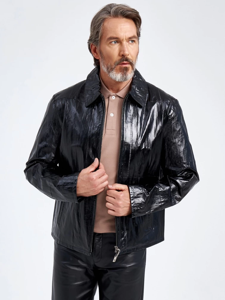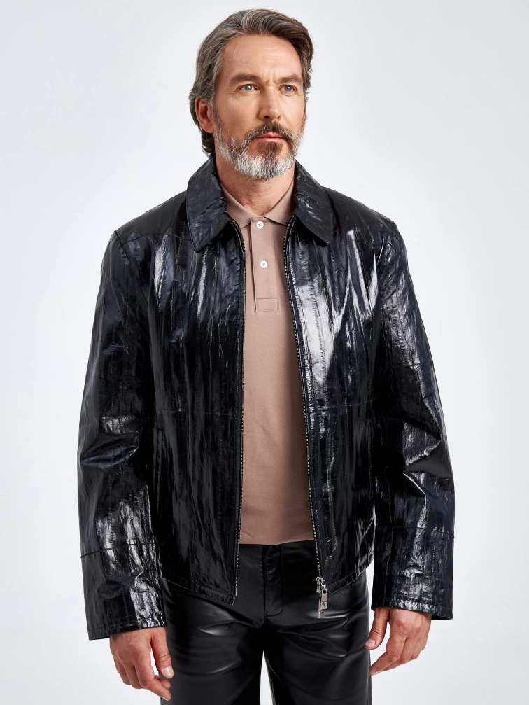 Мужская кожаная куртка из кожи морского угря 4433, черная, размер 48, артикул 40700
