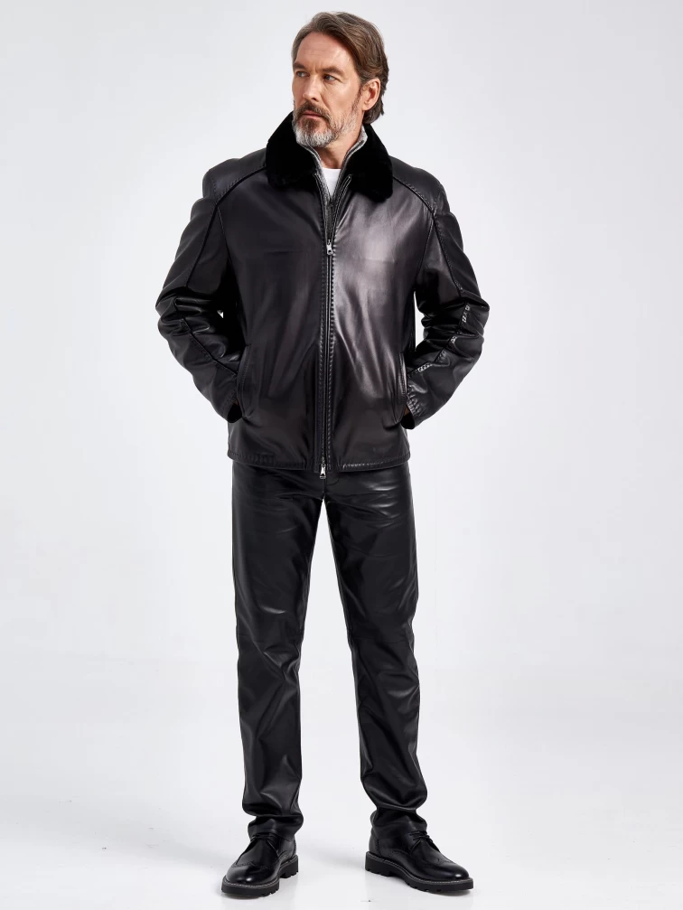 Куртка универсального черного цвета- это отличная основа для базового гардероба. Мастера использовали мягкую кожу и плотную овчину с густым ворсом, которая особенно хорошо сохраняет тепло. Небольшой штрих к модели добавит лишь ручной стежок. Благодаря классическому крою, модель идеально подружится как со строгими брюками, так и с любыми джинсами.