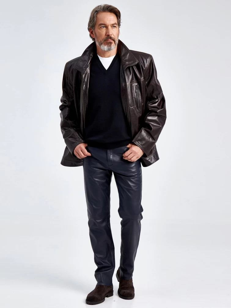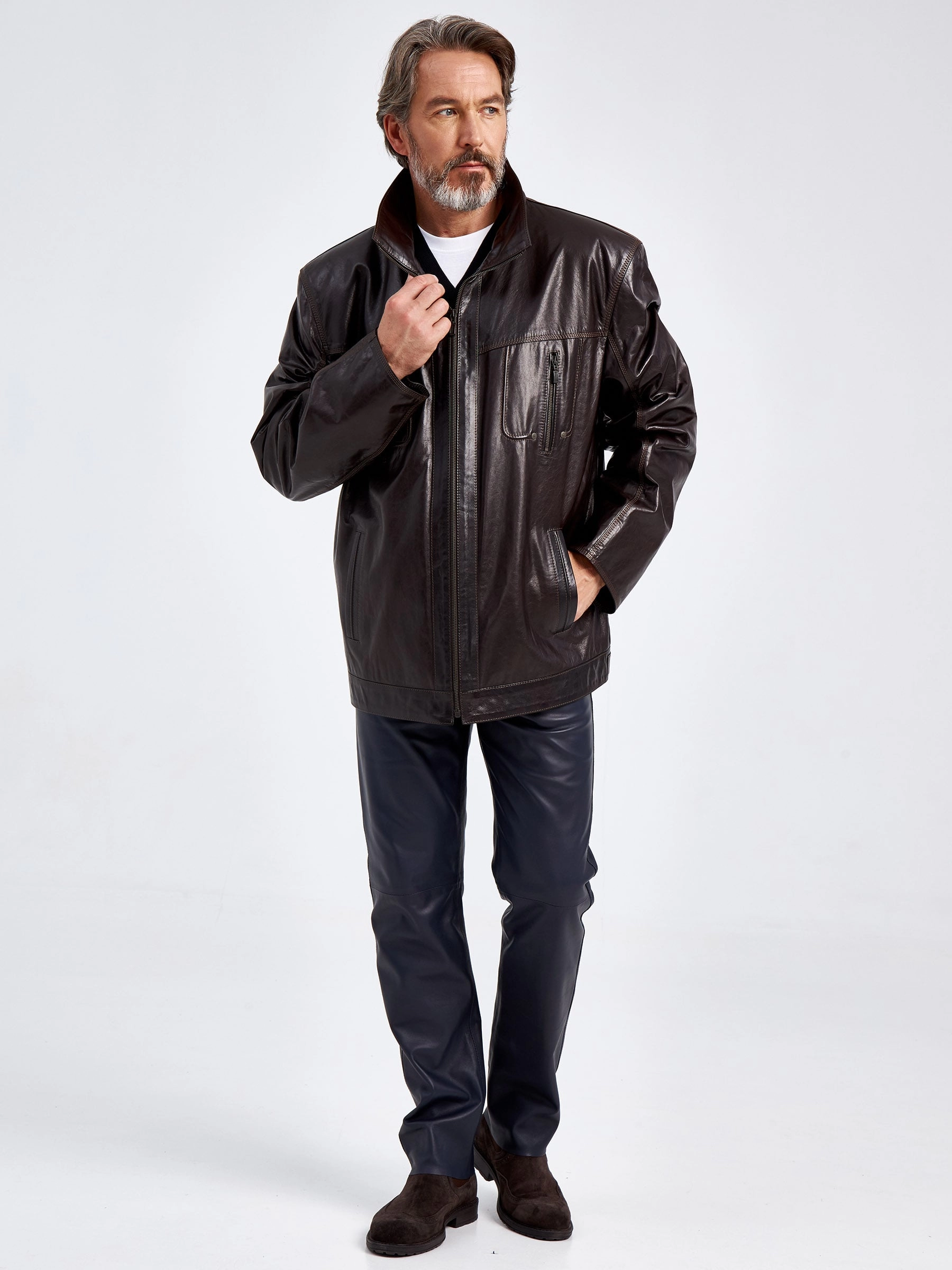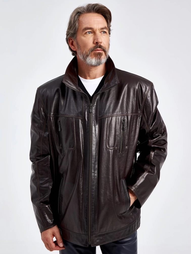 Кожаная куртка мужская 508, коричневая, размер 58, артикул 29570